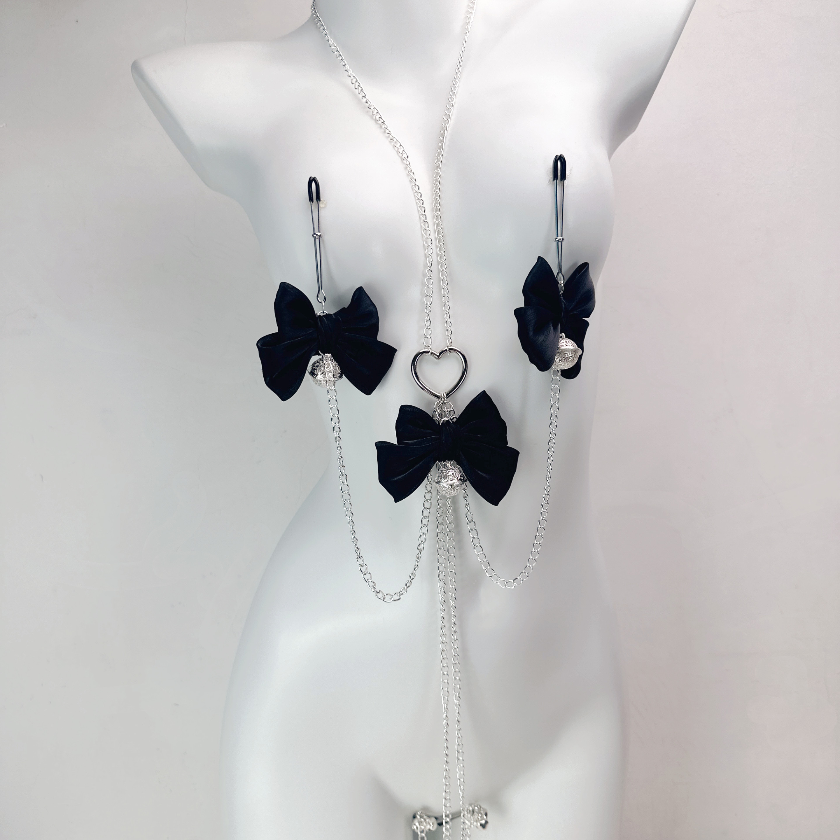 Long Chain Streamer Black Bow Milk Clip Mimi Clip Clip Clitoris Clip Backyard Bell Anal Plug sm Sex Fun Siamese Breast Clip