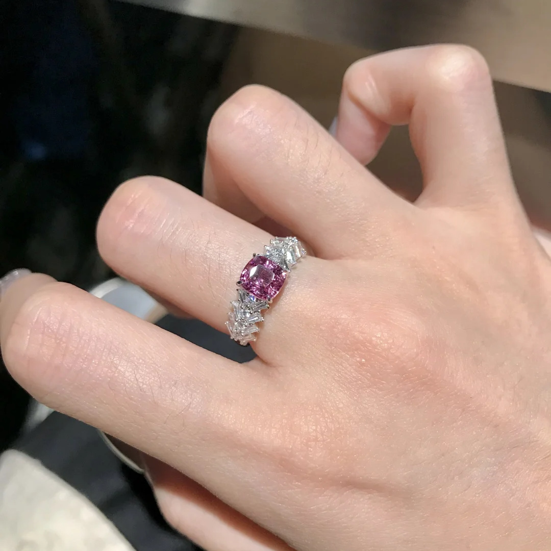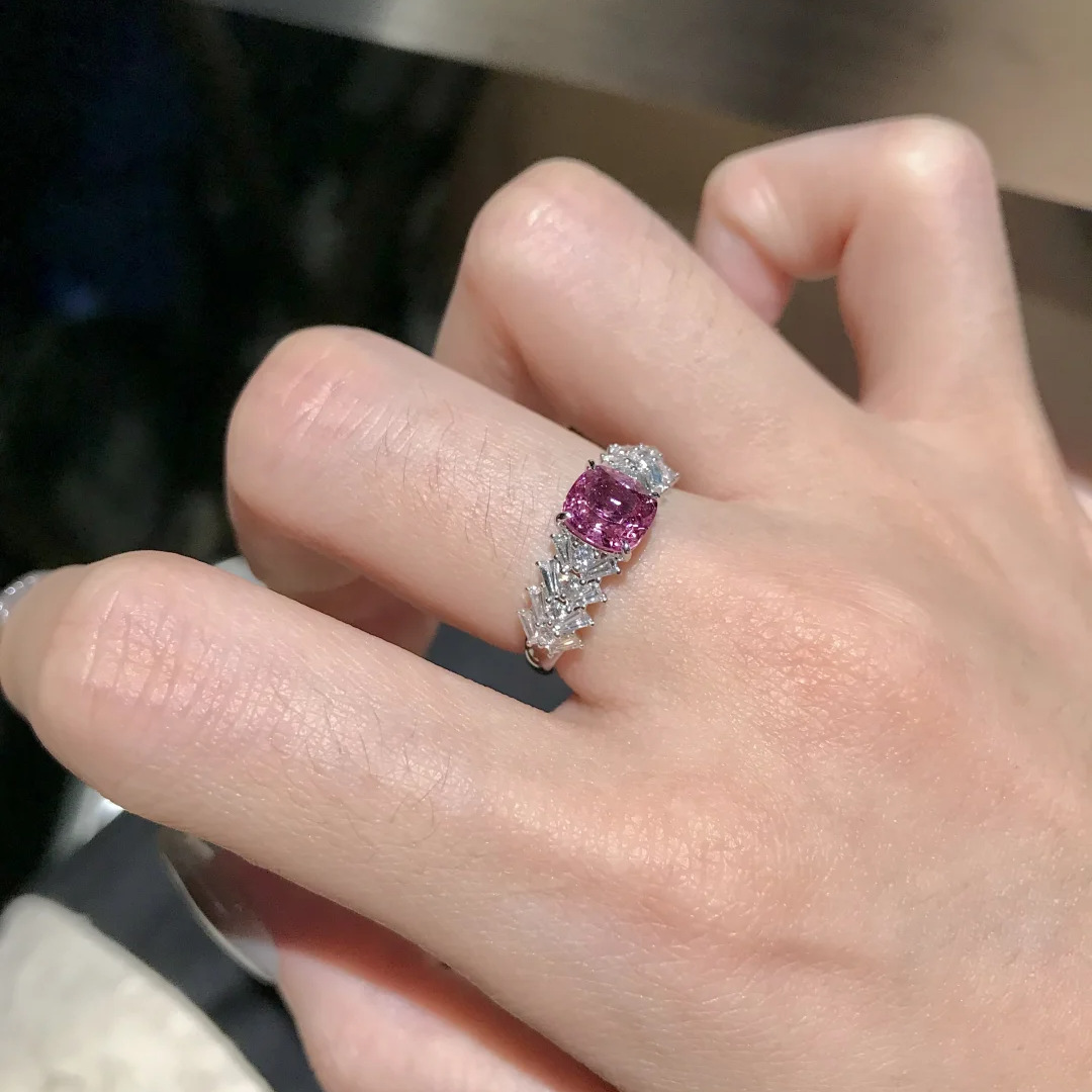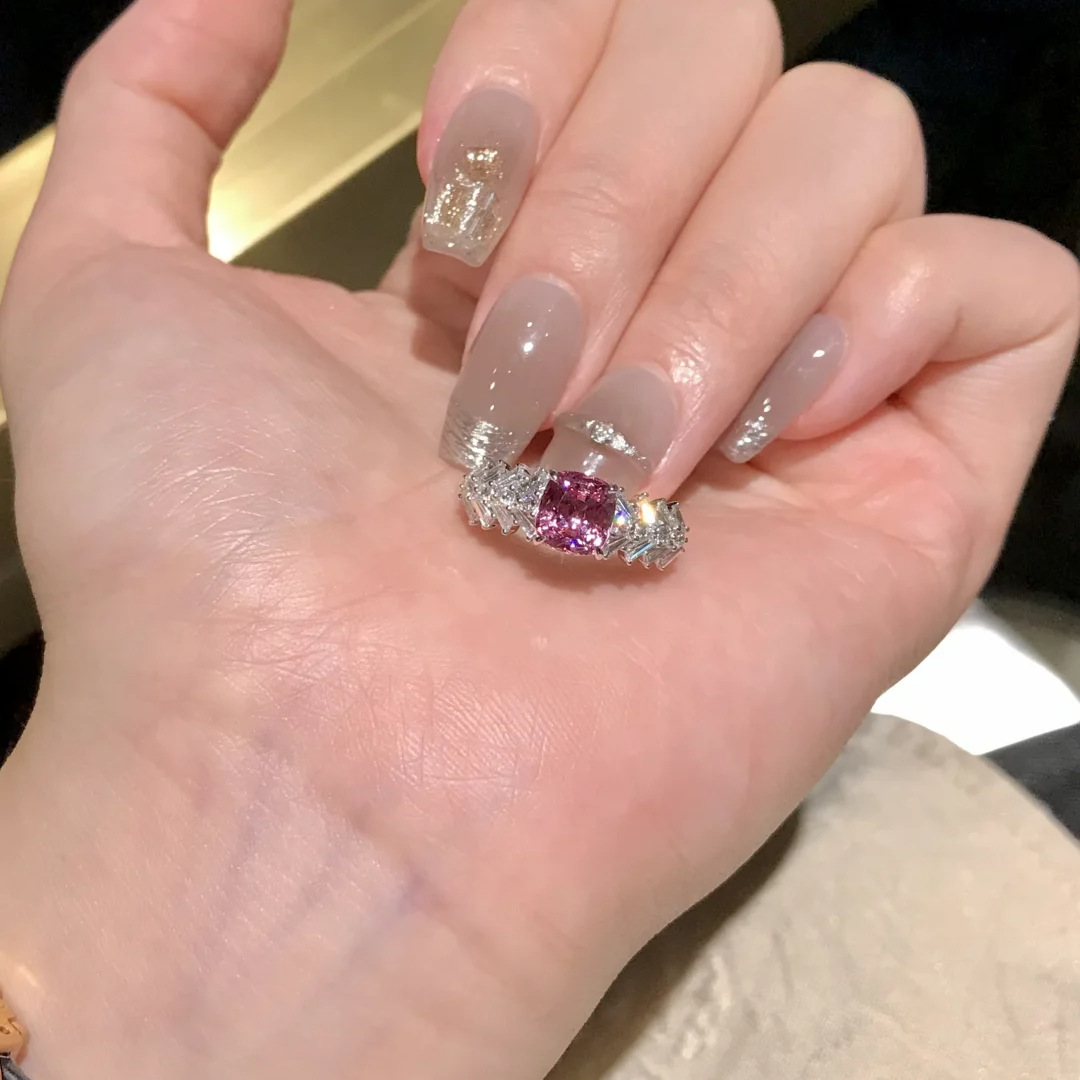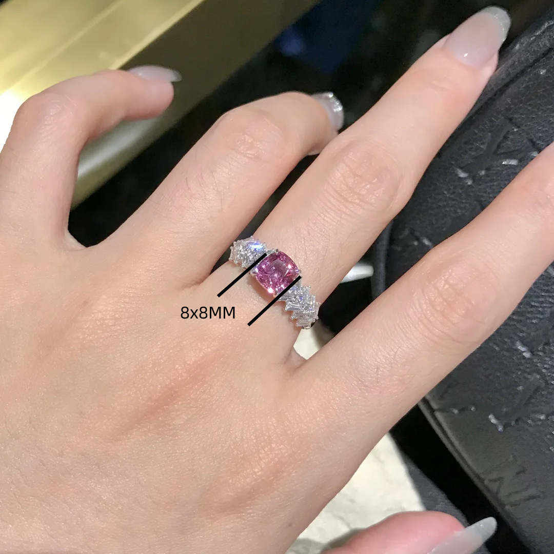 Premium T square diamond inlaid pink princess square ring exquisite light luxury simple versatile high carbon diamond women's ring diamond ring