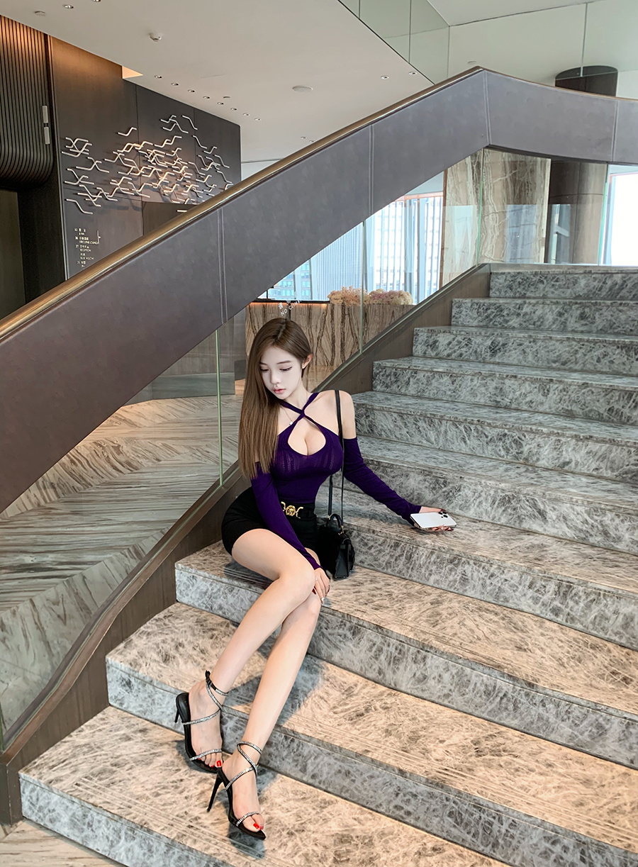 Invalid Pills [Drunk Rose] Cross Strap Sexy Hollow Breast Big Knitted Top Sweater Bottom Female
