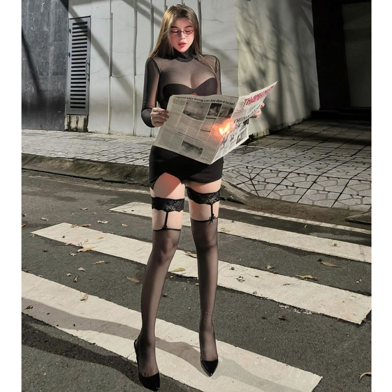 Spice girl perspective turtleneck mesh long-sleeved base T-shirt women's pure desire temperament slim-fitting temptation to wear fried street tops women