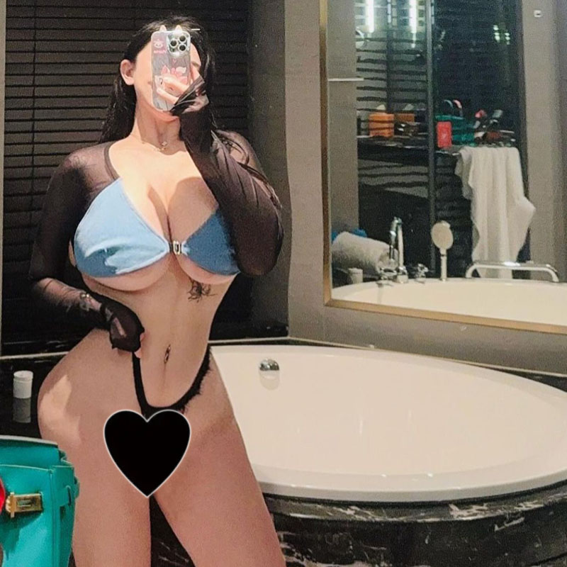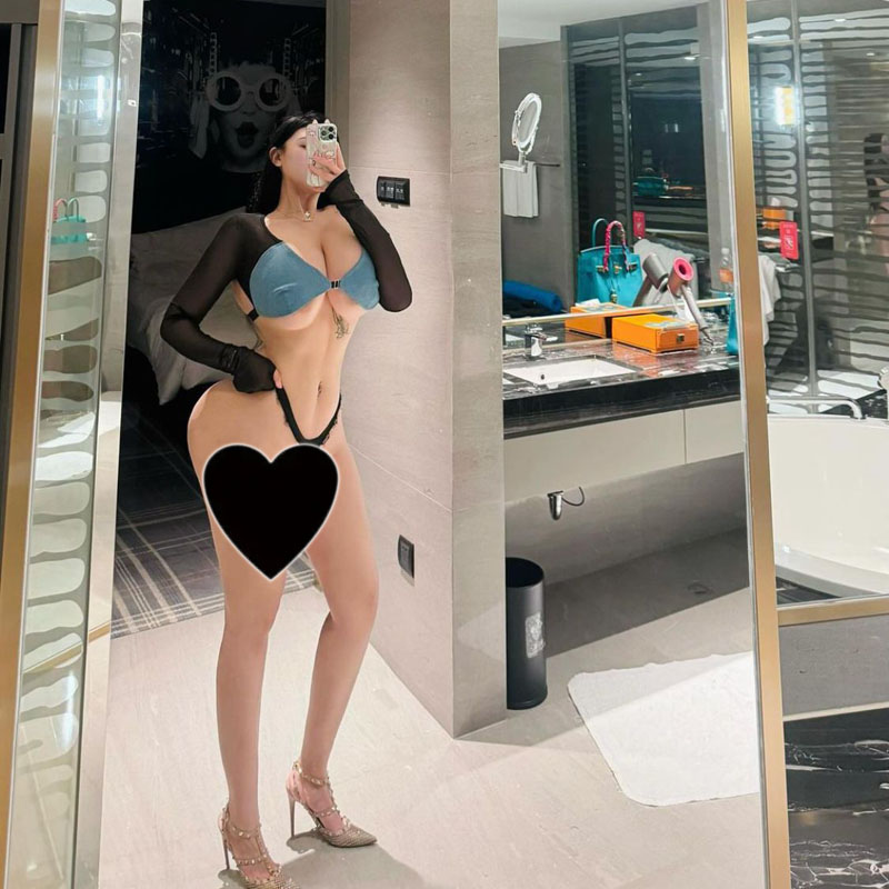 Spring and Autumn Mesh Denim Perspective Low-cut Short Belly Navel Bottom Versatile Royal Sister Street Low-cut Long-sleeved T-Shirt Women