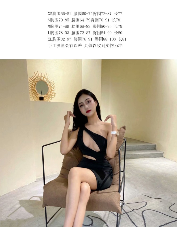 Internet celebrity black sexy low cut hollow irregular shoulder sleeveless slim fit foreign style hip dress short skirt female summer