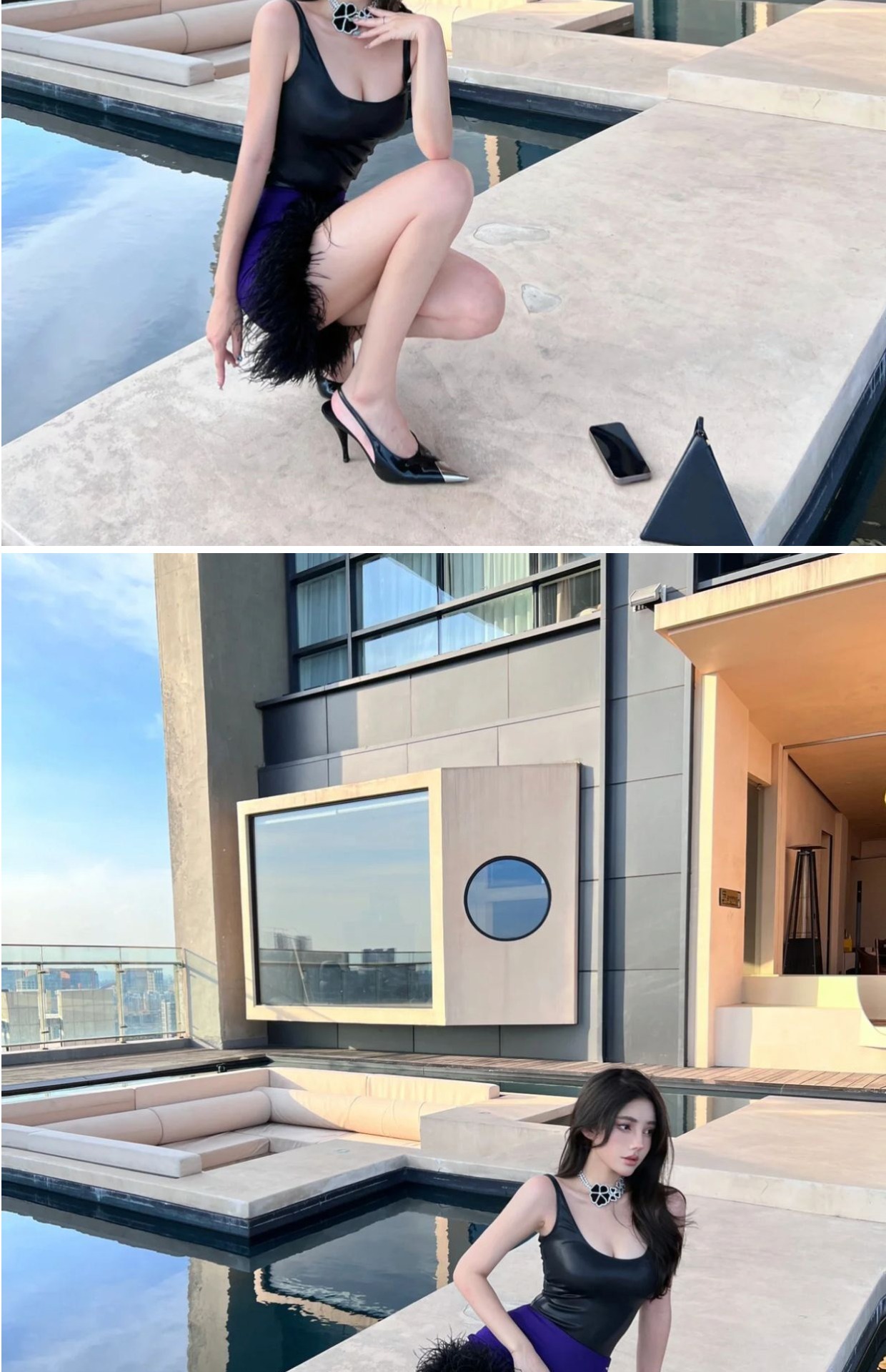 Spice girl niche design high sense ostrich hair skirt PU leather splicing suit women pure desire tea break sexy skirt