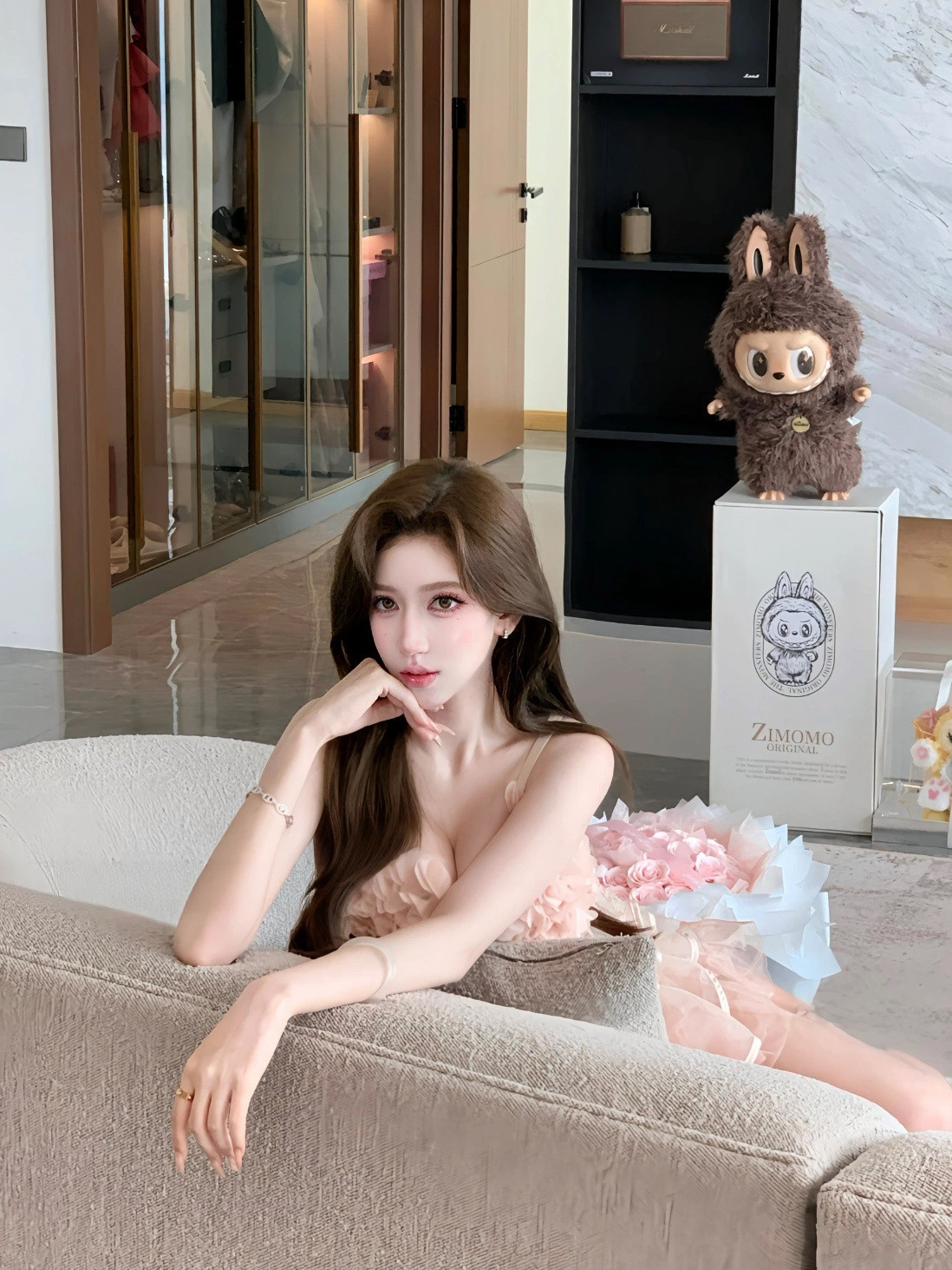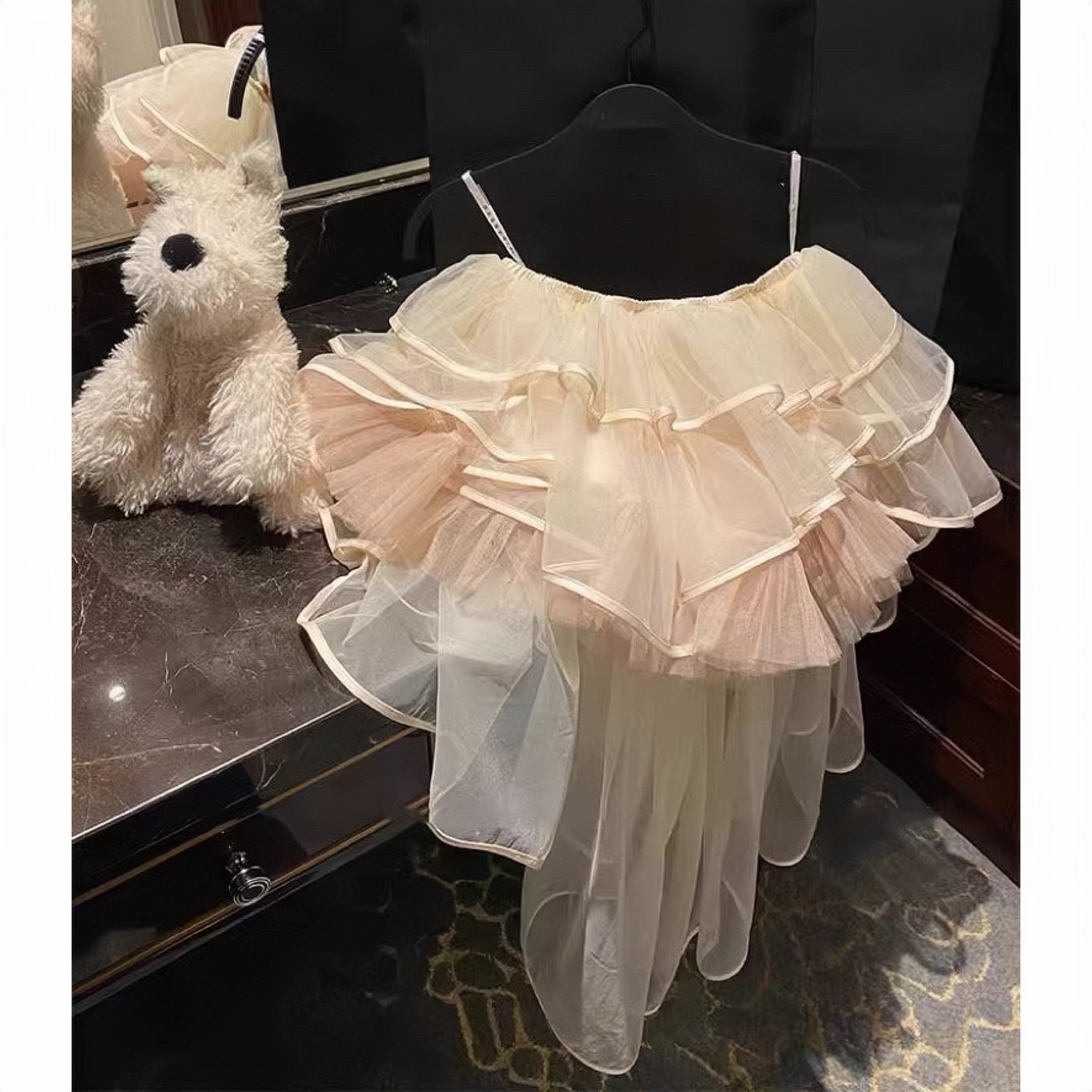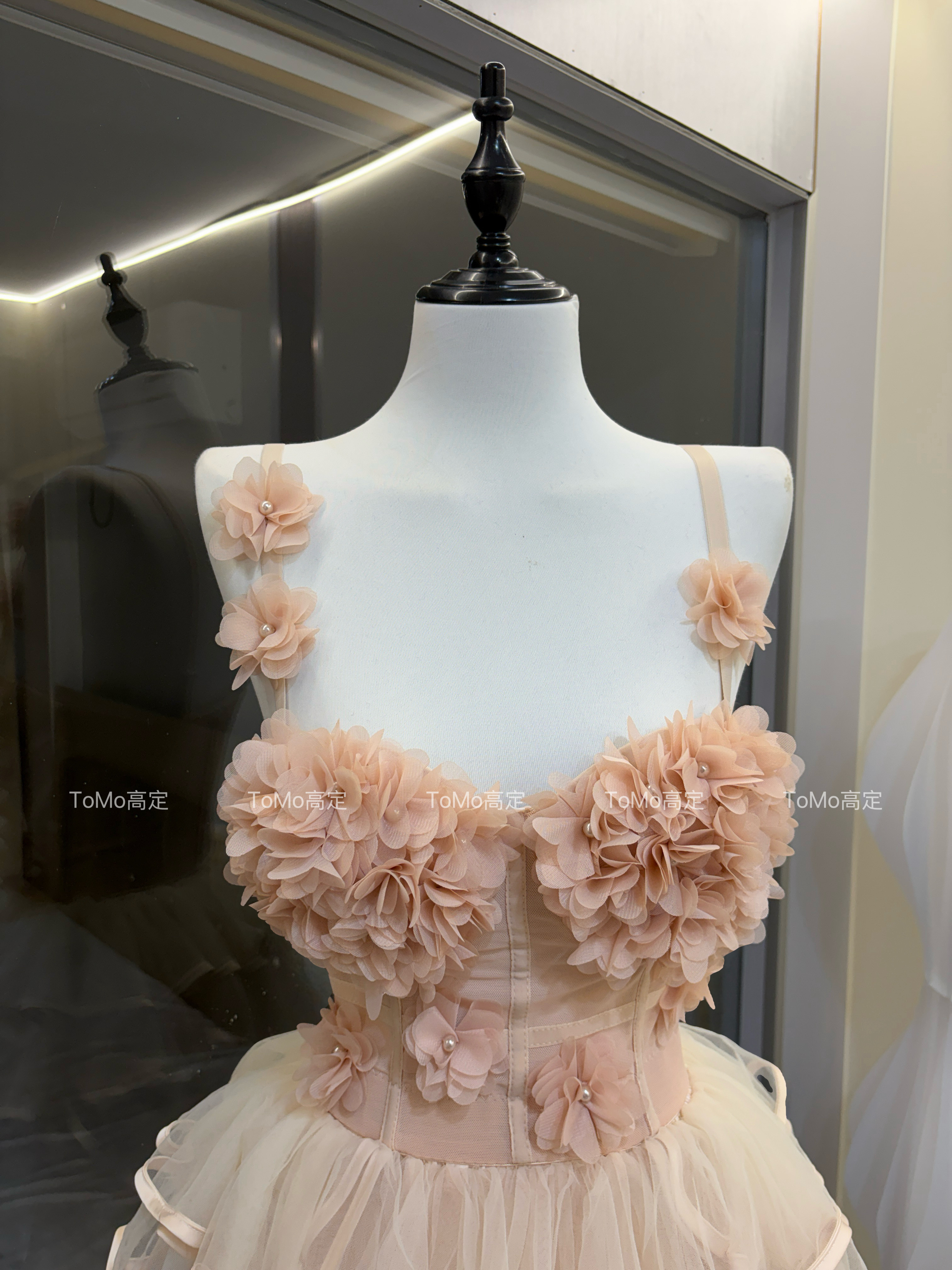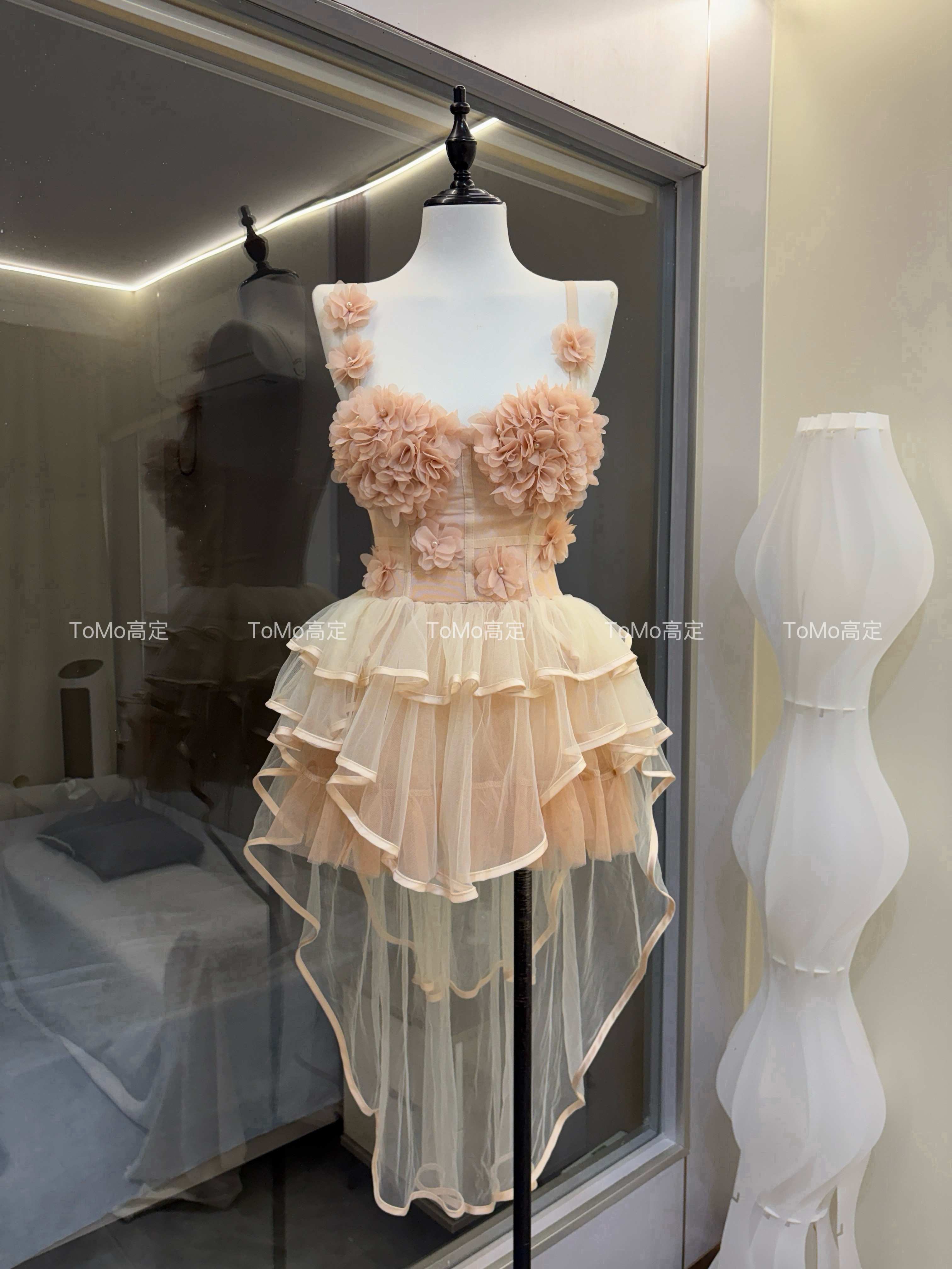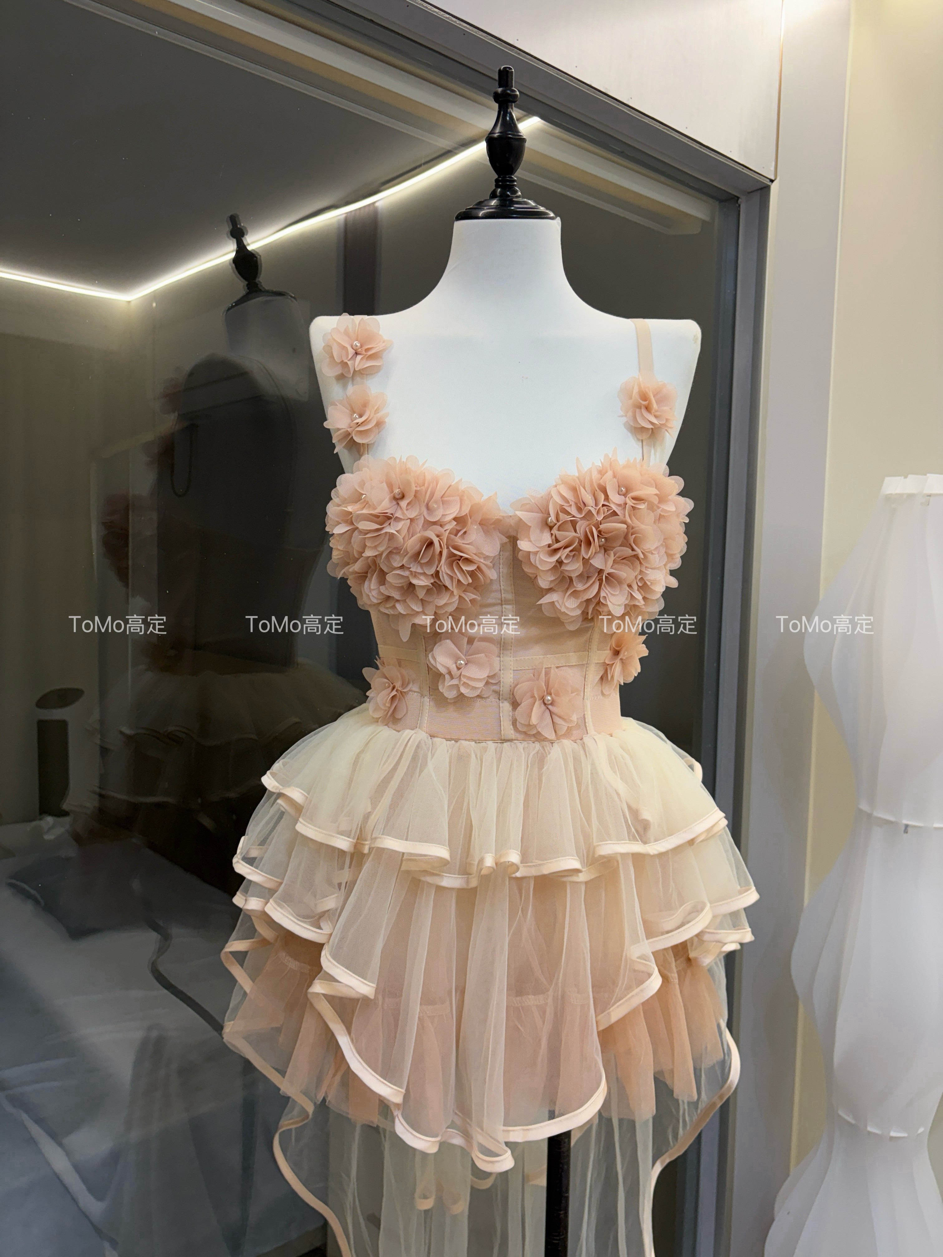 Sweet three-dimensional flower tube top suspender top irregular trailing tutu skirt mesh cake skirt birthday dress