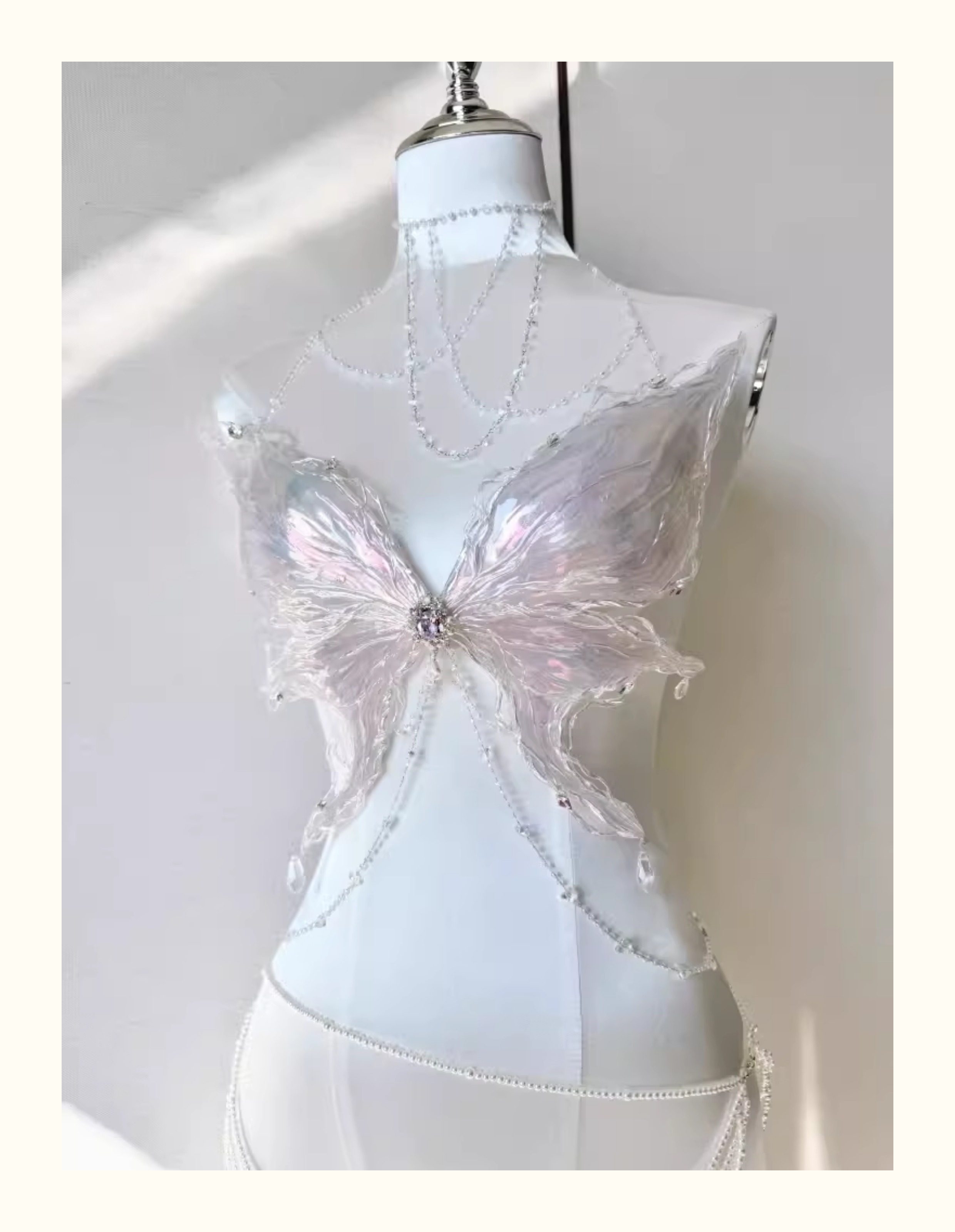 Original design crystal butterfly bustier - light purple ethereal dream handmade butterfly corset top