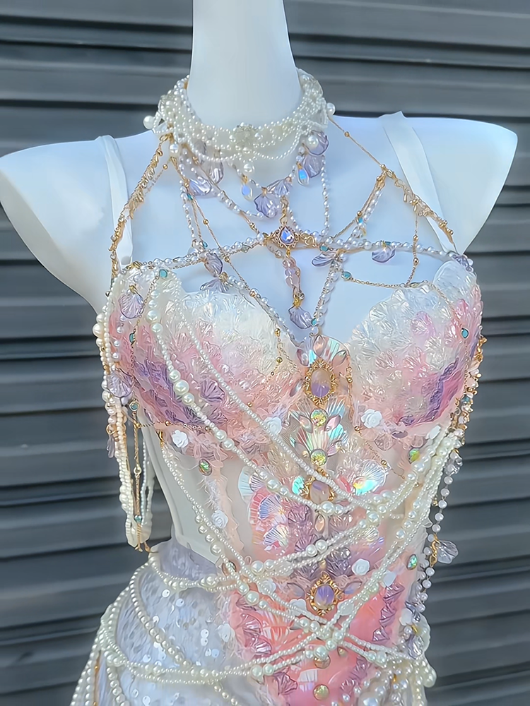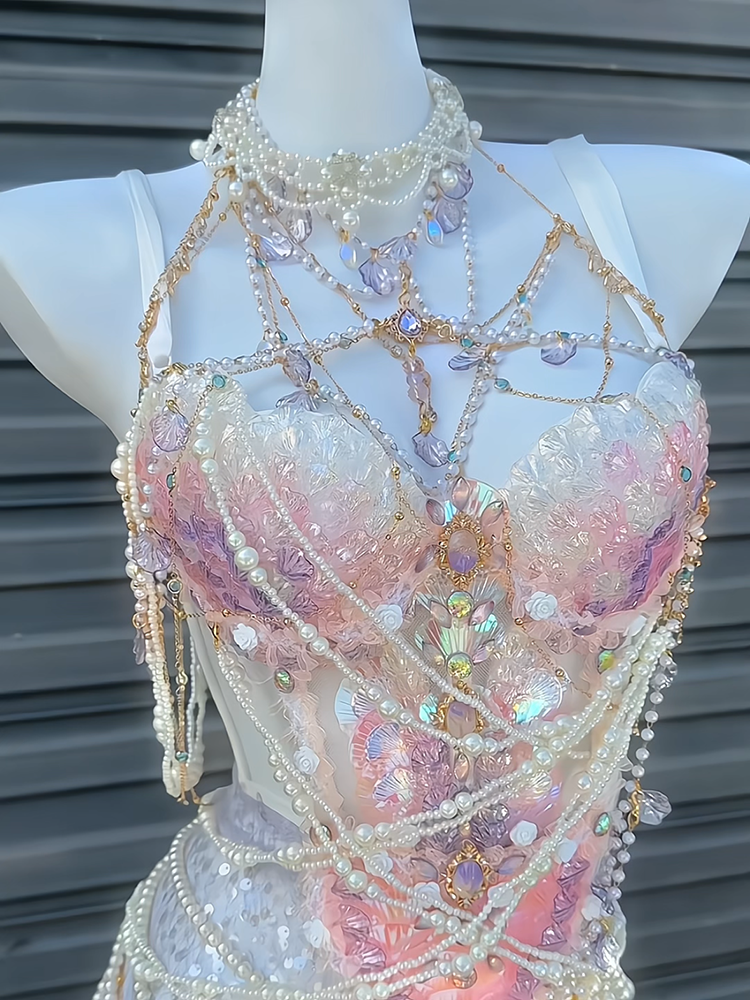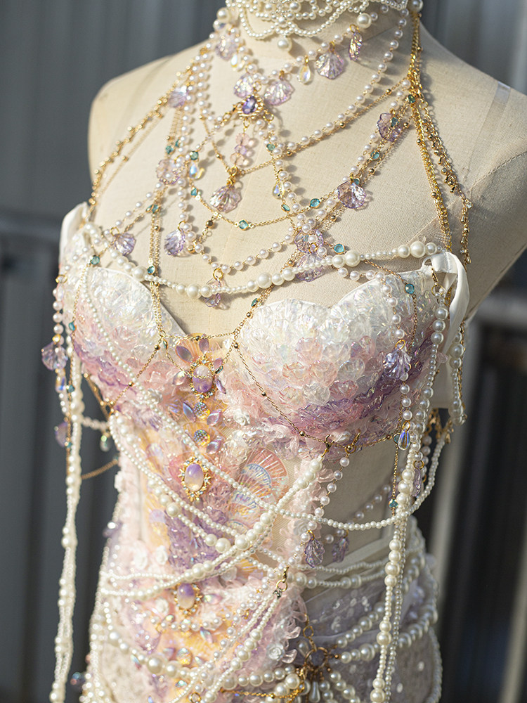 Pink and purple handmade mermaid princess scale bra water performance photography photo halloween cos costume