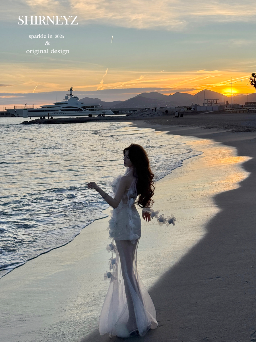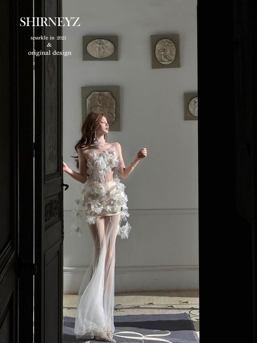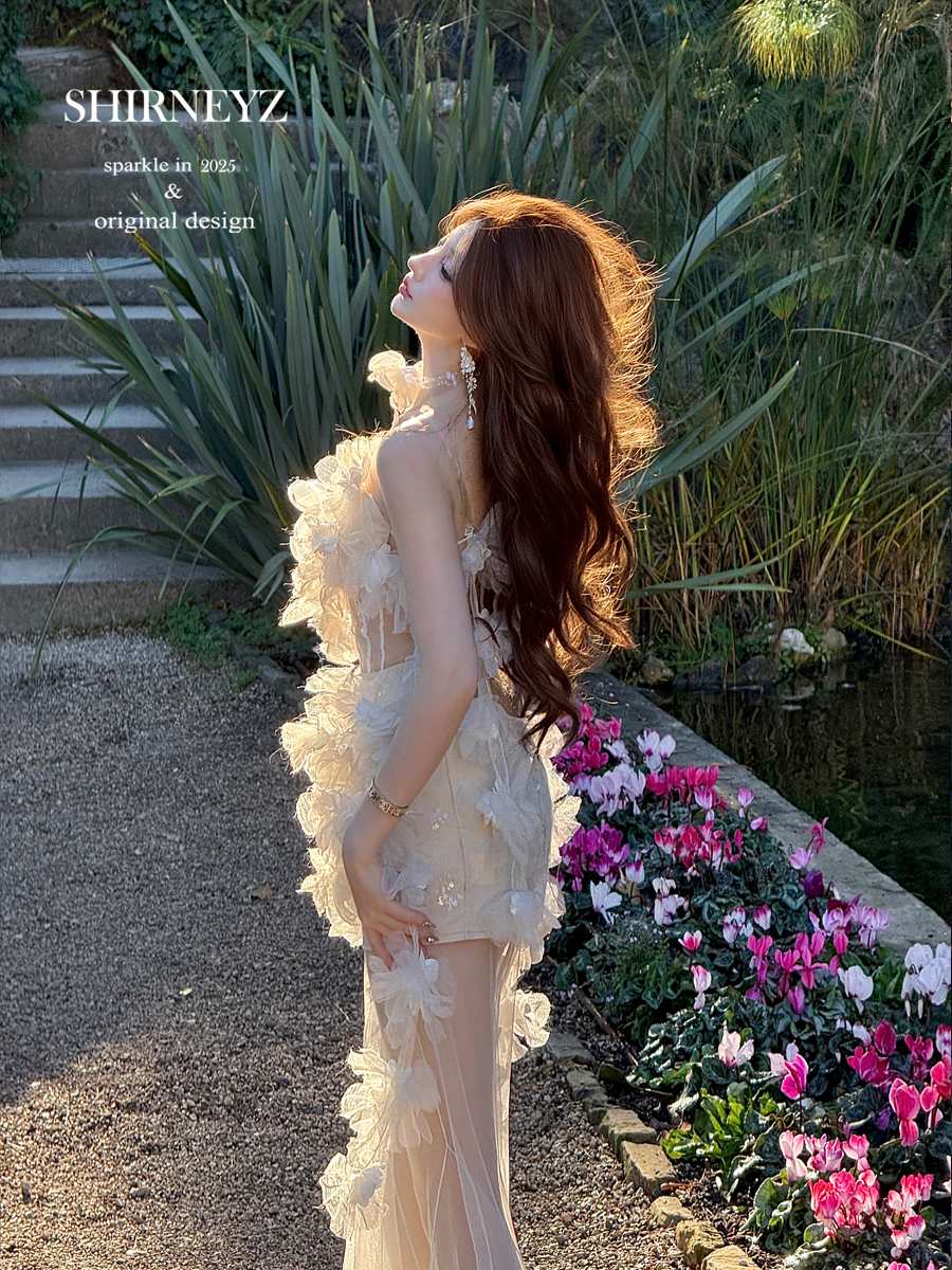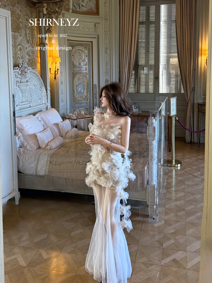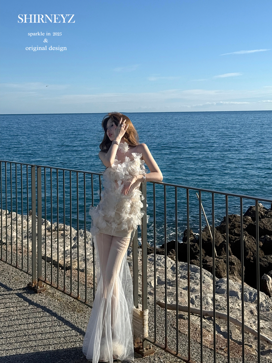 White slim and thin tube top dress split flower fairy long dress