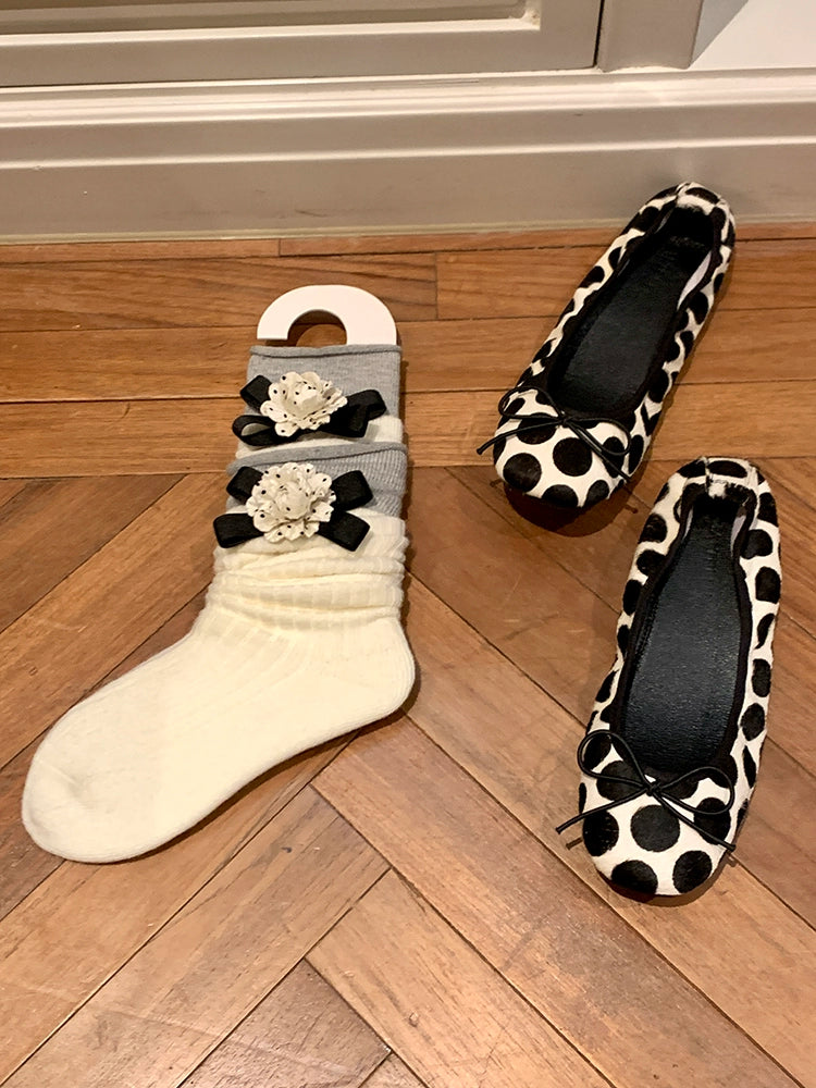 Fashion niche, design European small fragrant style bow non-removable camellia calf socks medium tube socks