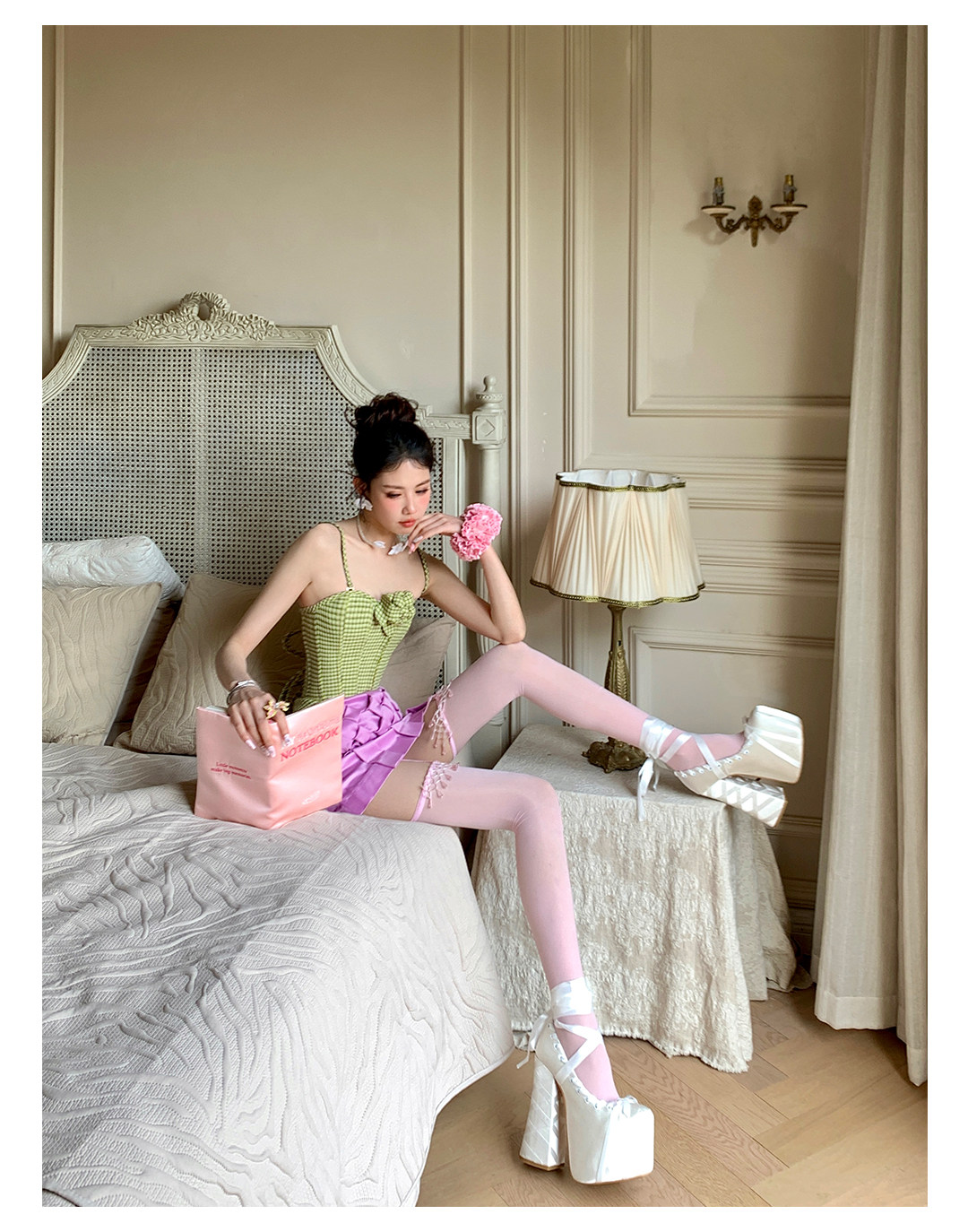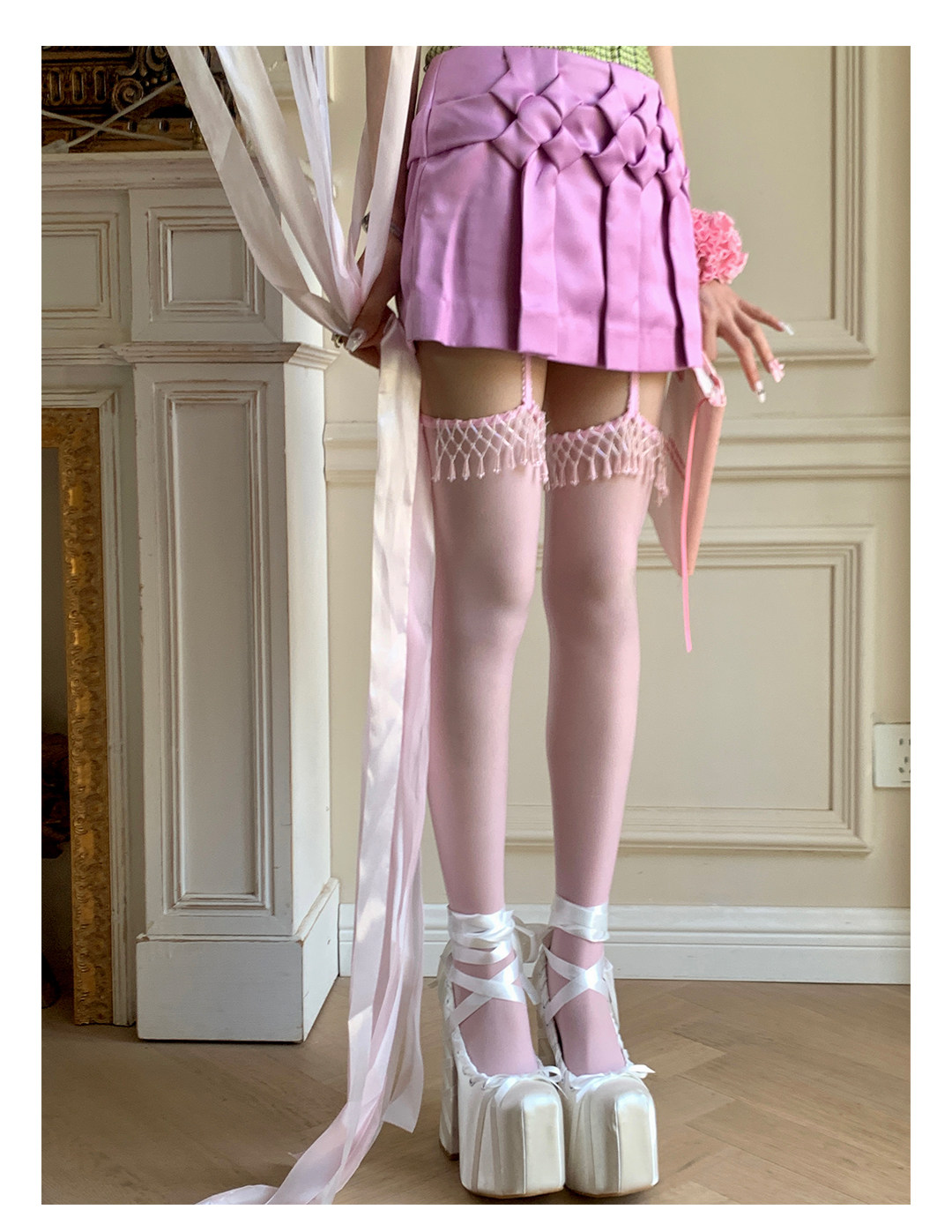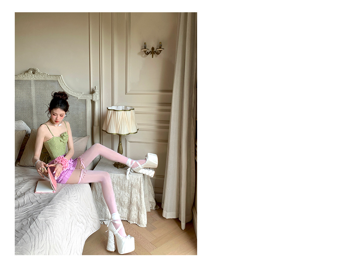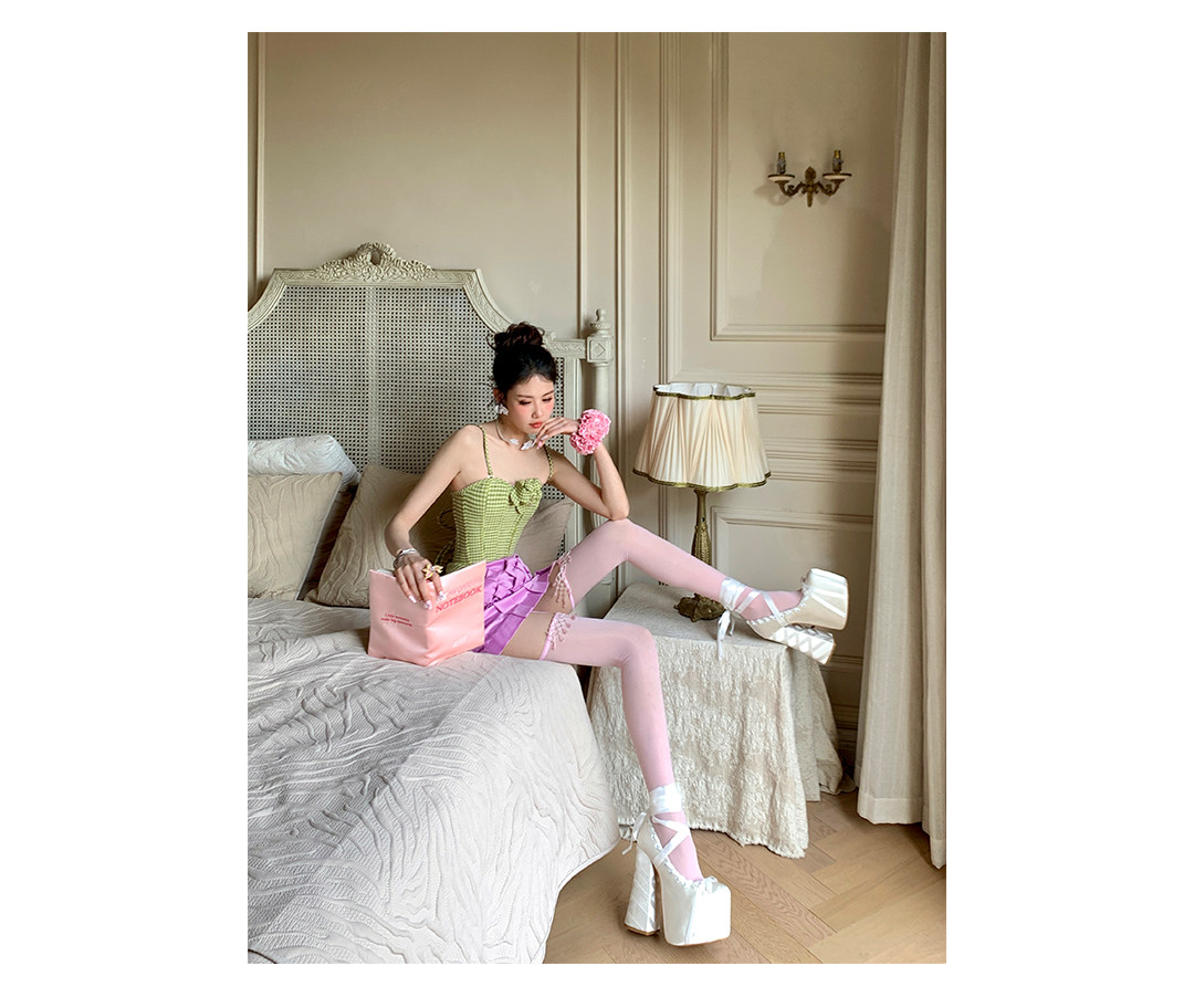 Fashion niche design Japanese fringed lace suspenders ultra-thin leg essence sexy pure desire to show thin knee socks
