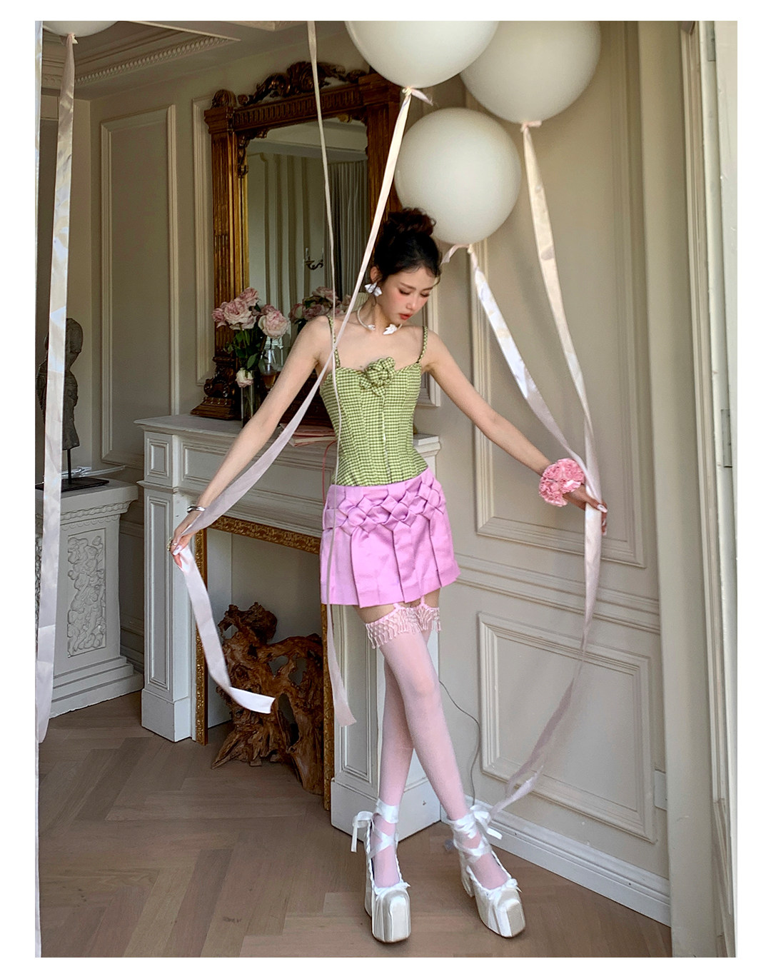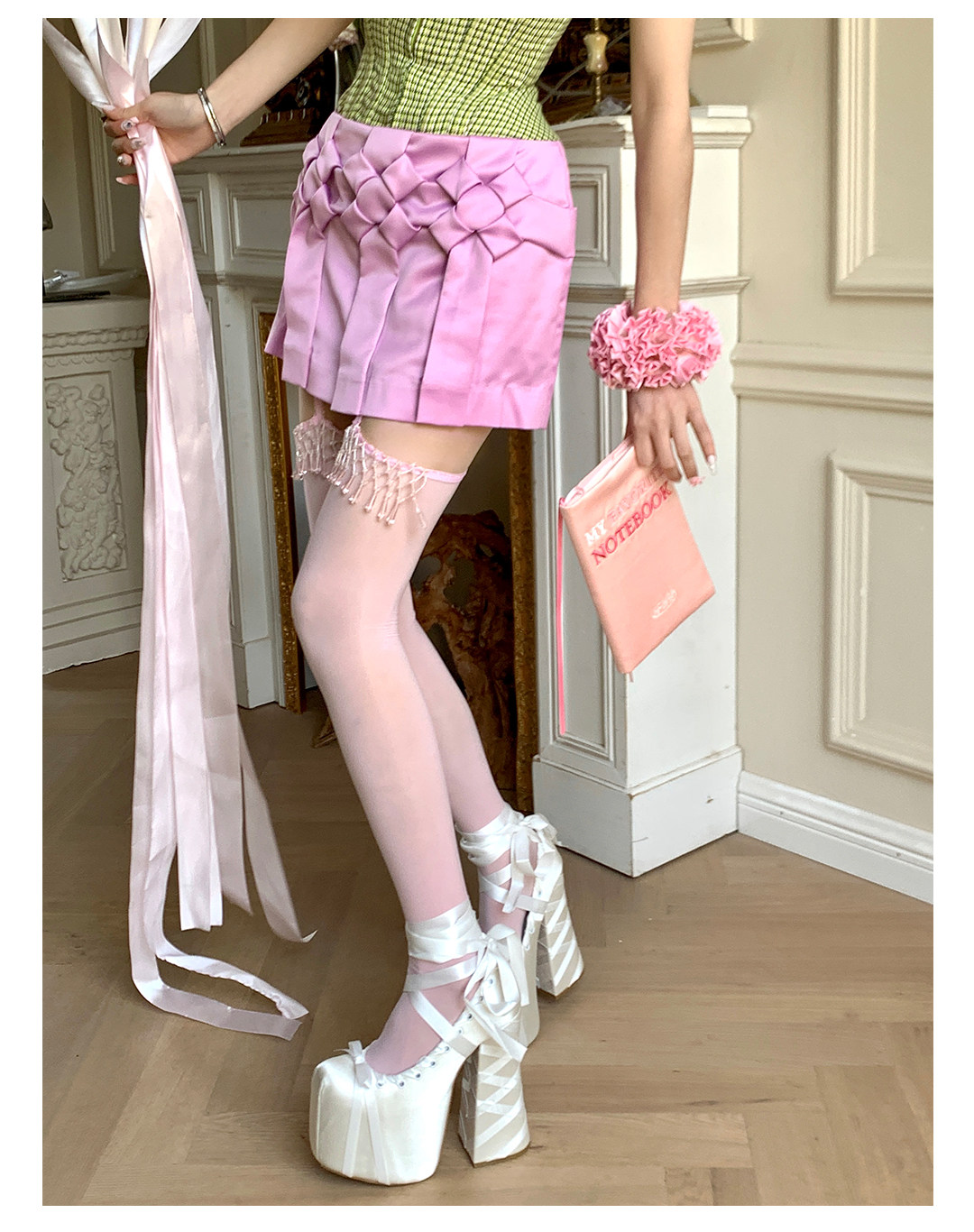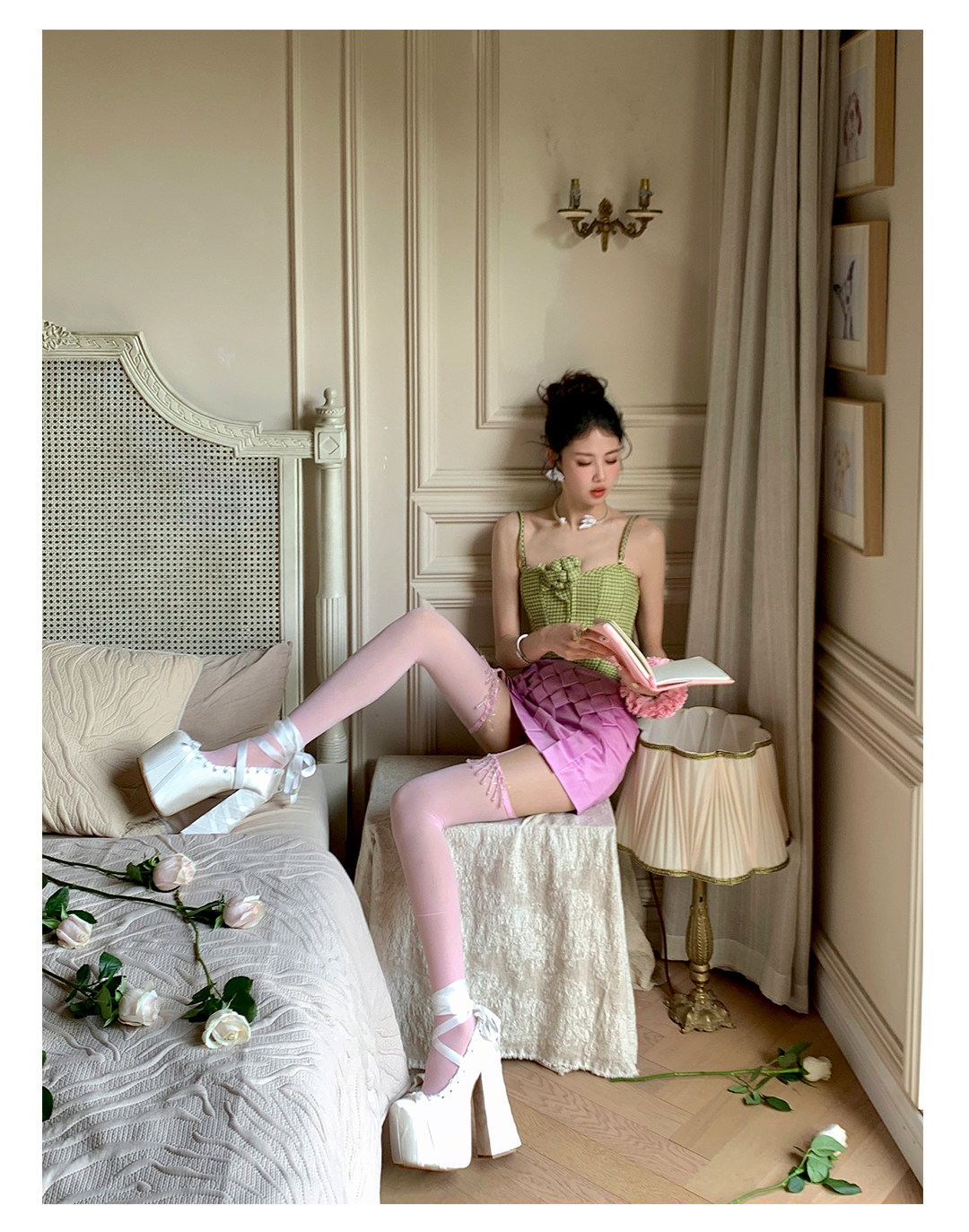Fashion niche design Japanese fringed lace suspenders ultra-thin leg essence sexy pure desire to show thin knee socks