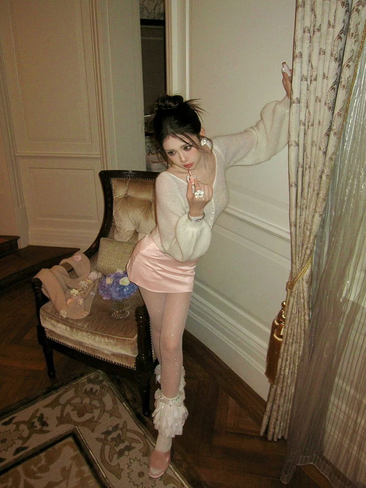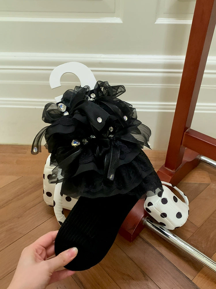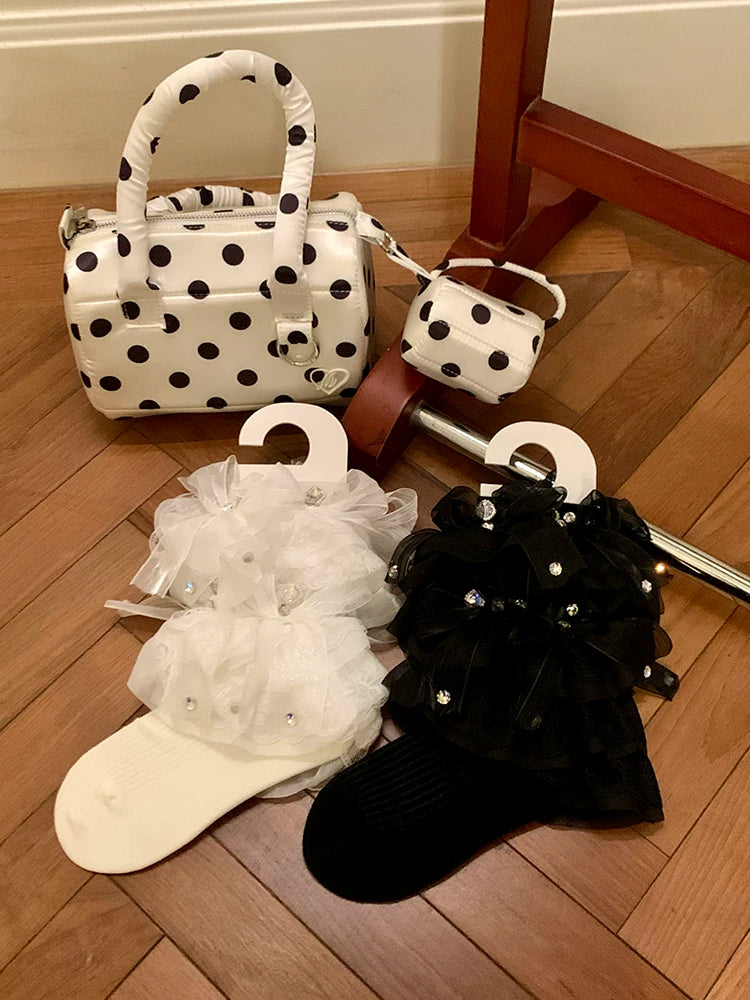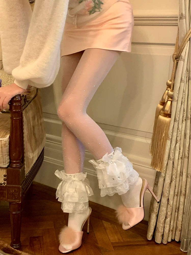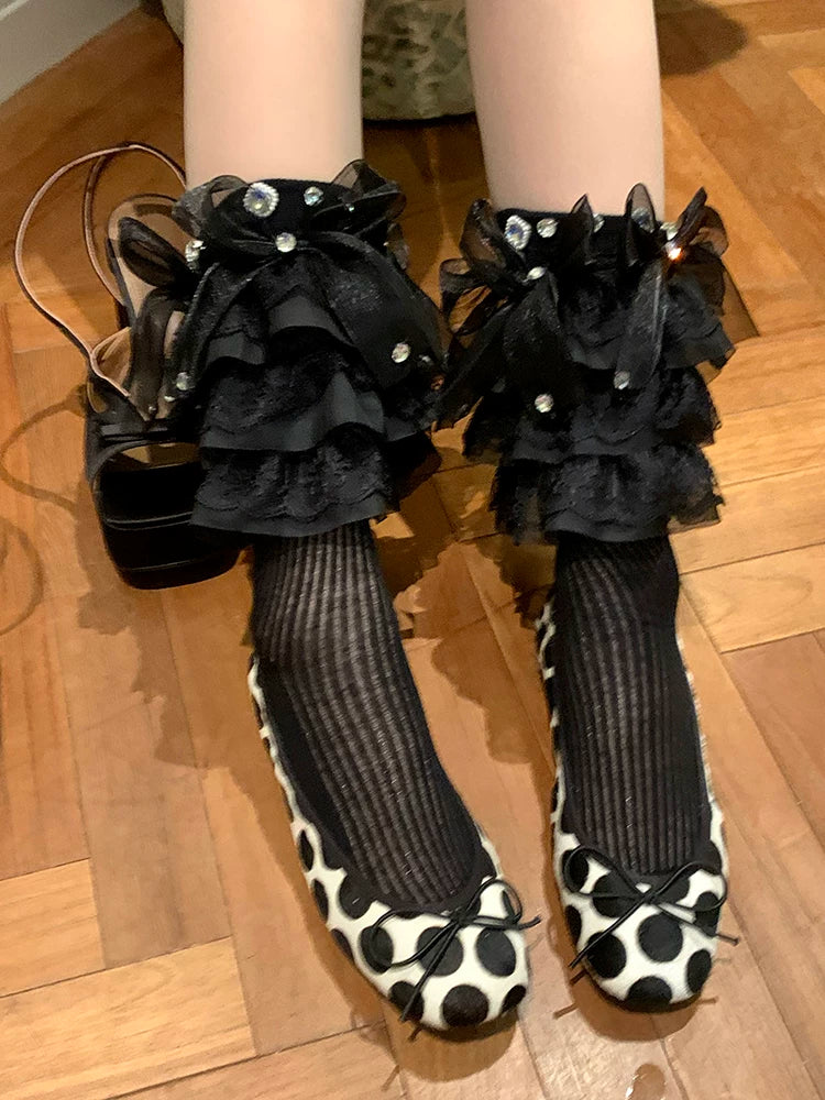 Fashion niche, design thin mesh lace diamond women's stacking socks cute medium tube socks student socks