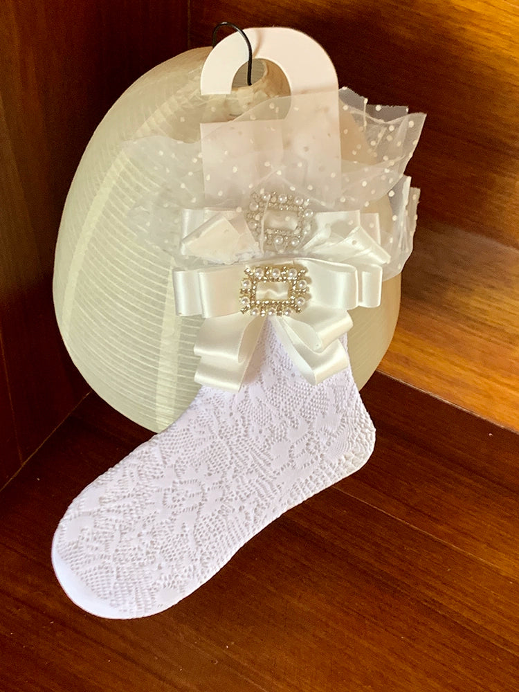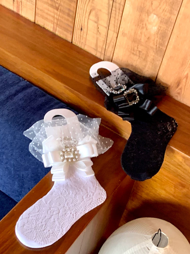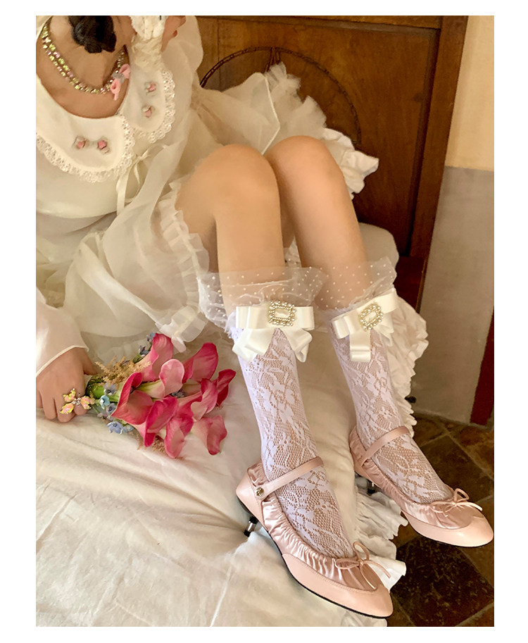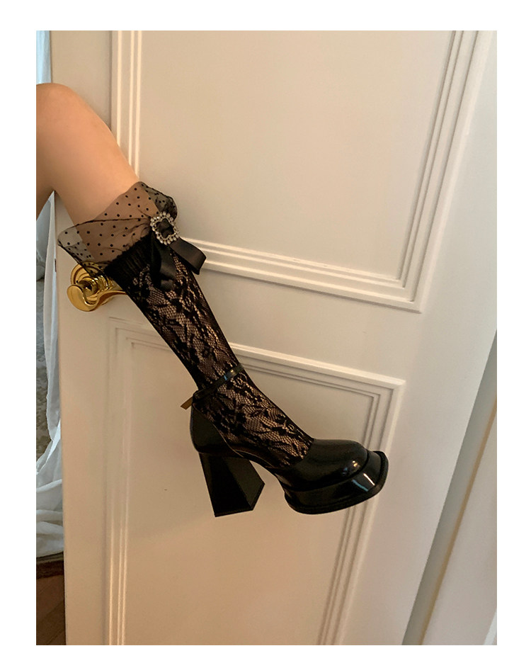 Fashion niche Japanese college style lace lace knee socks women's rhinestone elastic long tube calf net socks