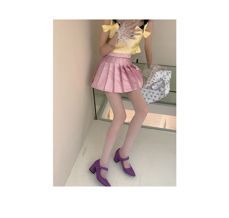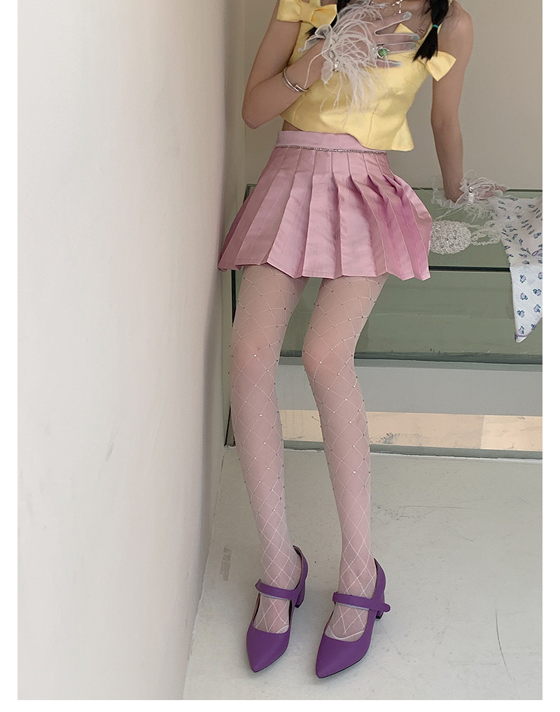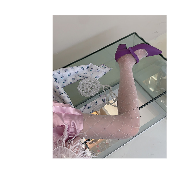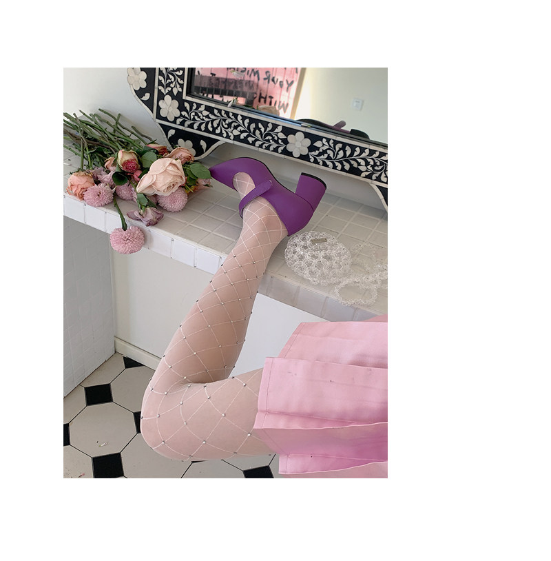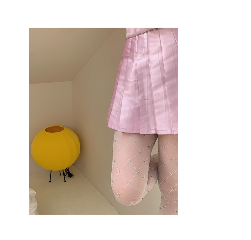 Fashion niche Japanese Internet celebrity sexy diamond net flash diamond jumpsuit white stockings women pure want to show thin leggings