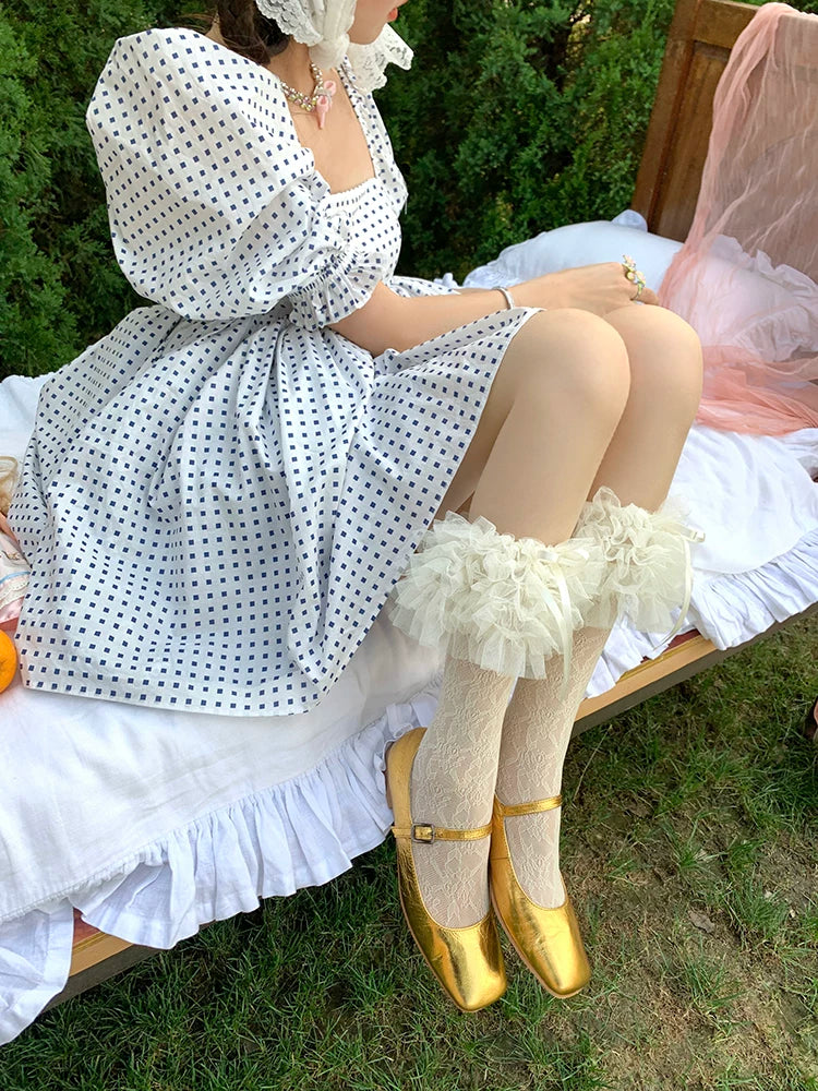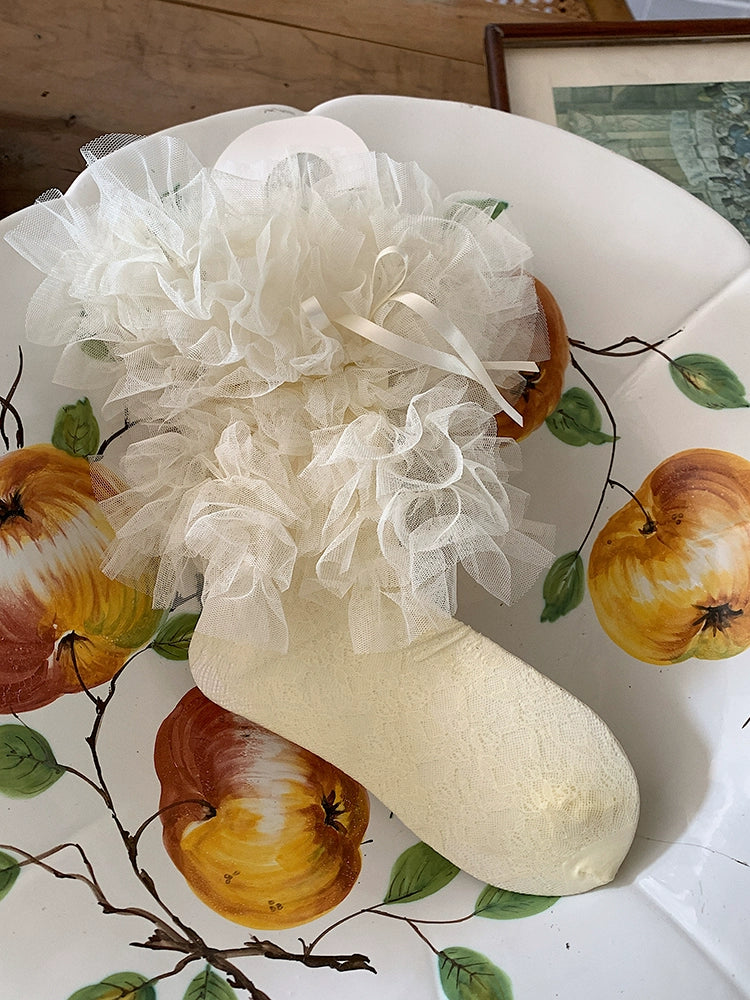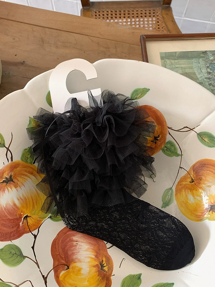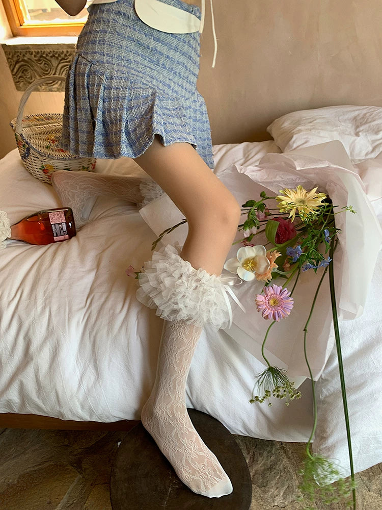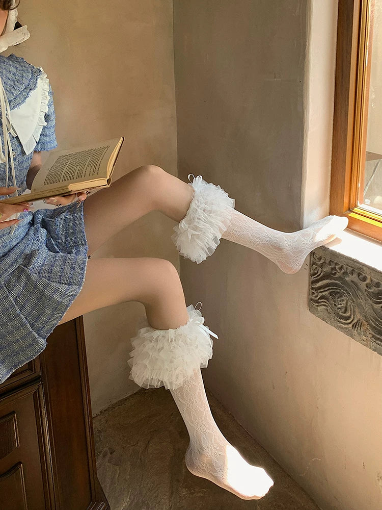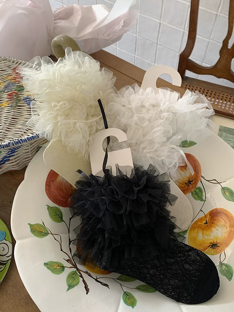 Fashion niche lace new products * cake doll * French romantic pleated mesh lace socks medium tube socks