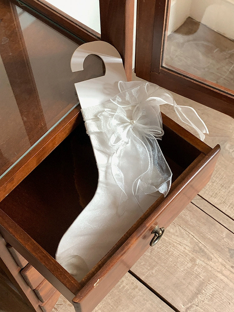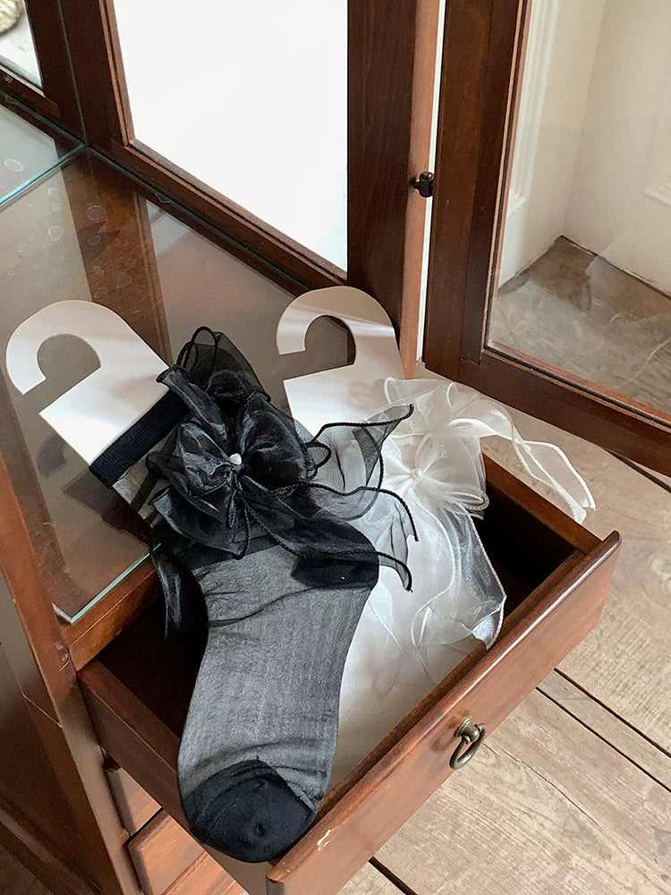 Fashion niche Lolita JK socks women's double yarn bow lace sweet medium tube princess socks thin