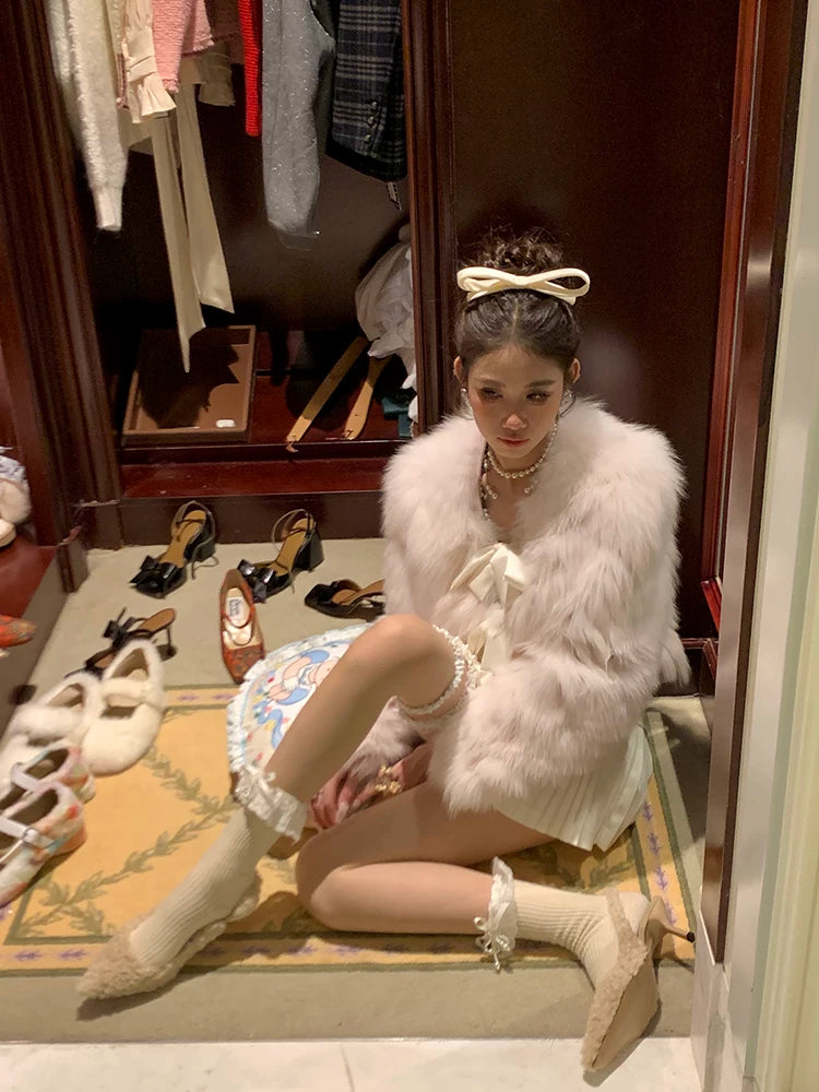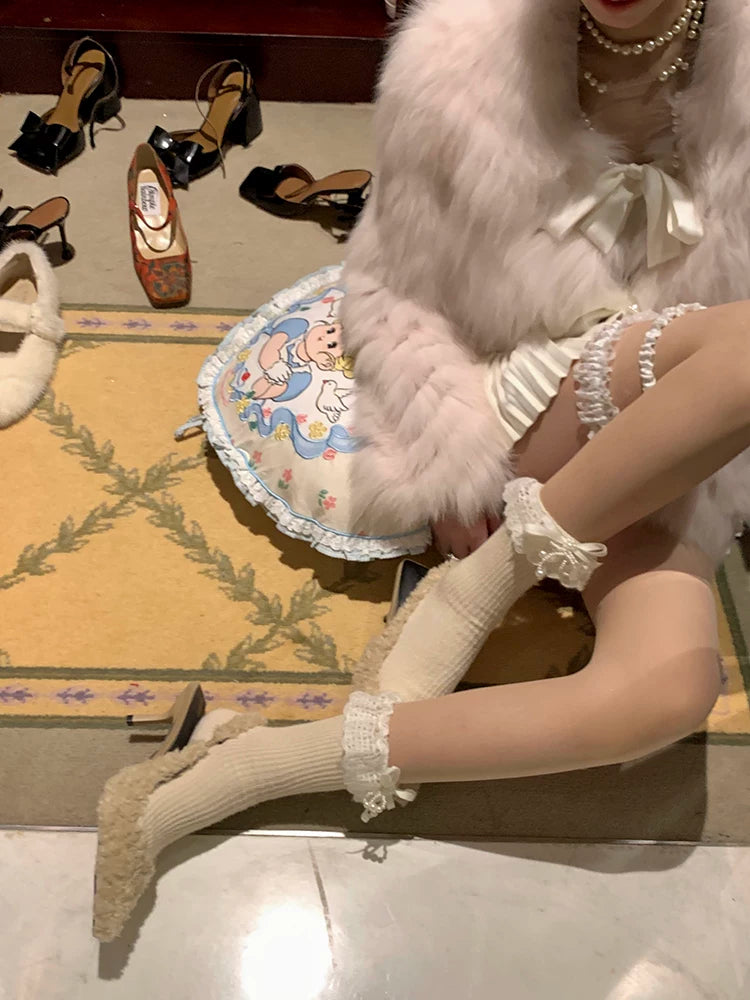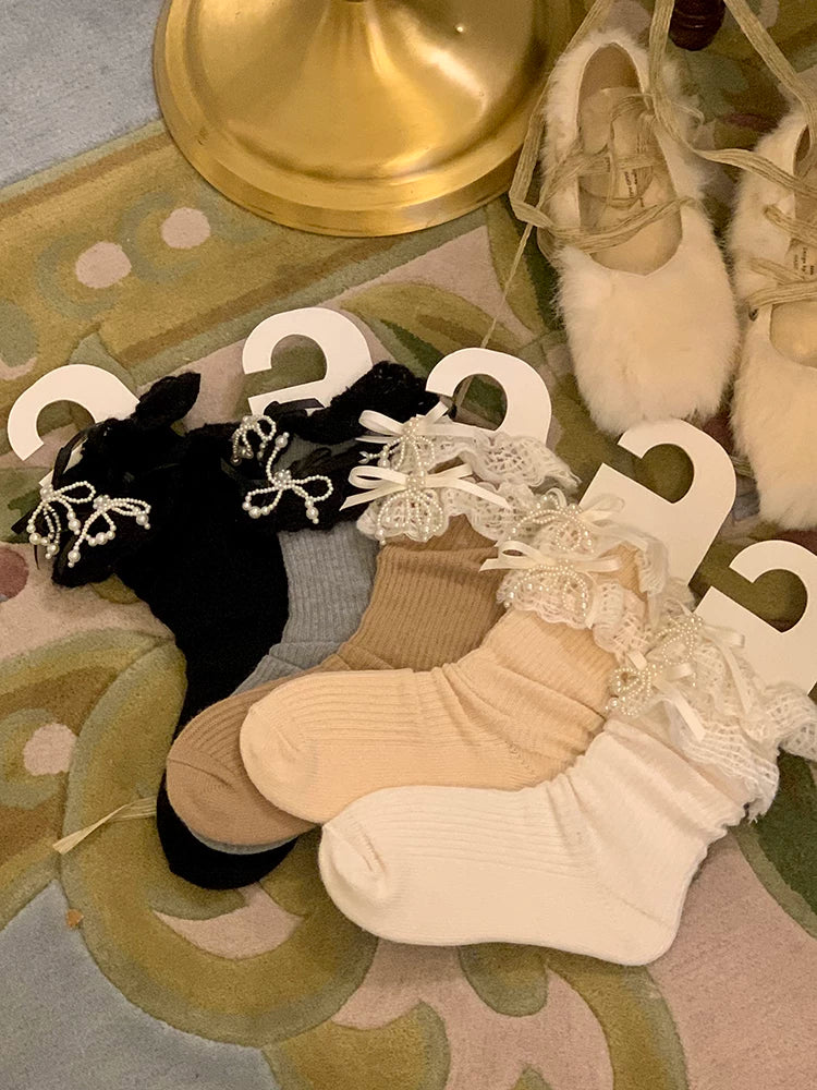 Fashion niche three-dimensional crystal bow socks women's red striped long tube jk lolita calf socks