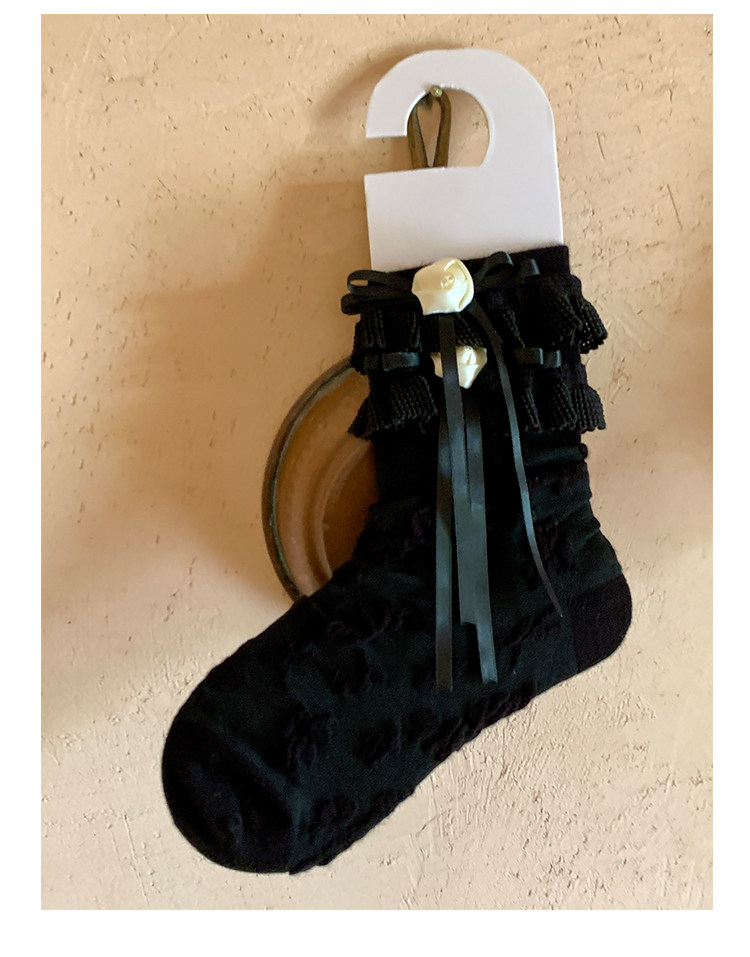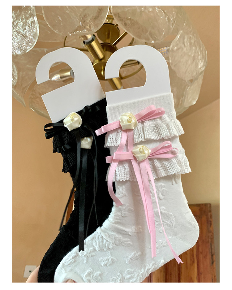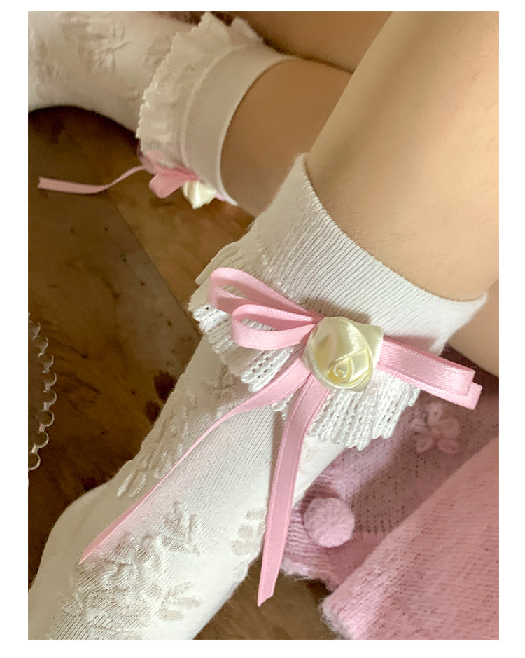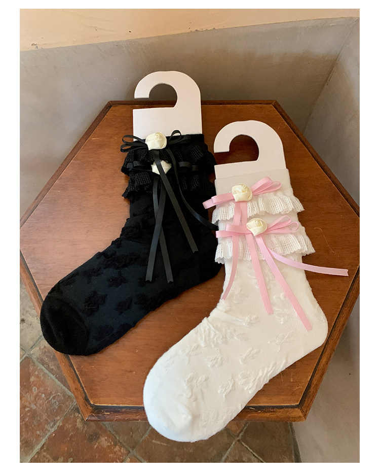 Fashion niche Yu Shuxin same bow tube socks lace thin bow Lolita style