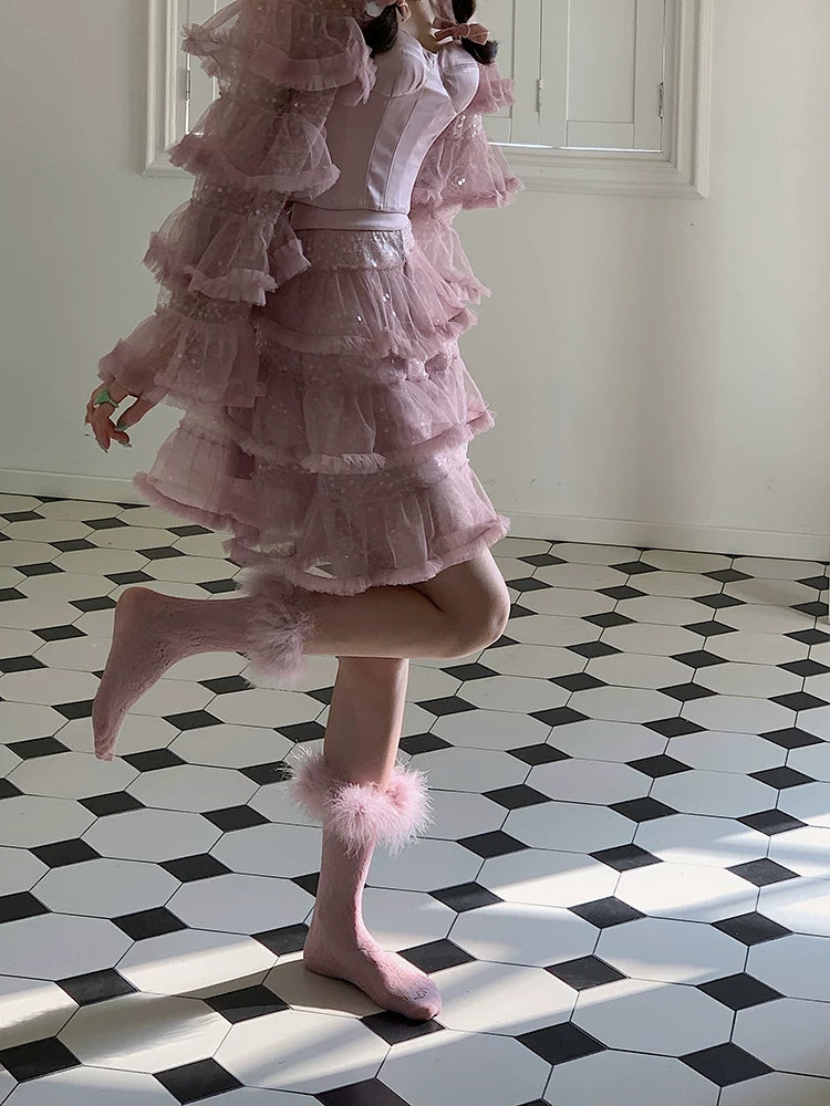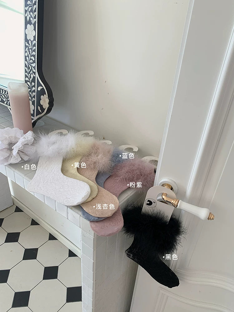 Fashion original niche design, autumn feather lace tube socks sexy Lolita college style stockings