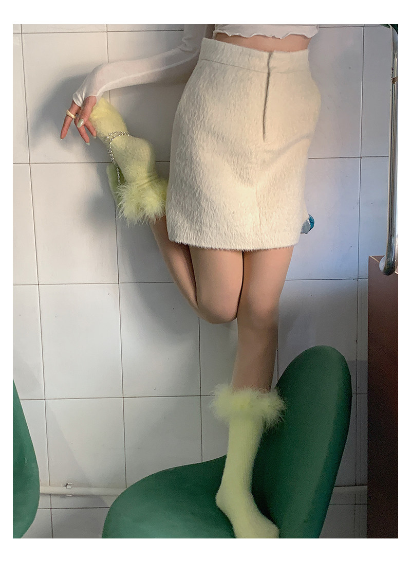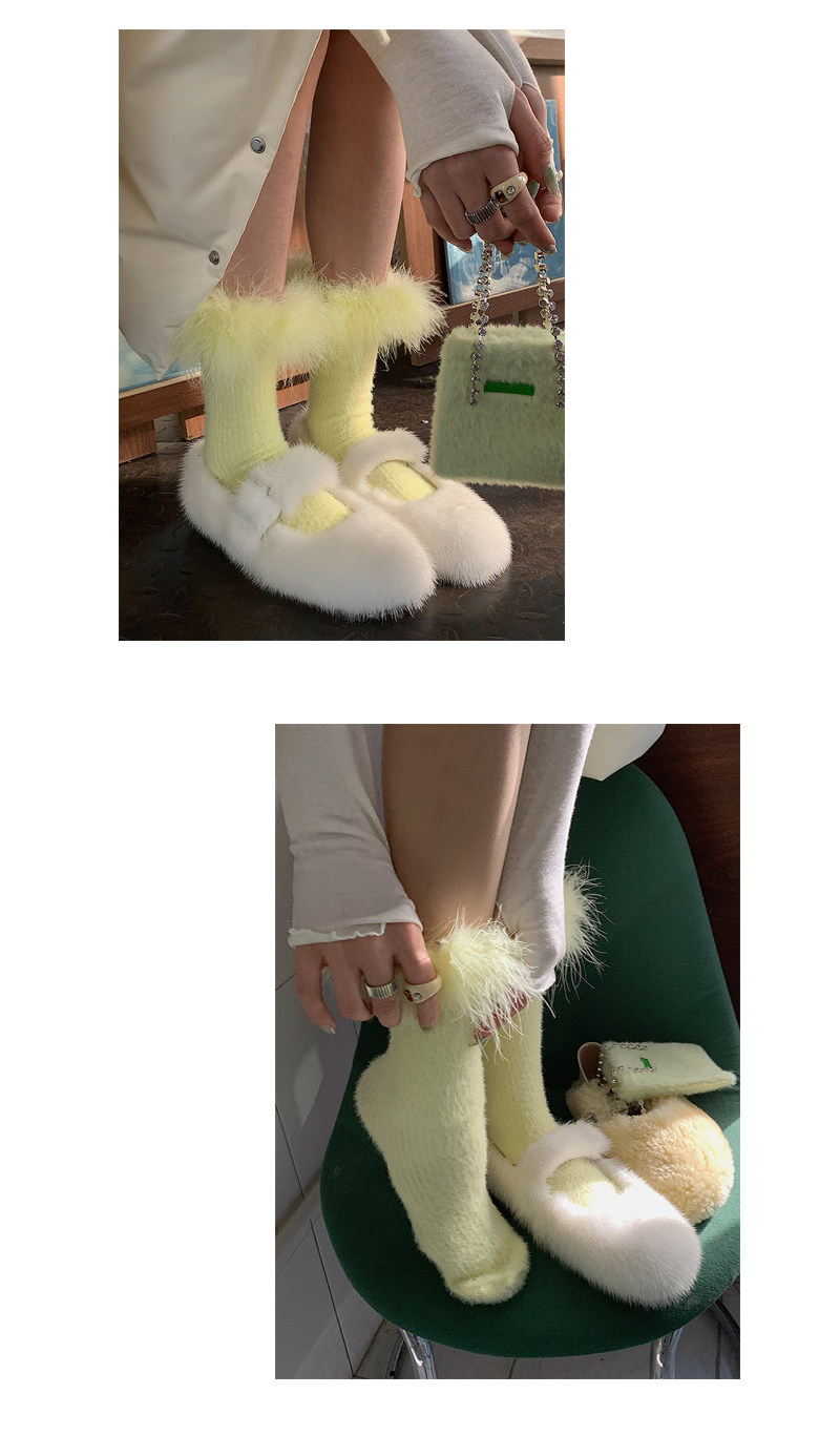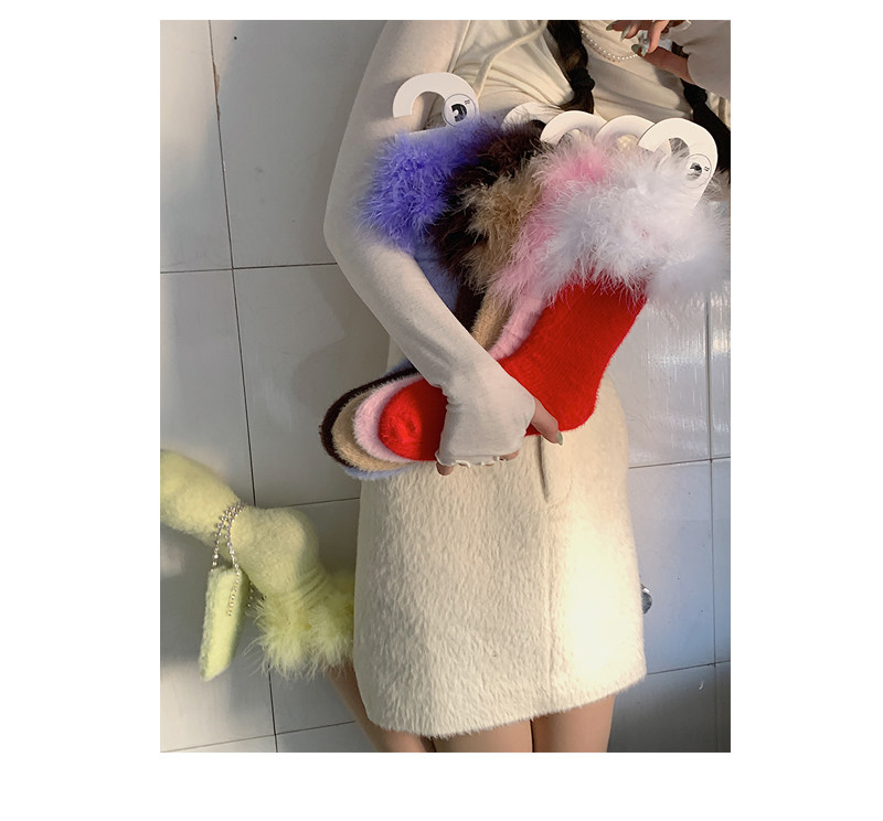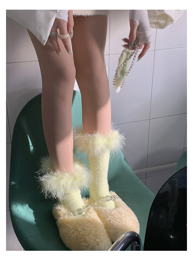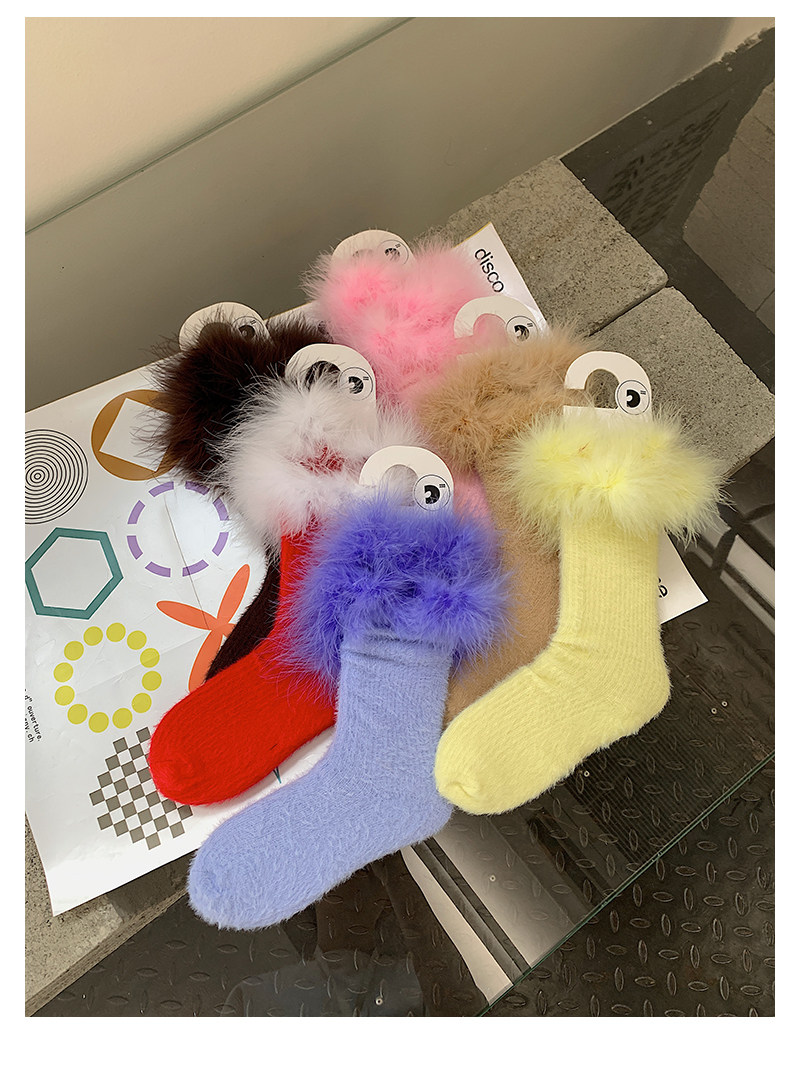 Fashion original niche design, furry feathers New Year's red tube socks sweet girl college style