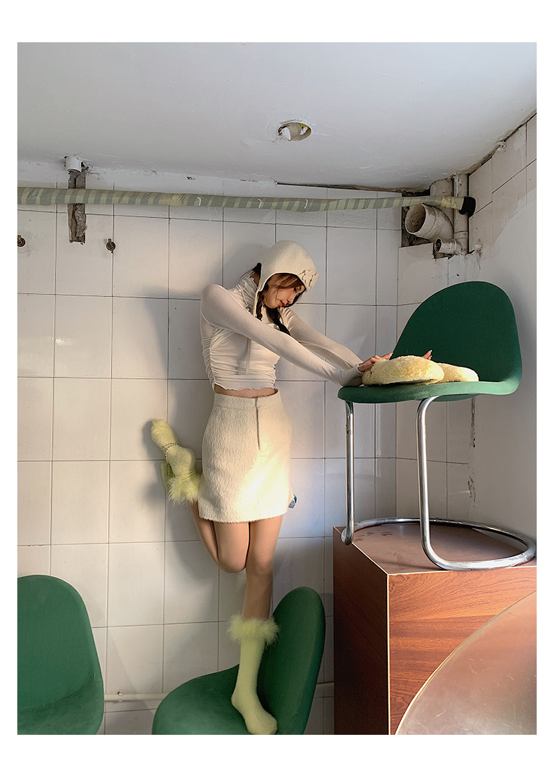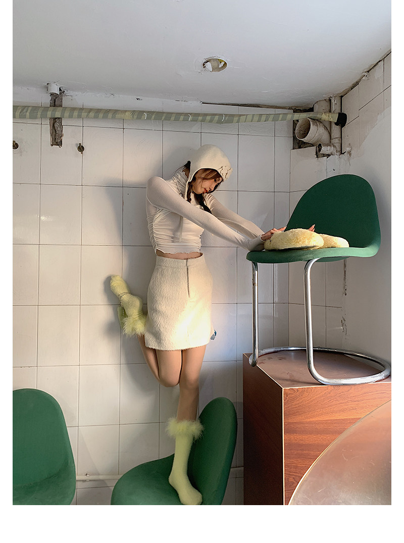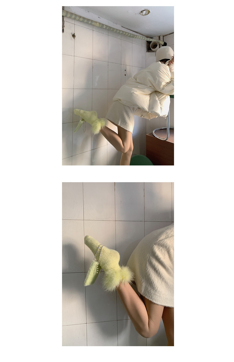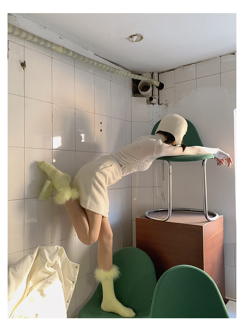 Fashion original niche design, furry feathers New Year's red tube socks sweet girl college style
