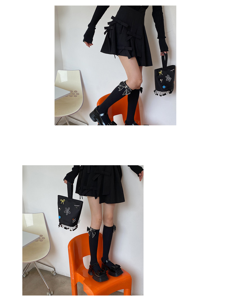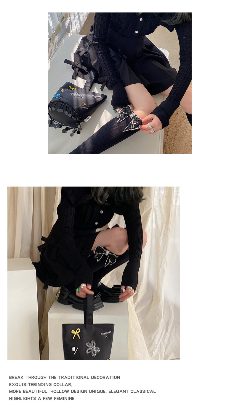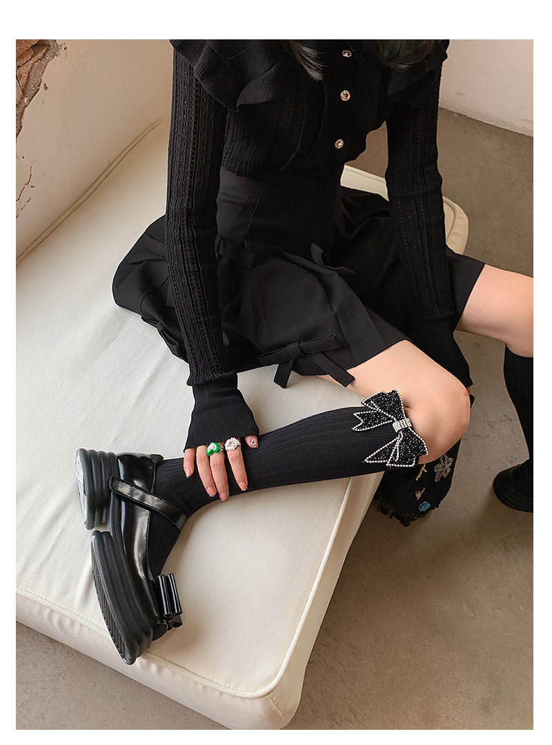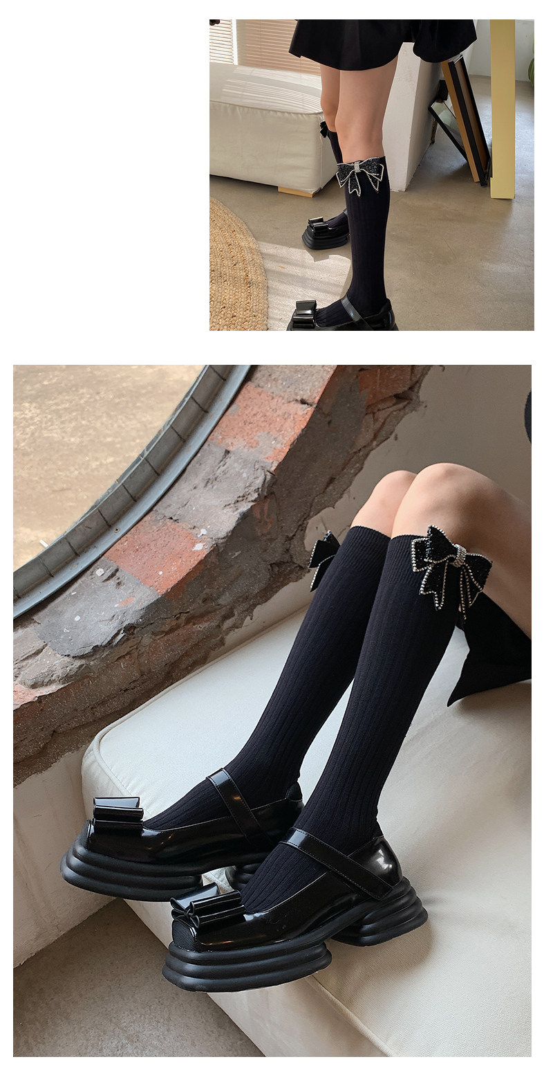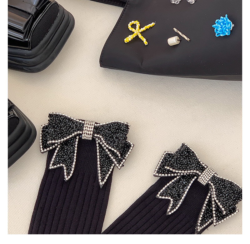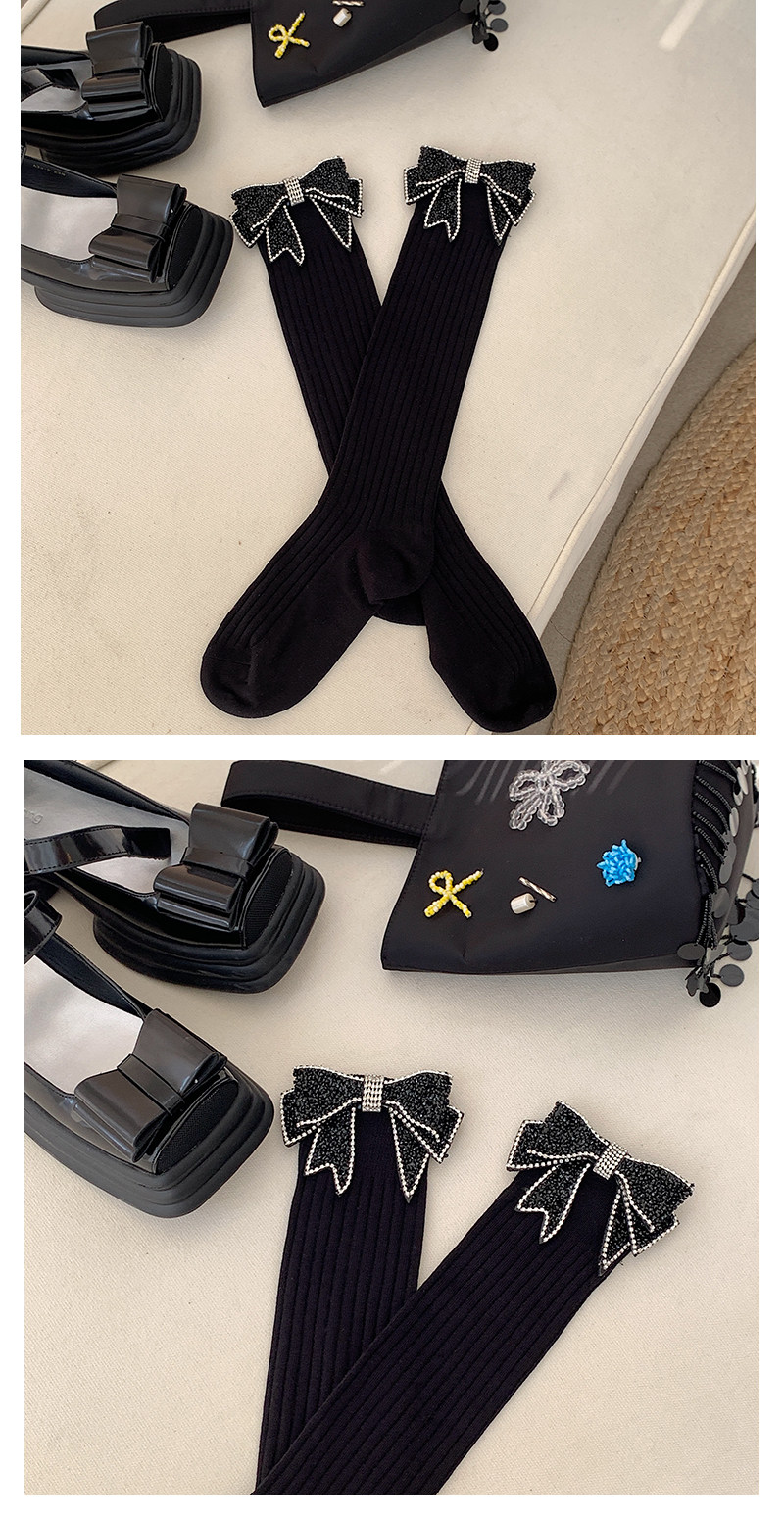 Fashion original niche design handmade bow rhinestone versatile black double needle medium high tube sweet beautiful women socks