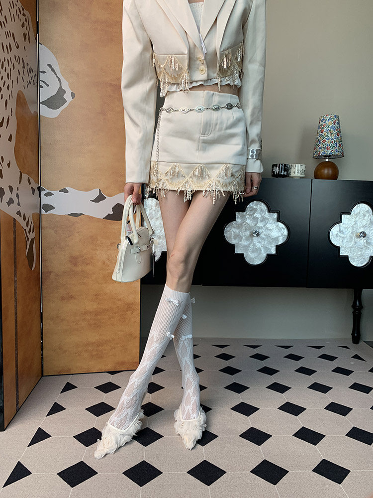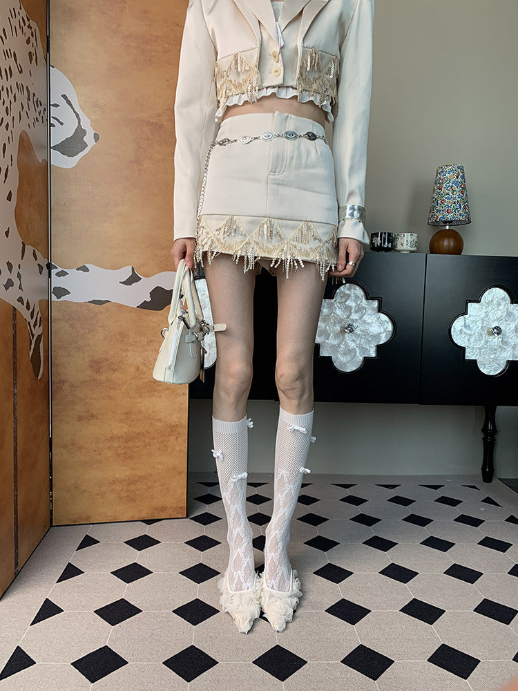 Lose the color of dusk~ Summer 2025 New French Ballet Romantic Niche Mesh White Calf