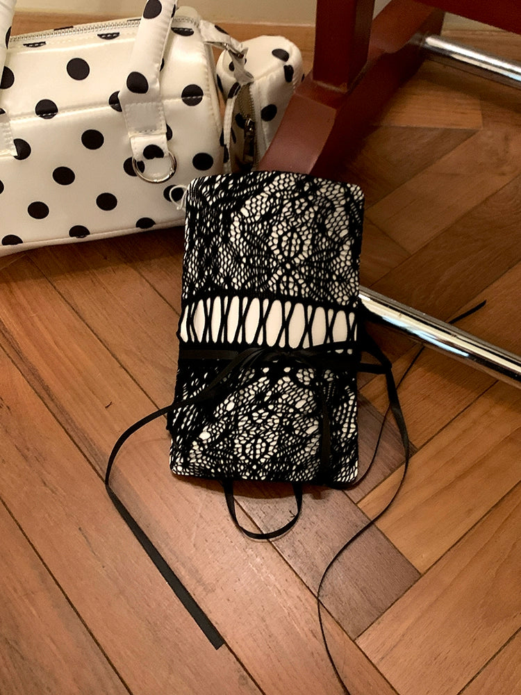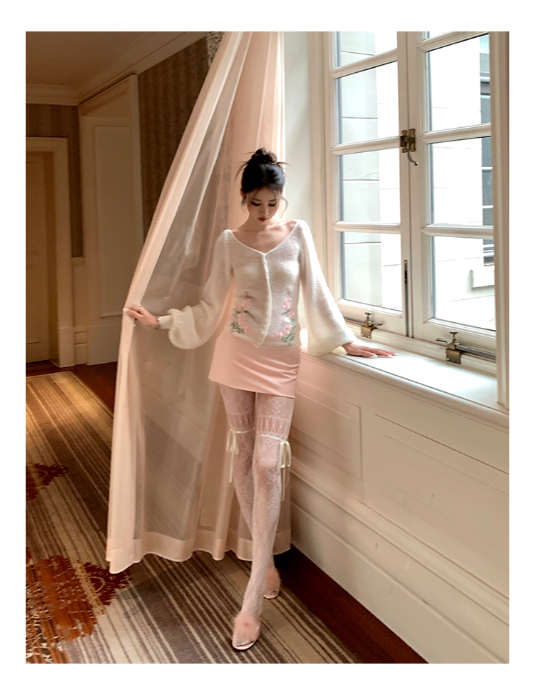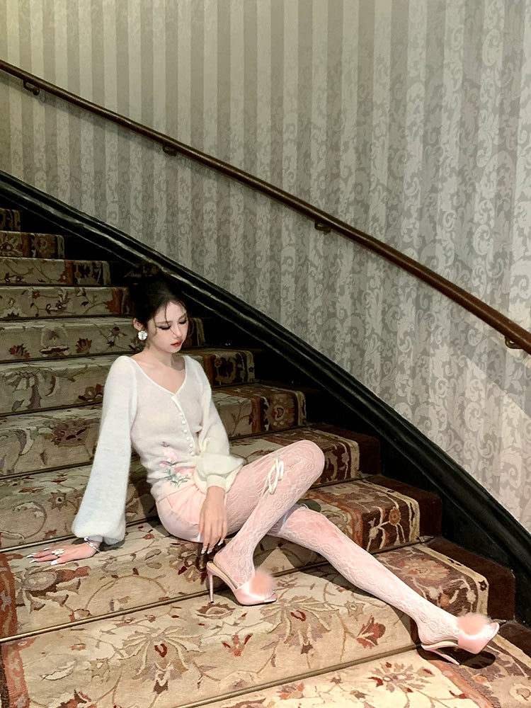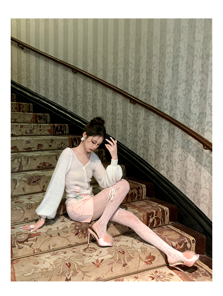 Niche design brand hollow white drawstring pantyhose women's autumn new light and mature fashion wear