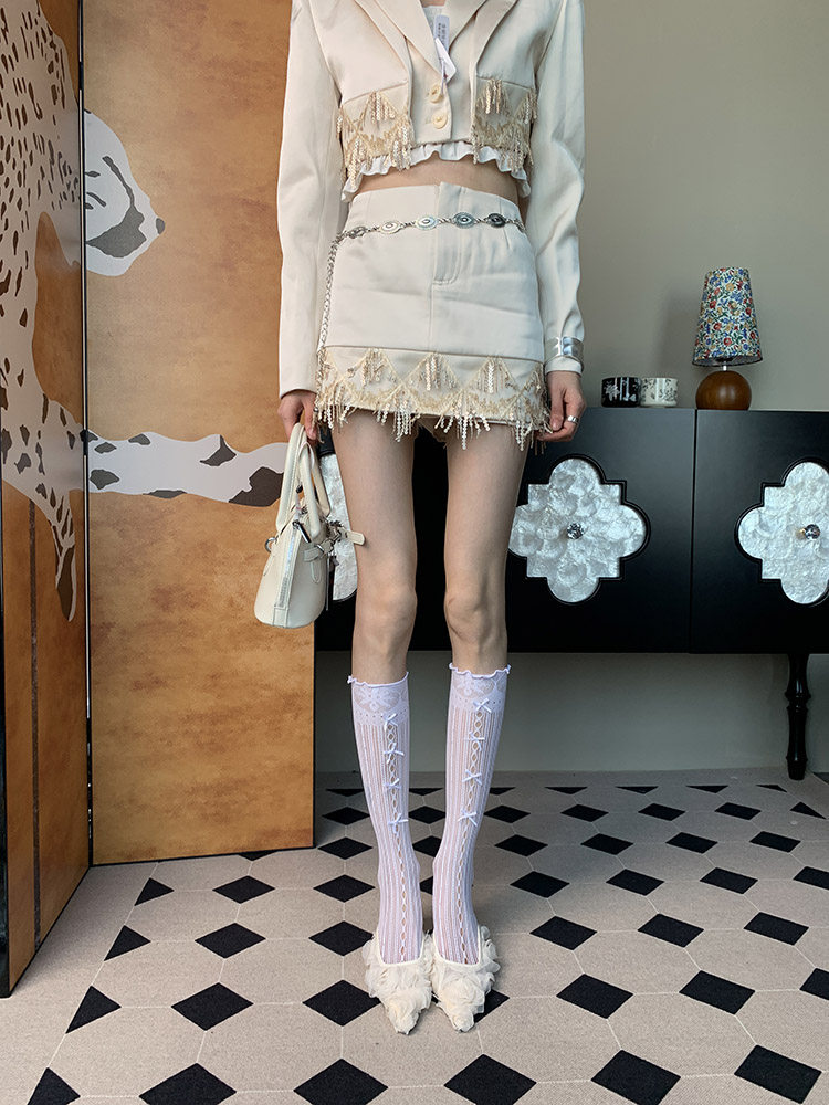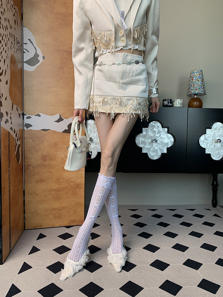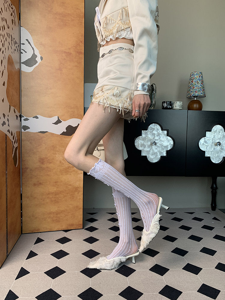 Scattered Fragments~ Summer 2025 New French Ballet Romantic Niche Women's Thin Pure White Knot Calves
