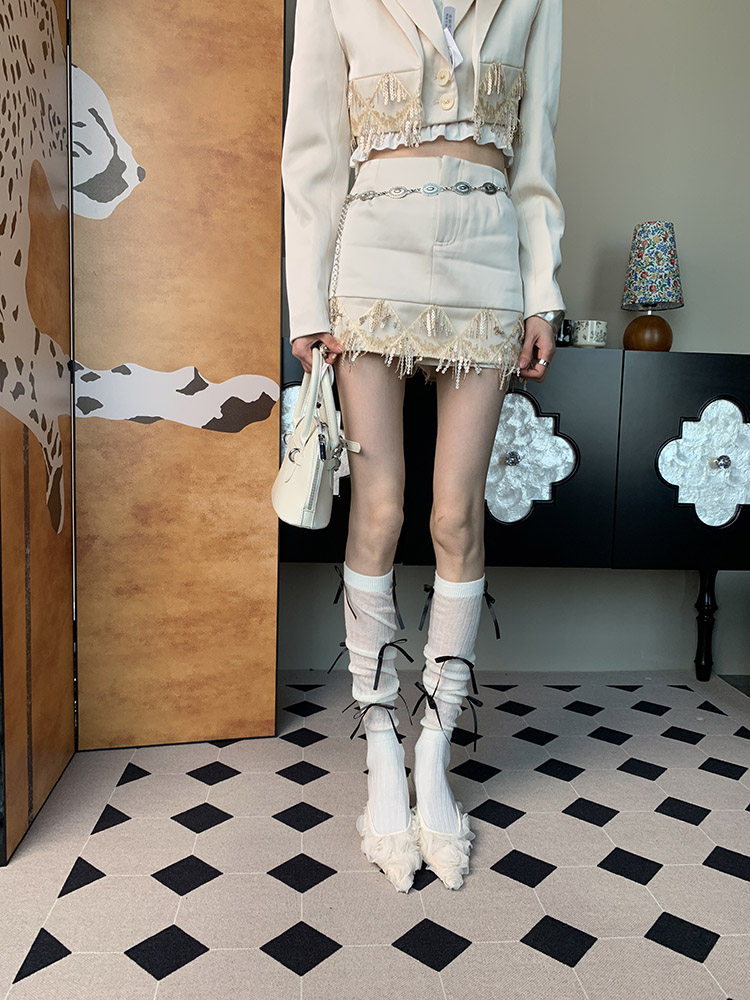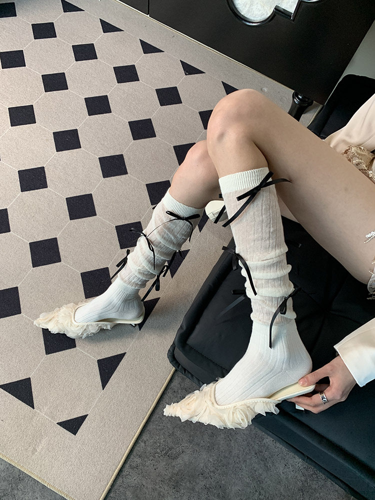 White peach summer~ summer 2025 new French romantic niche women thin black bow white calf