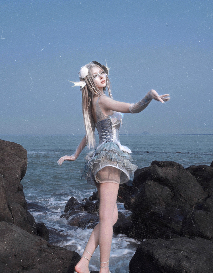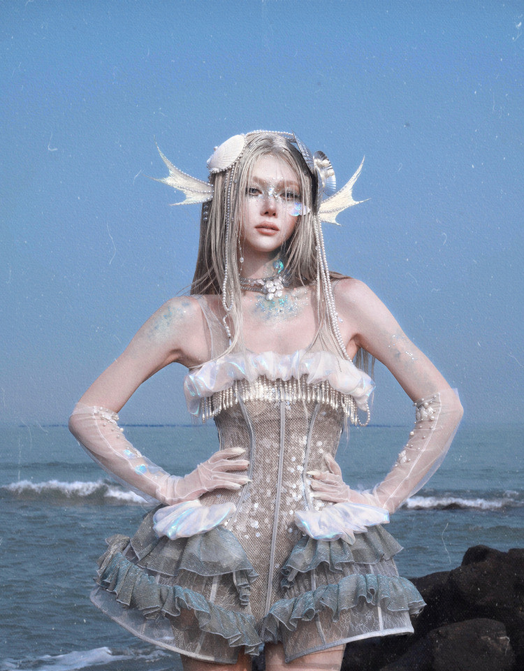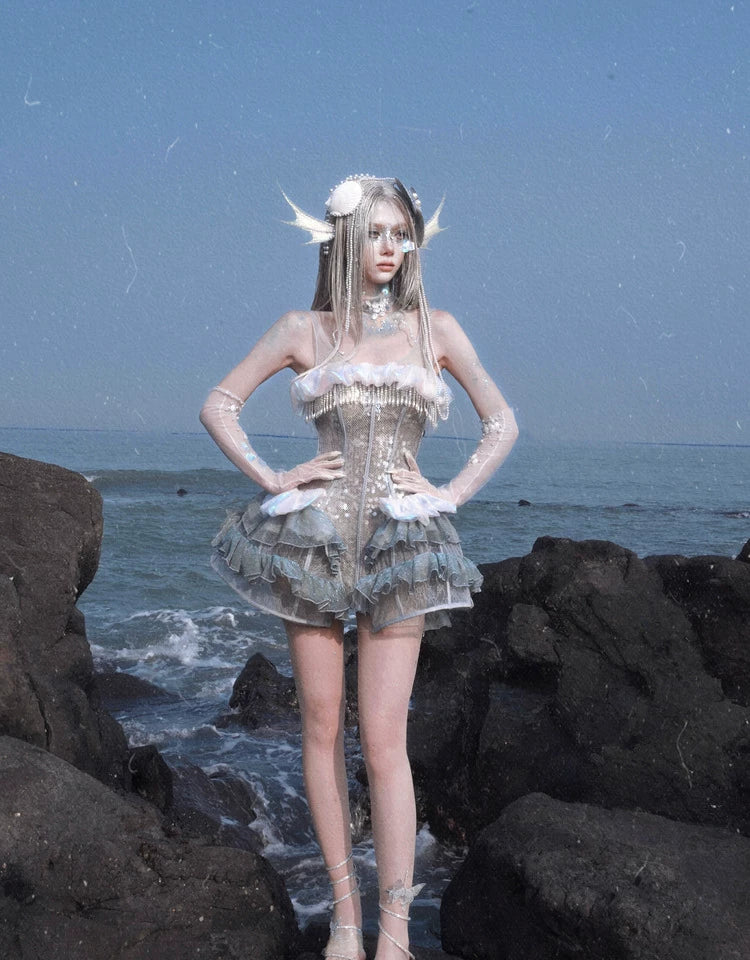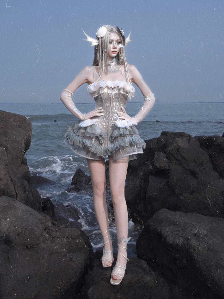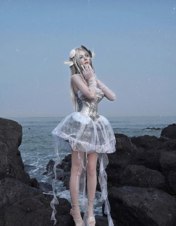 Heavy Industry Sequins Polarized Fishbone Jellyfish Holiday Dress Christmas