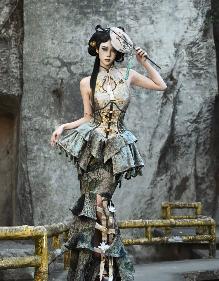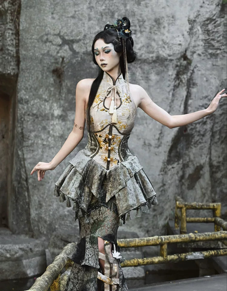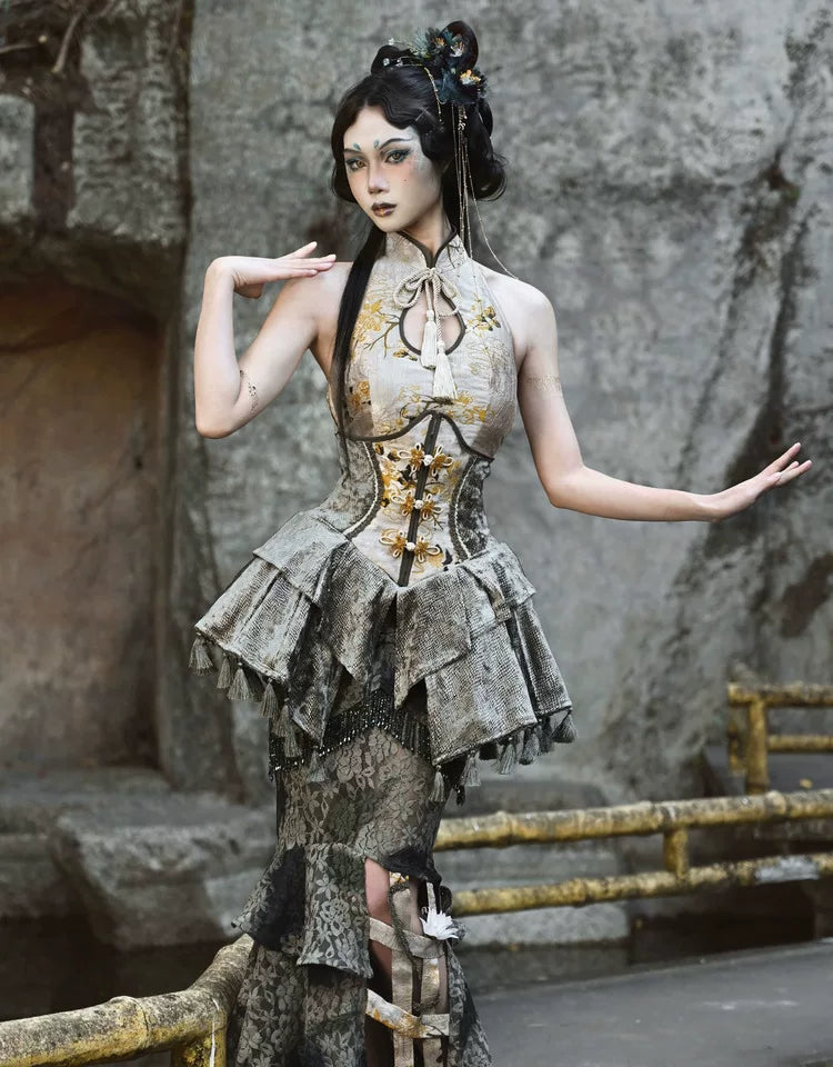 Spring Dragon Festival New Chinese-style disc buckle slim fish bone elastic waist girdle waist seal Christmas