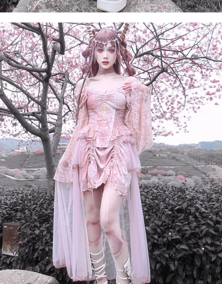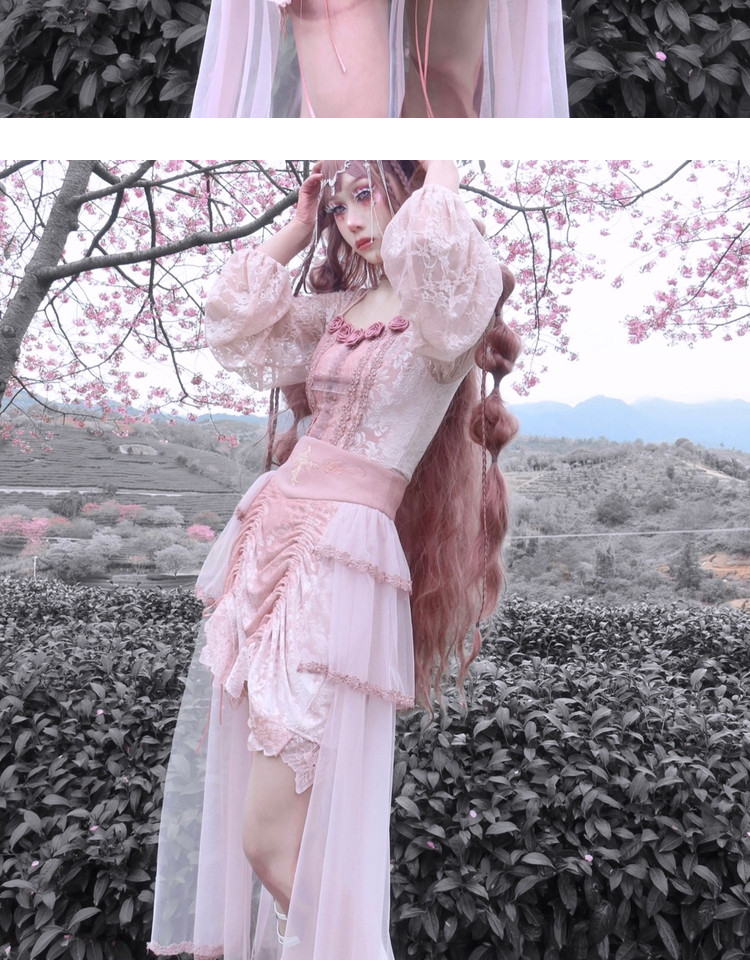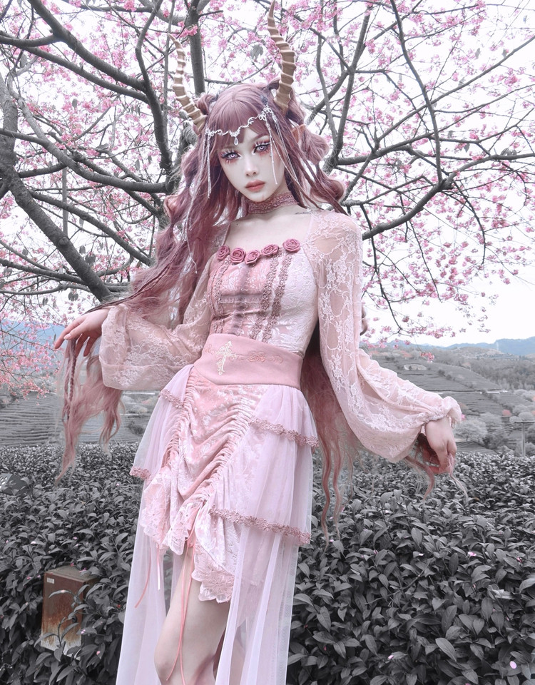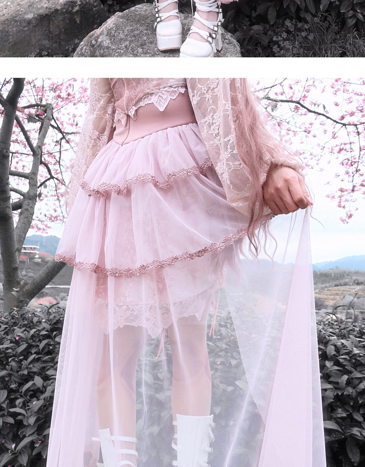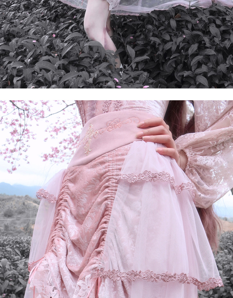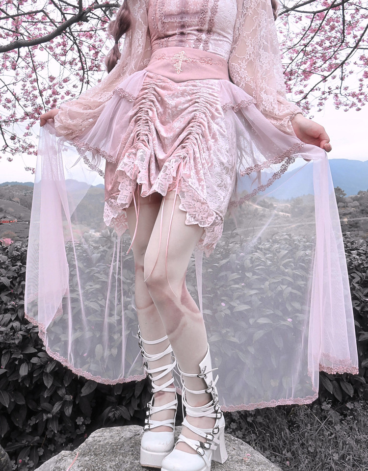 Original ◆ Sakura nightmare romantic gothic design embossed lotus root pink embroidered court half length skirt