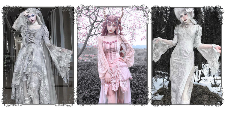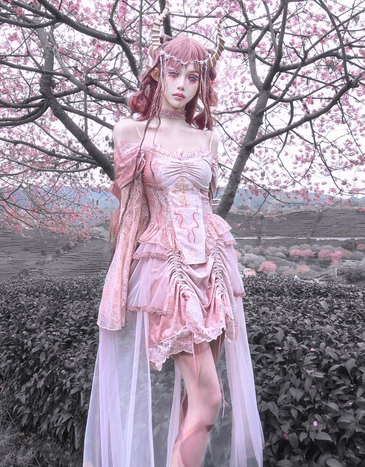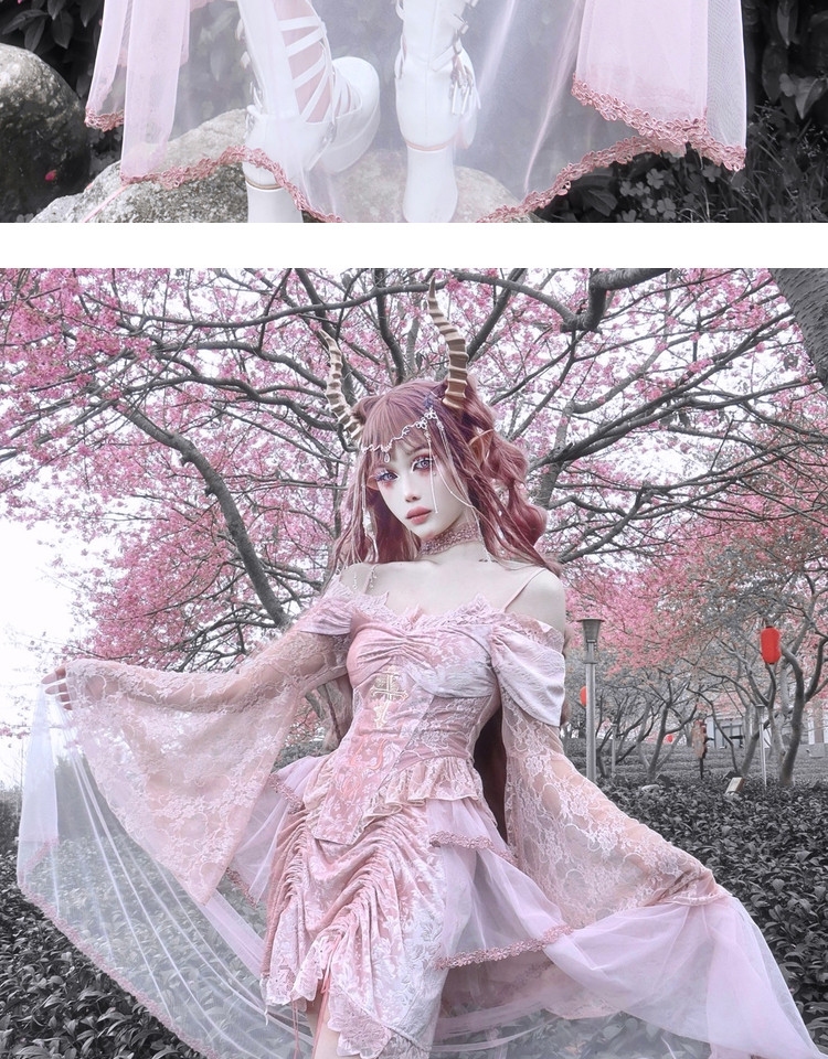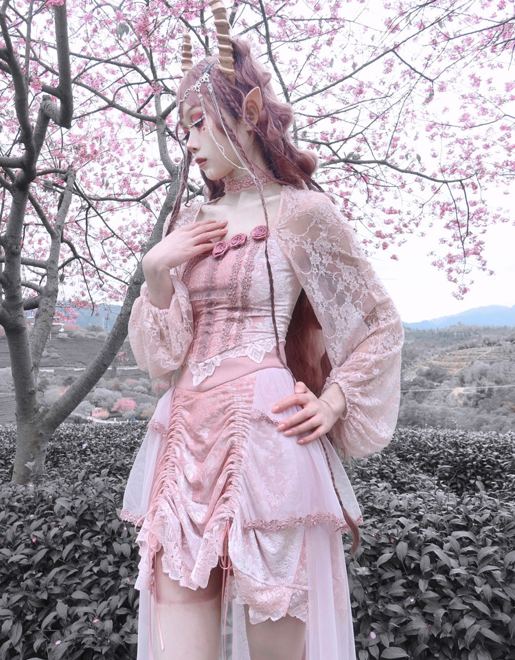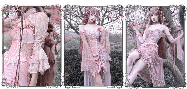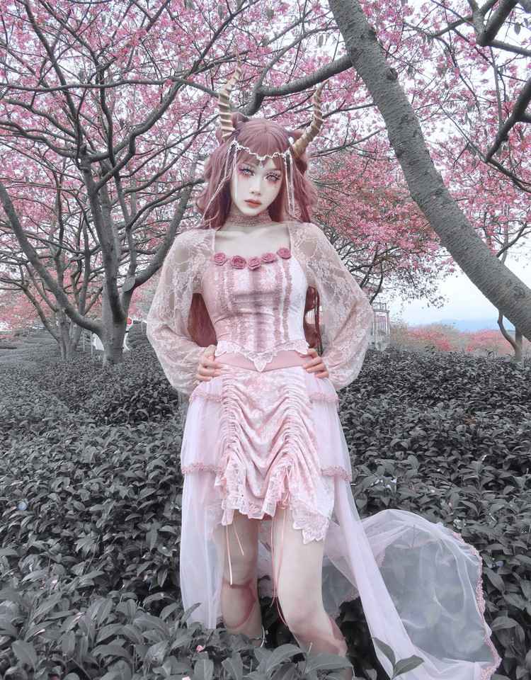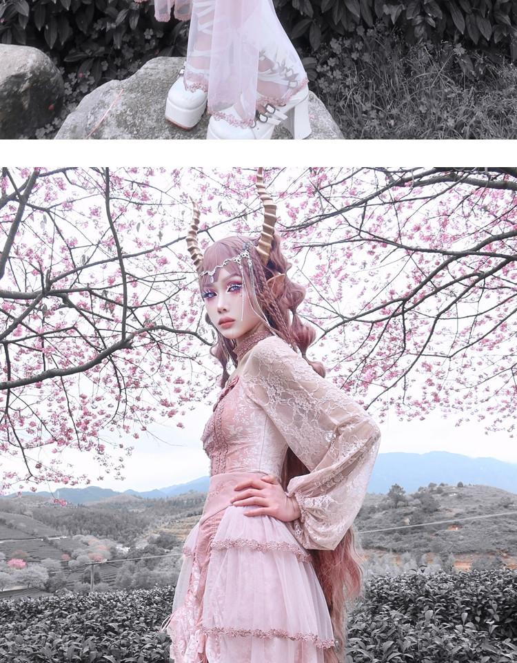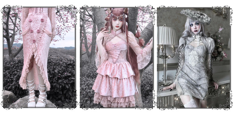 Original ◆ Sakura nightmare romantic gothic design embossed lotus root pink embroidered court half length skirt