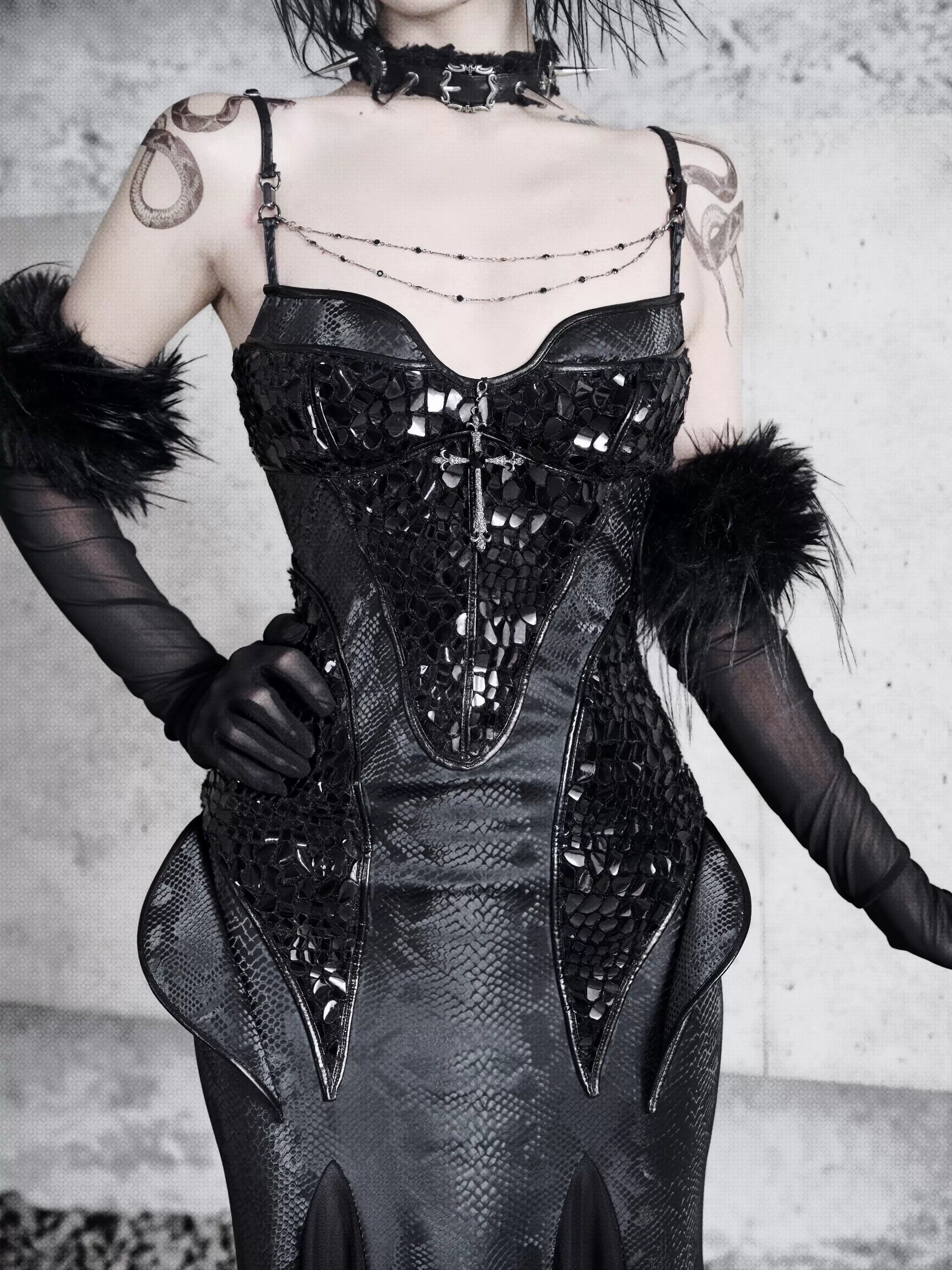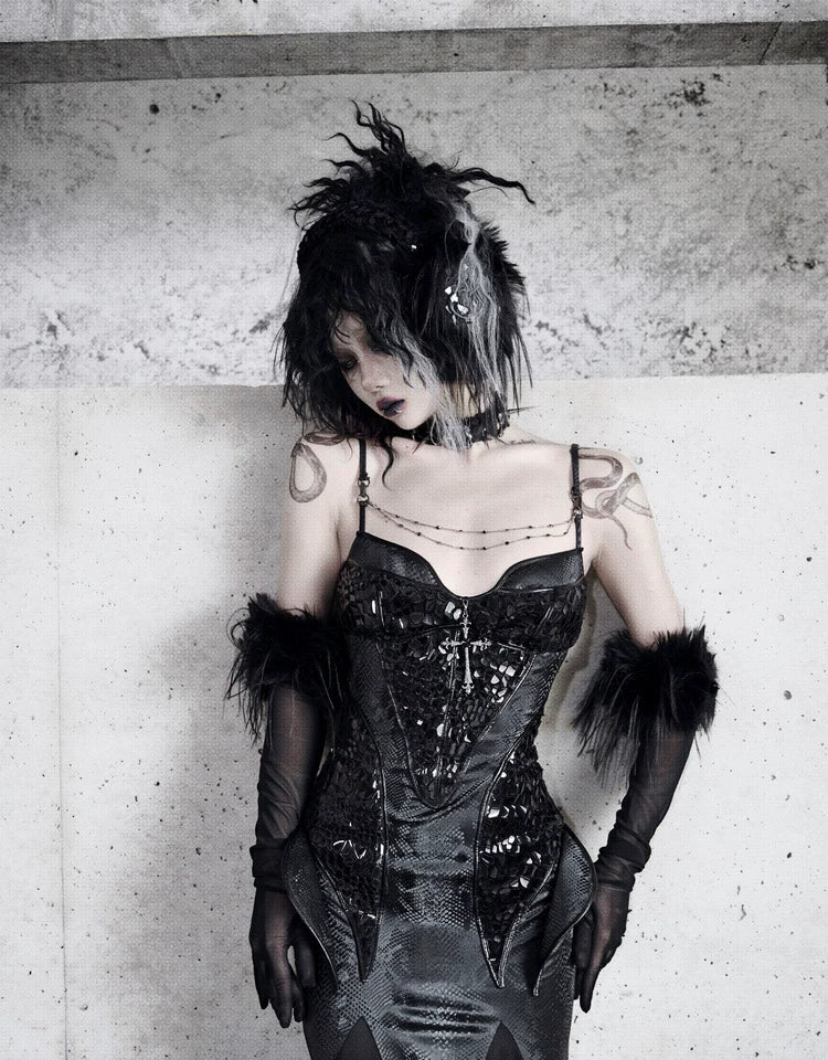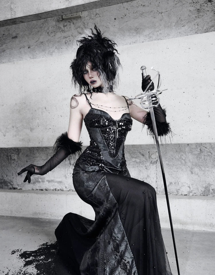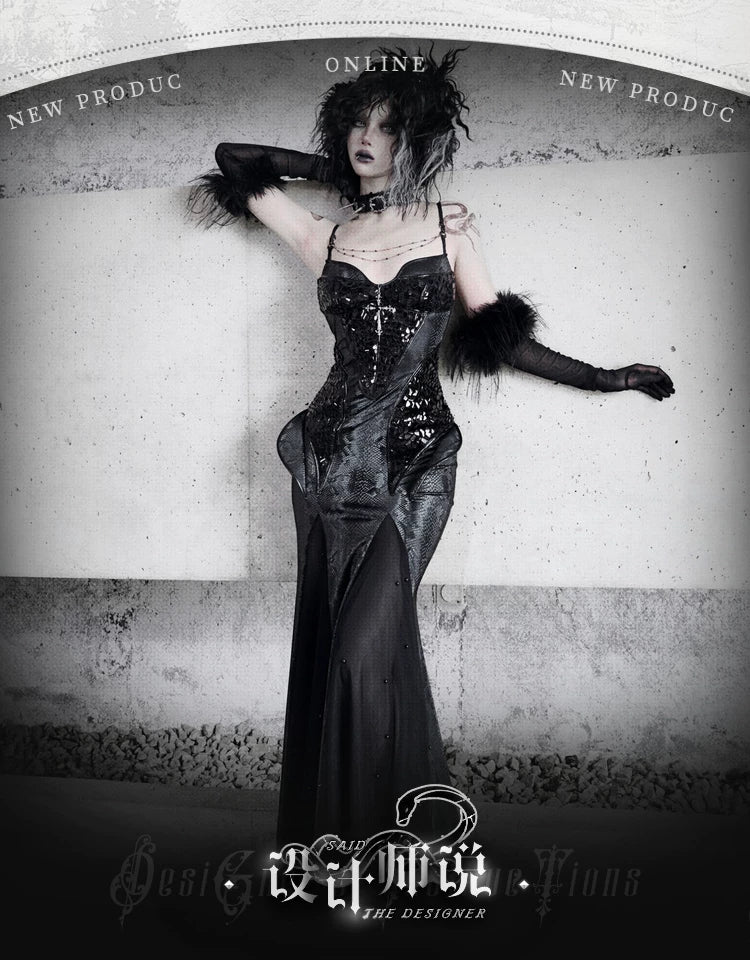Original ◆ Snake eyes shadow snake pattern stretch gothic suspender dress dress mermaid dress christmas halloween dress