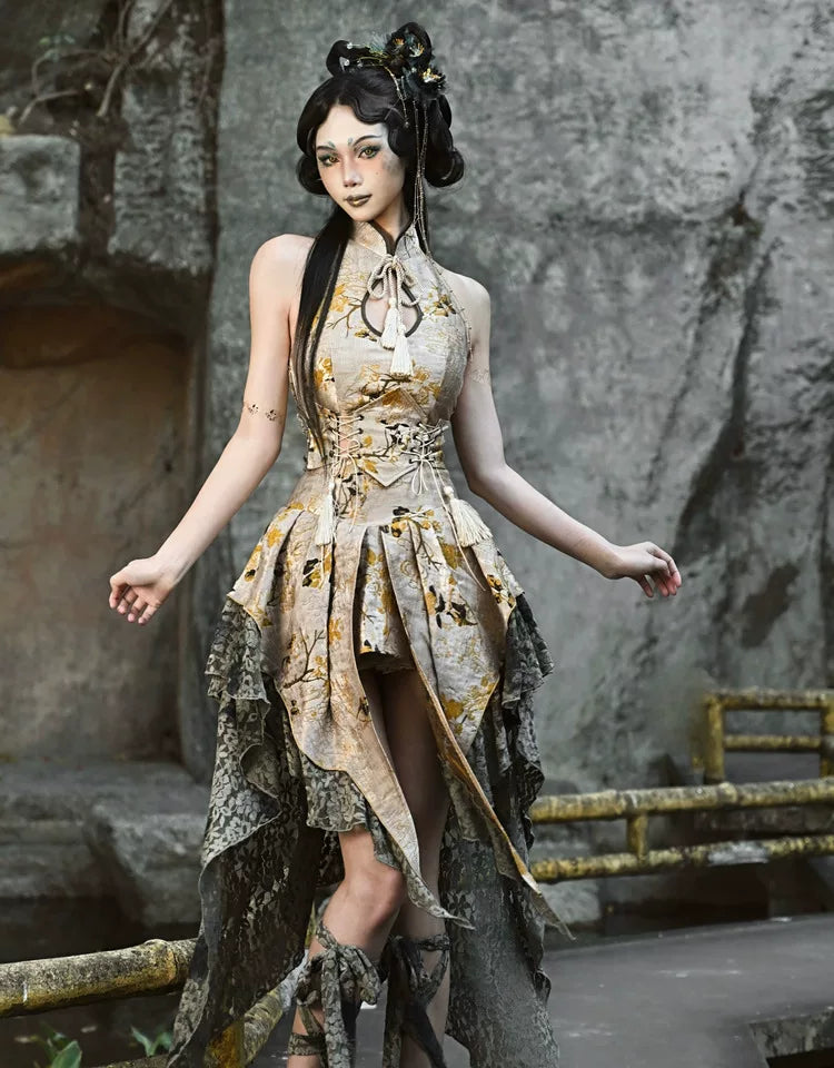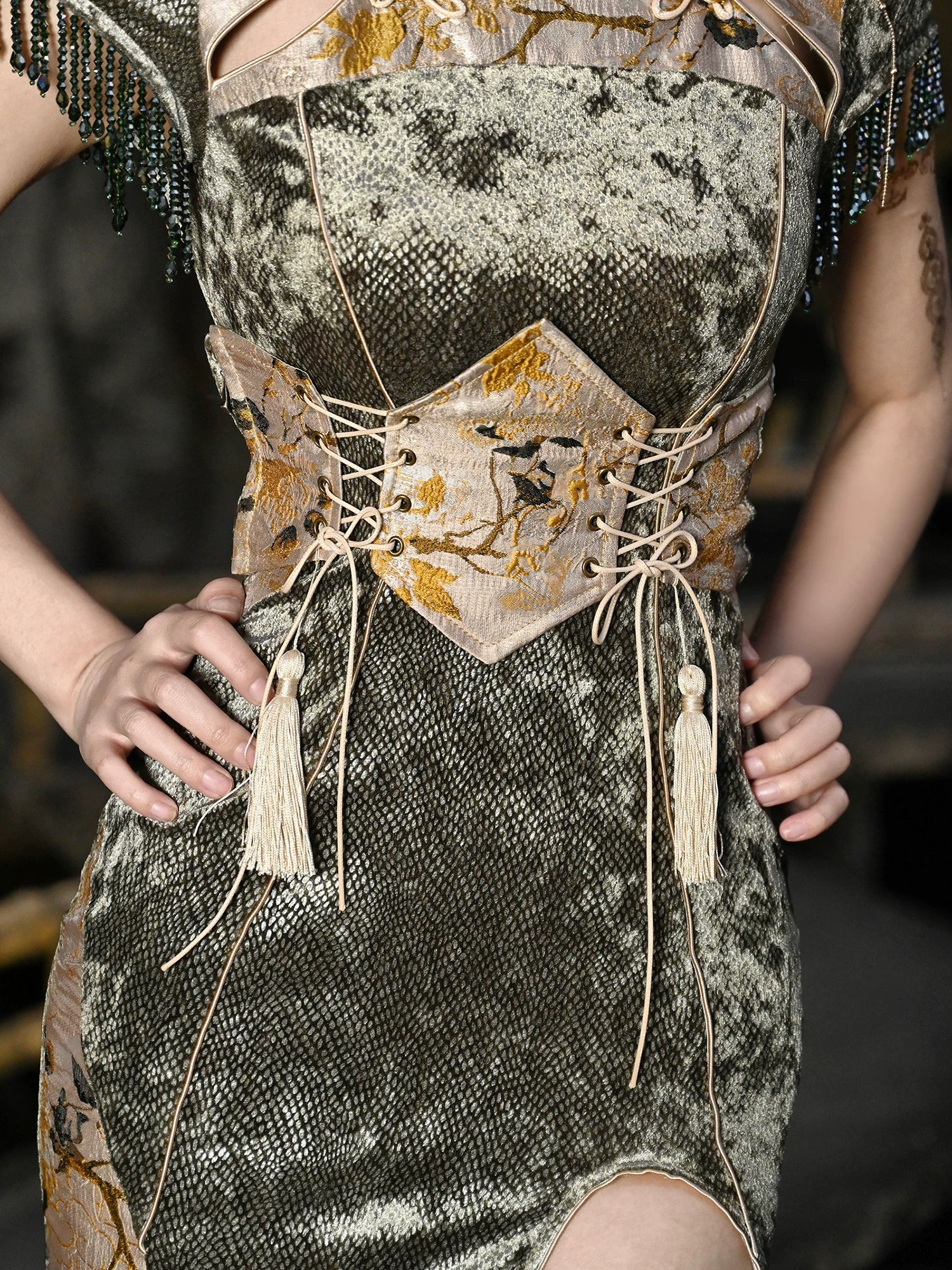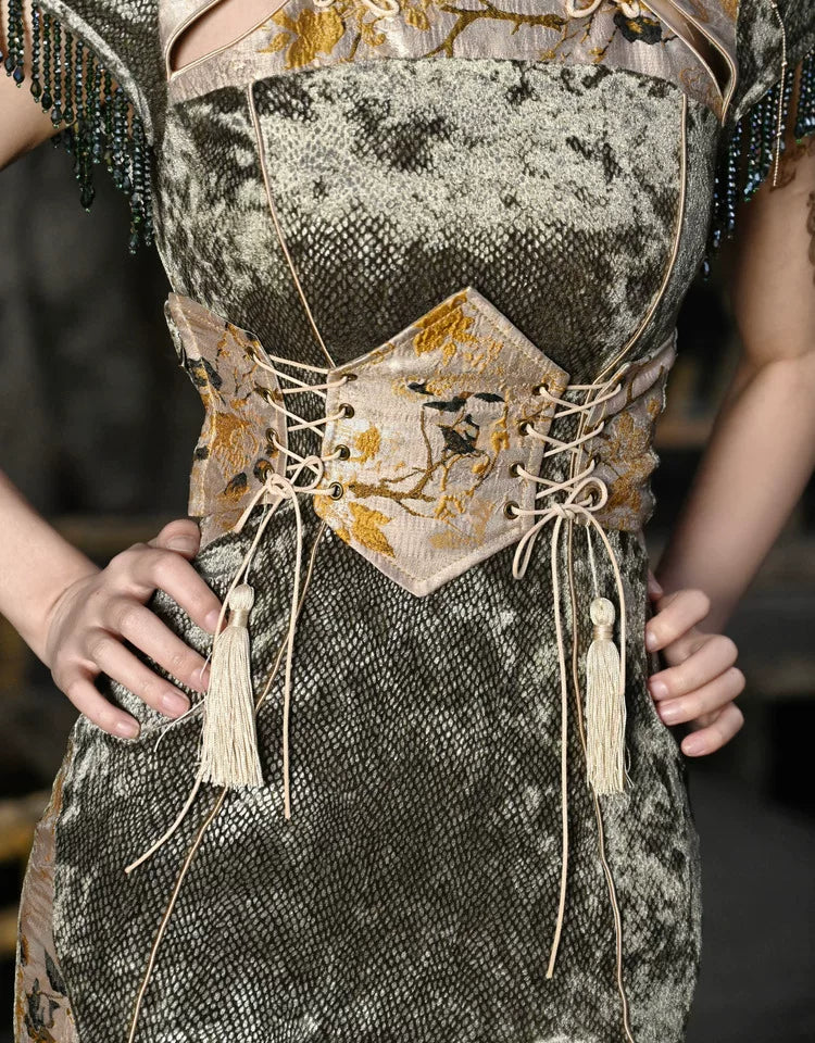 New chinese style tassel jacquard tassel scale pattern waist girdle christmas
