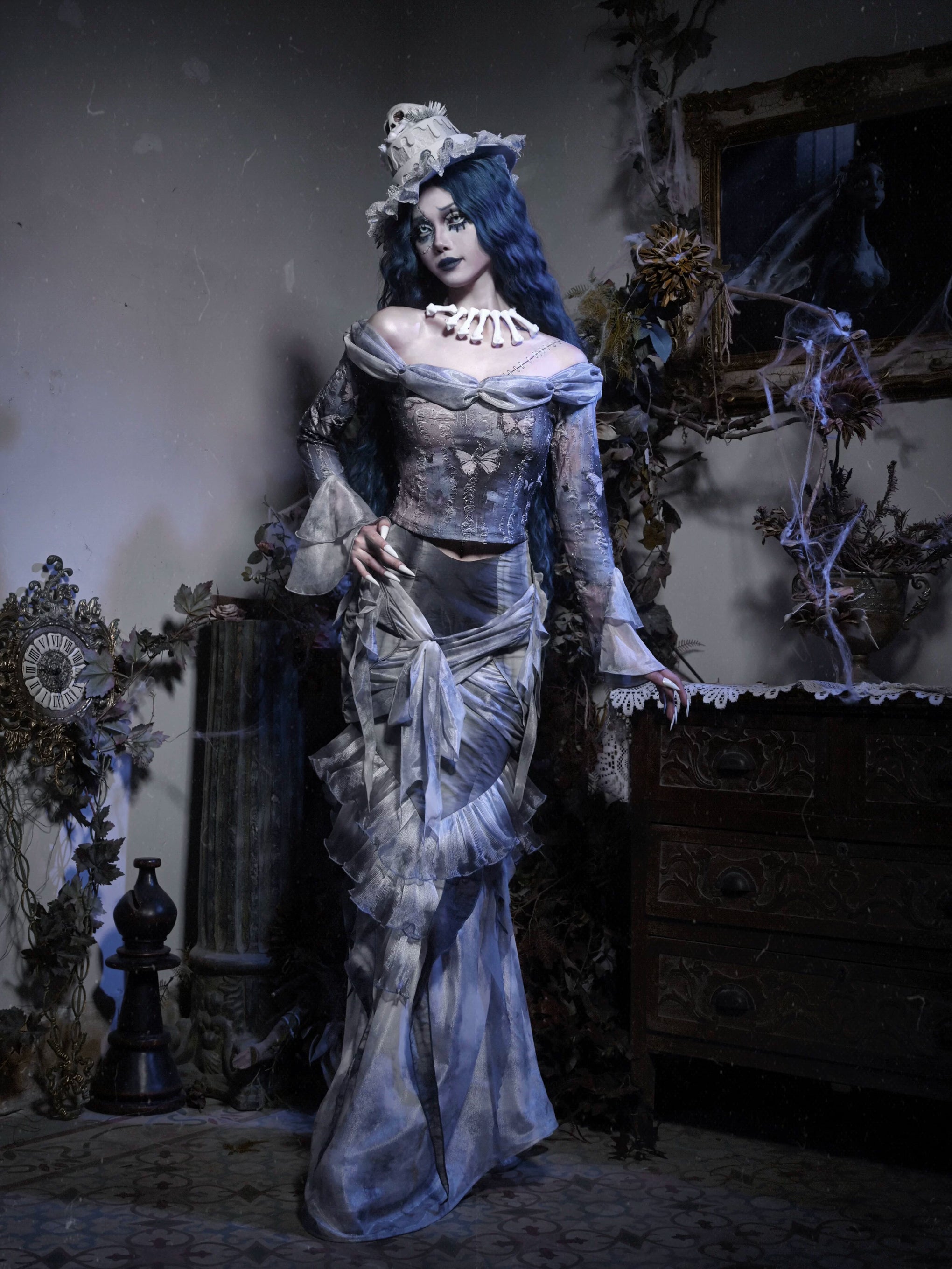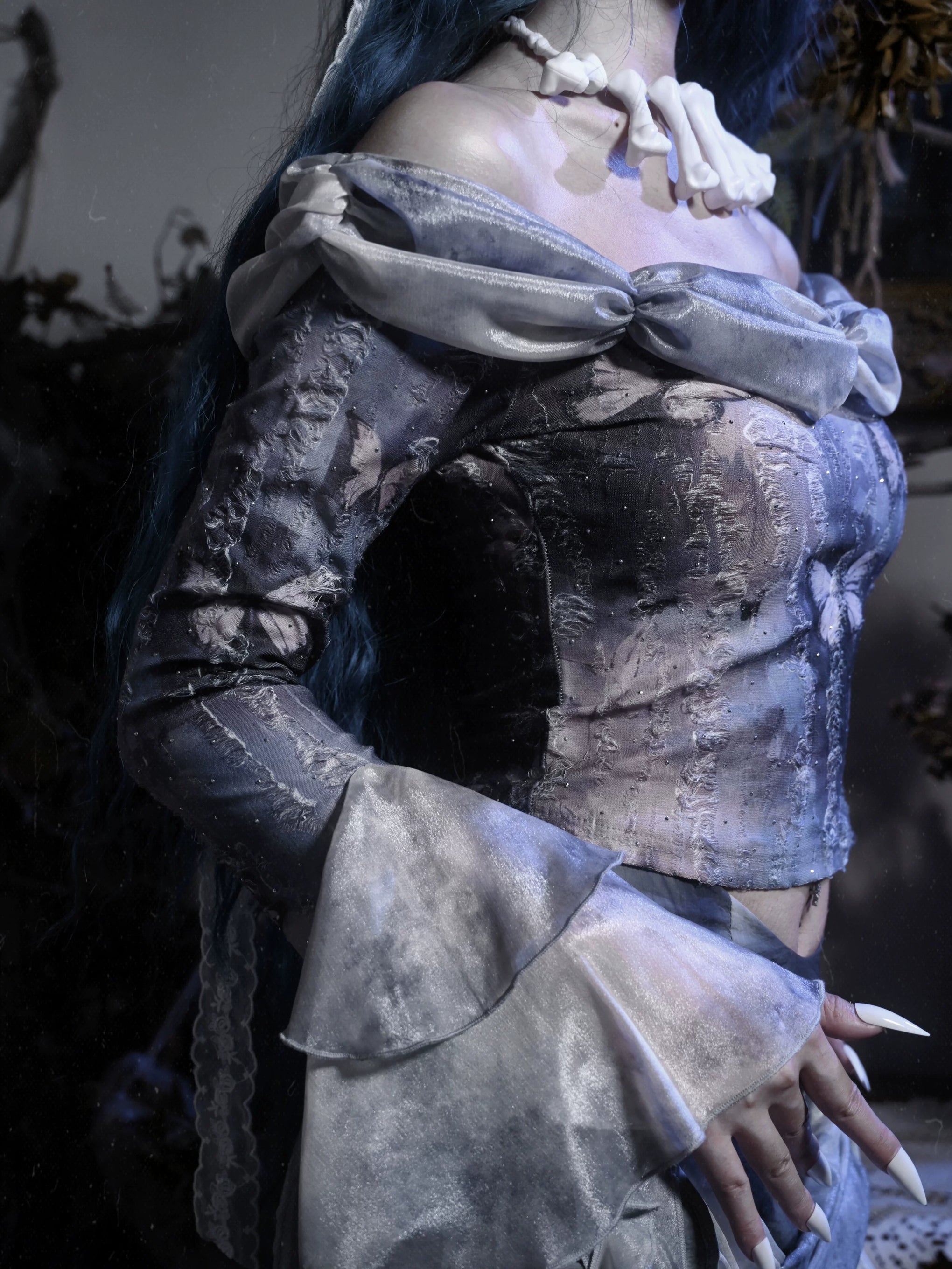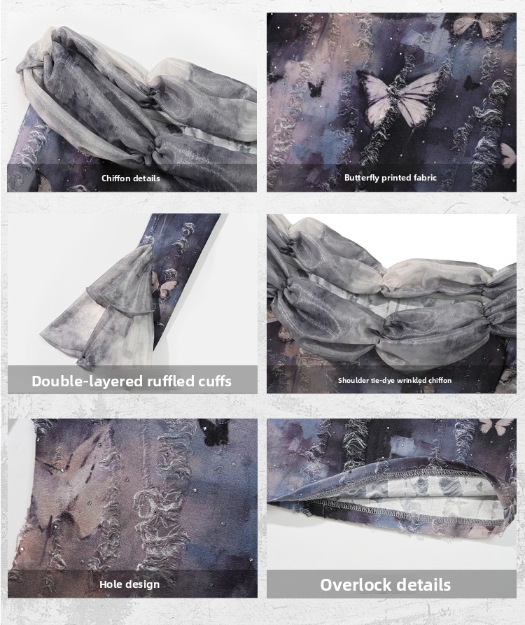 Gothic butterfly european style distressed off-the-shoulder top - perfect for christmas and halloween!