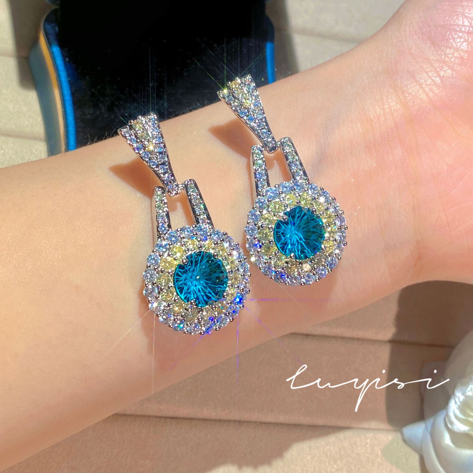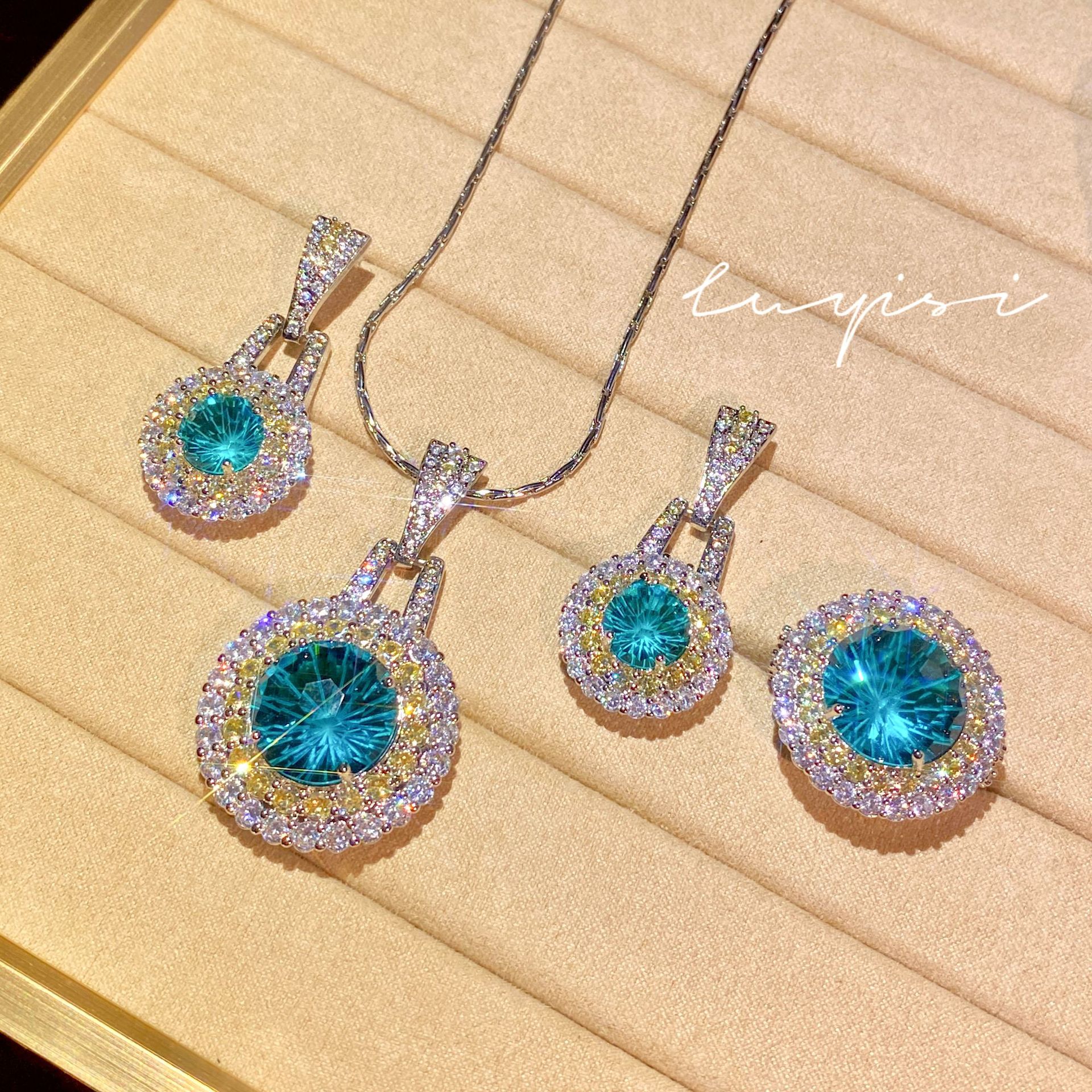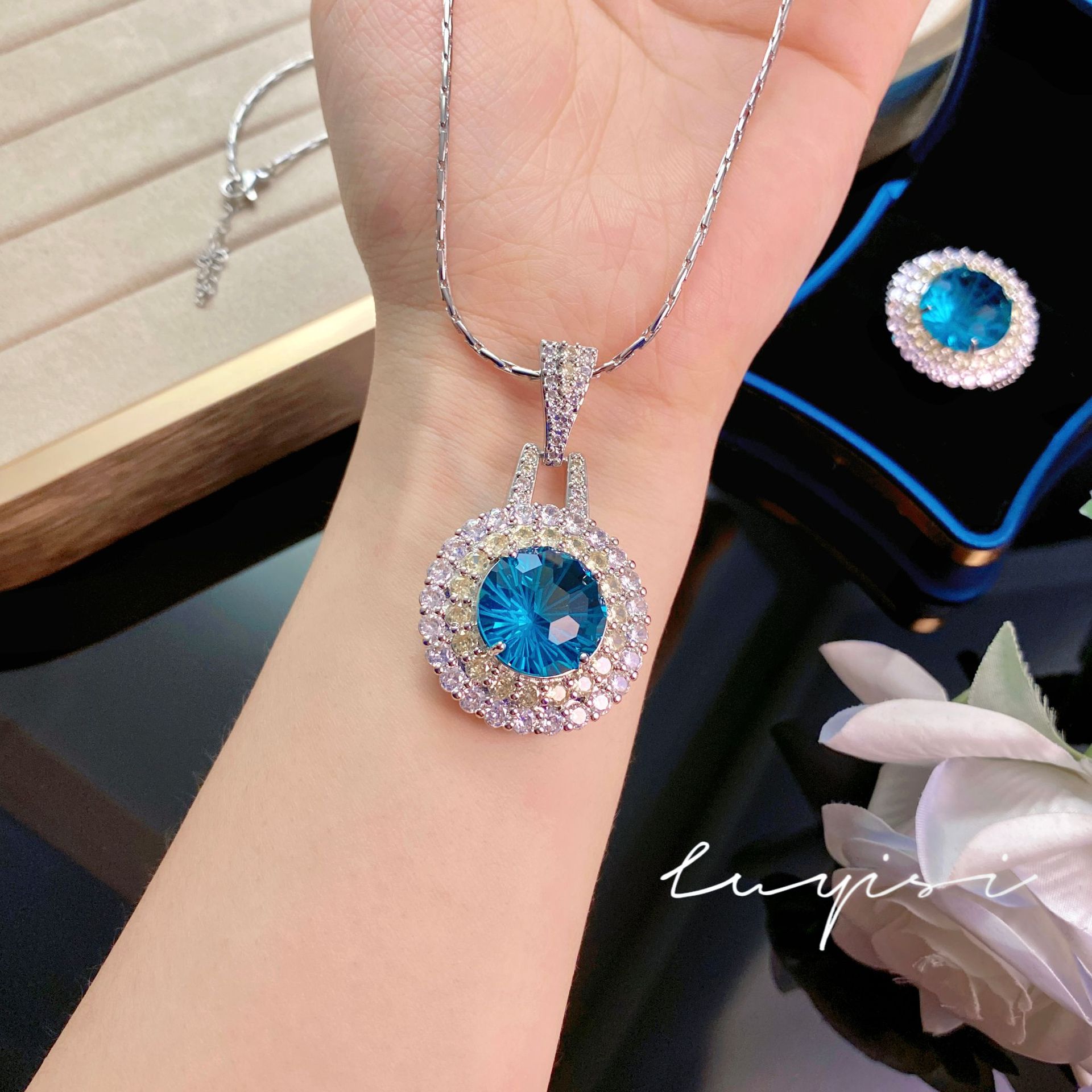 New Luxury Full Diamond Set Topaz Fireworks Cutting Necklace Colorful Treasure