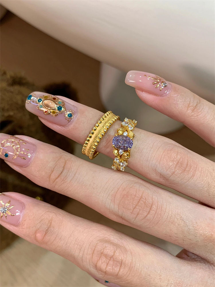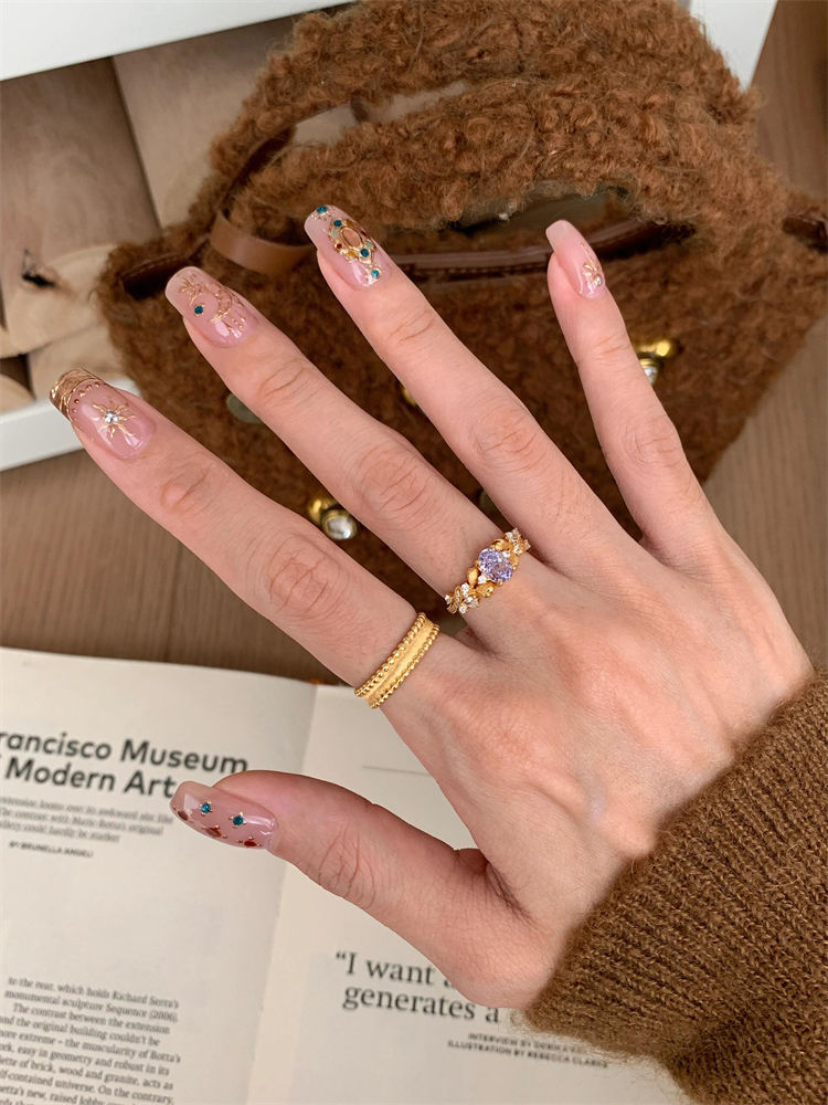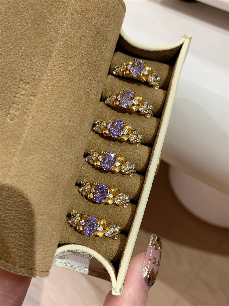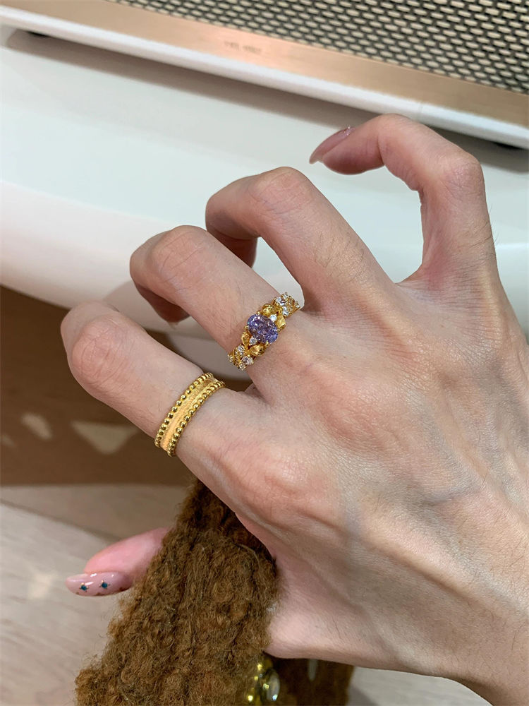 Medieval diamond-set Bauhinia ring women's light luxury niche exquisite design ring versatile fashion high sense index finger ring