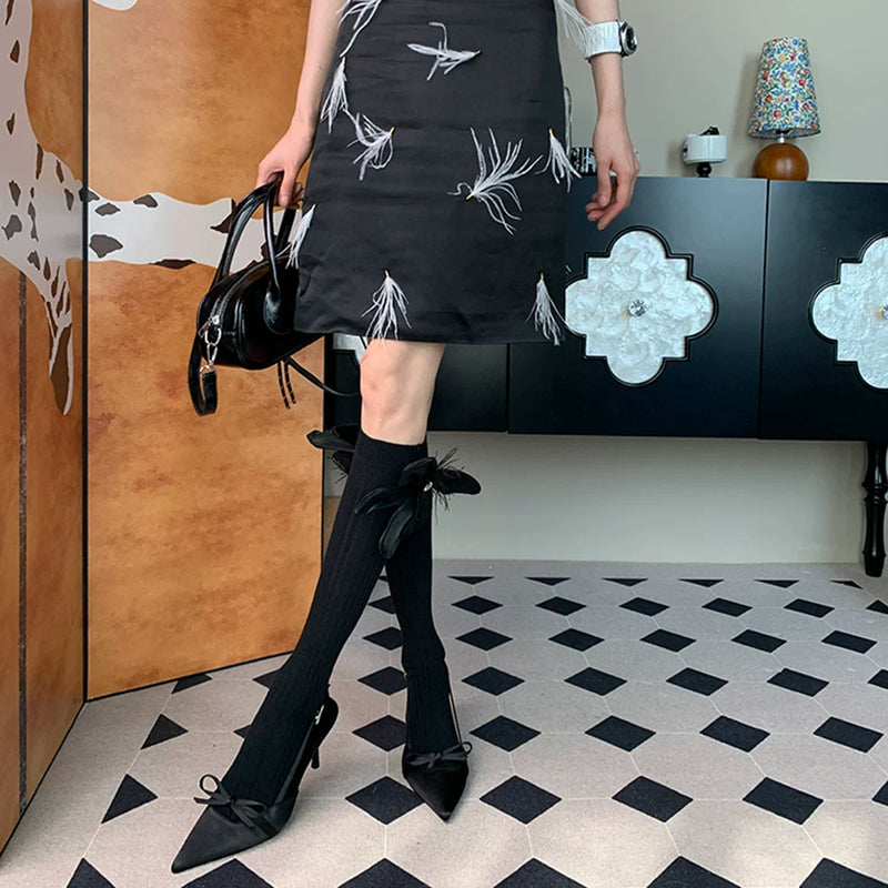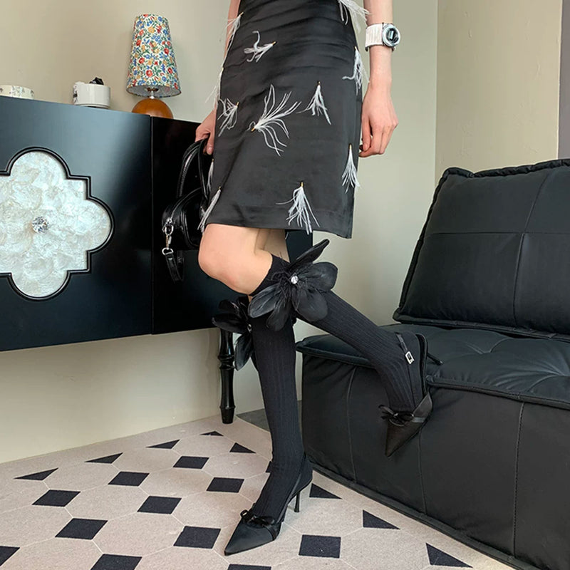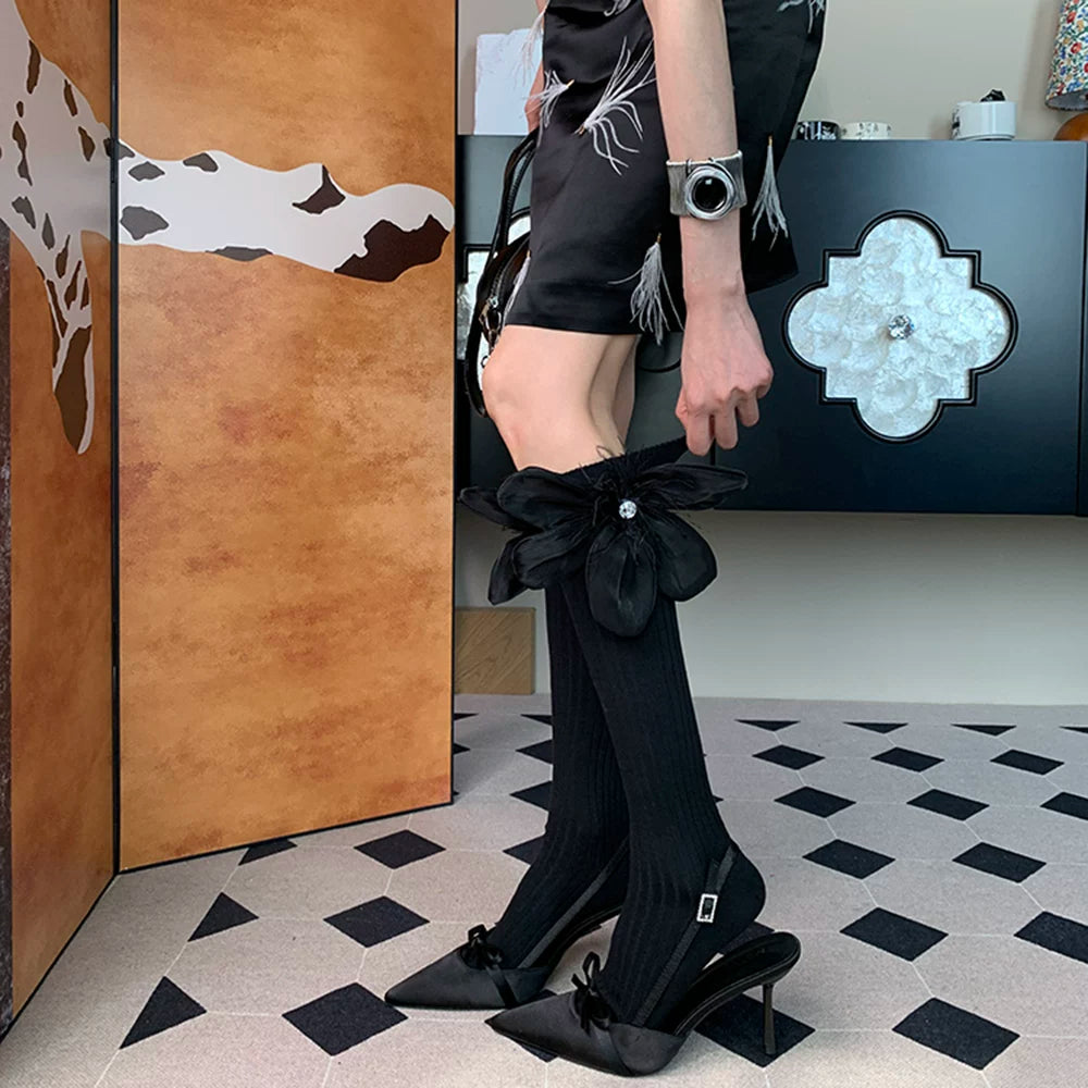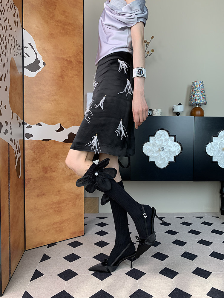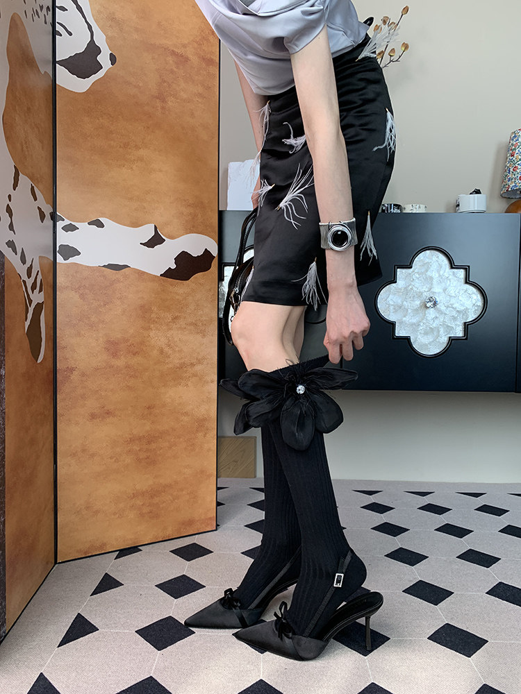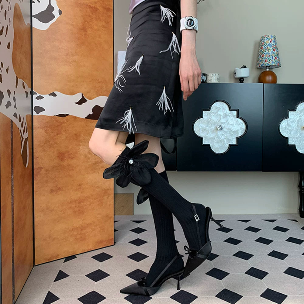 "Appropriately stunning ~" 2025 summer new French retro elegant niche design female black big flower calf