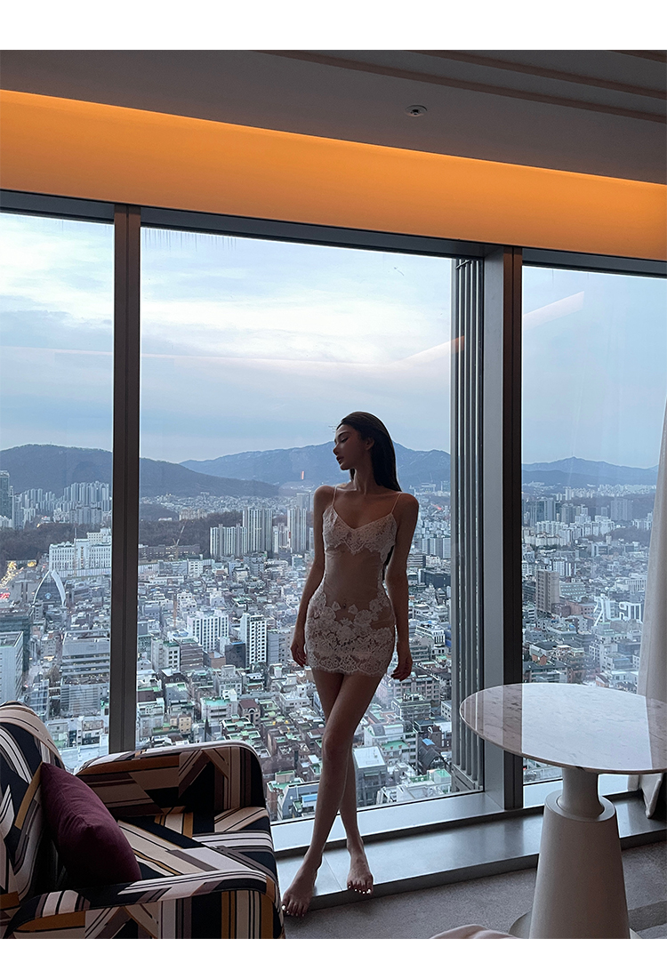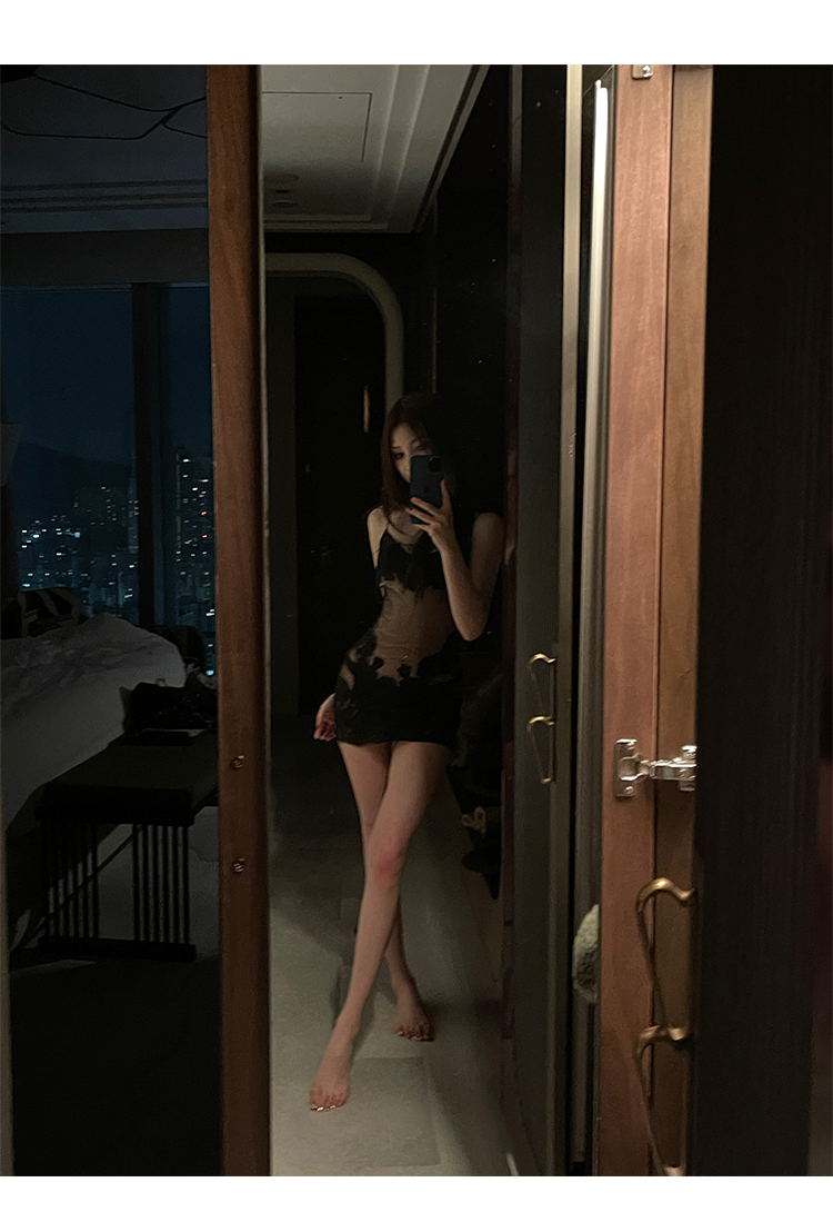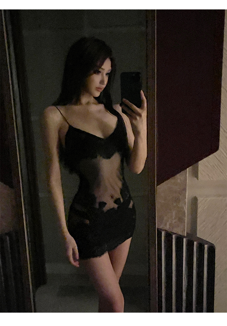 ChiclyNana European and American style hottie suspender short nightdress female lace slim and thin sexy versatile pajamas