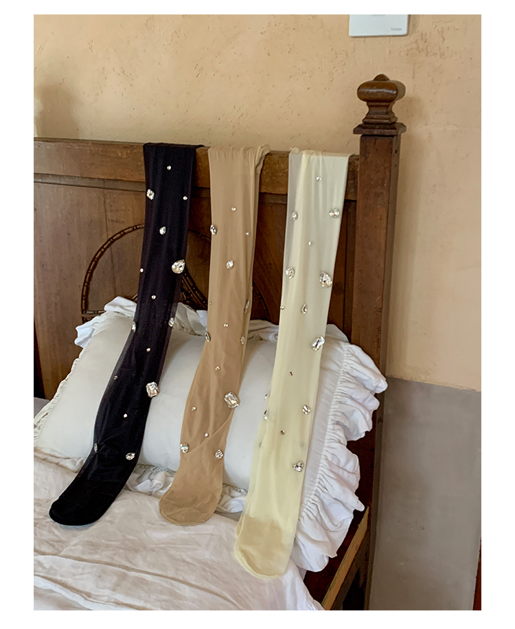 Cnorahk pure desire rhinestone bulingbuling flash stockings black silk milk white slim pantyhose