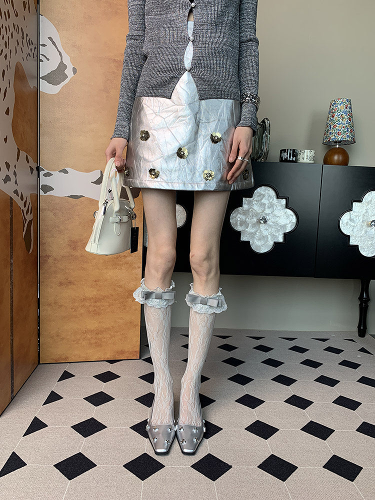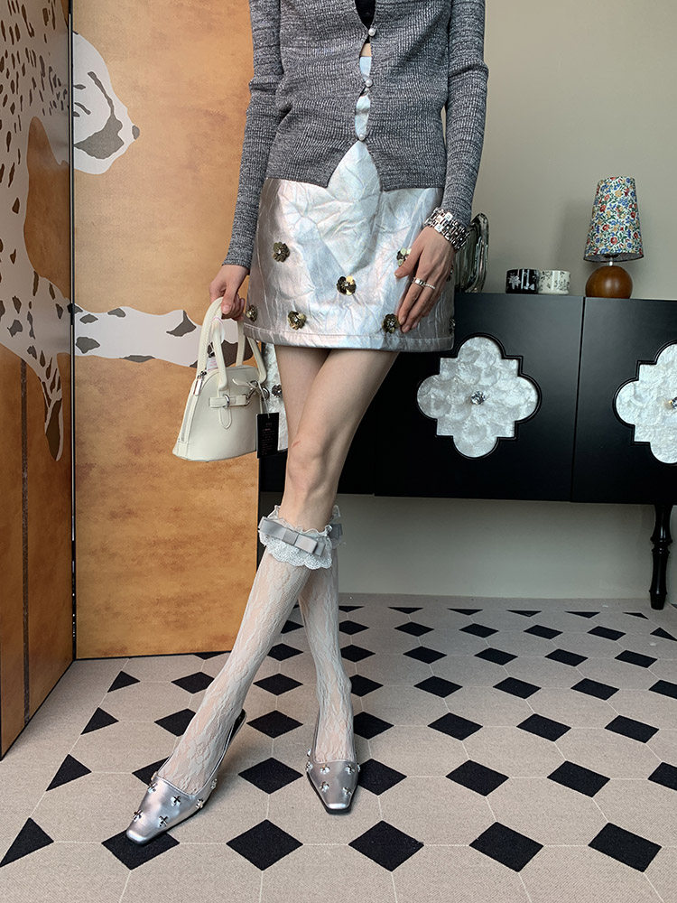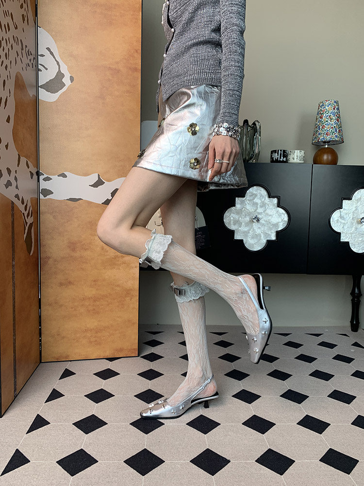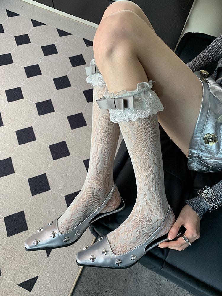 "Dazed ~" 2025 summer new French romantic ballet style niche female bow gray calf