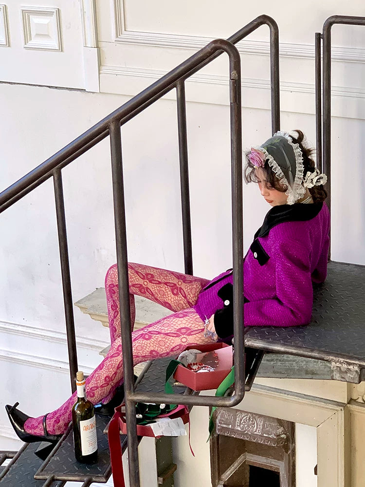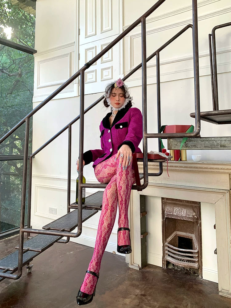 Fashion Custom Edition Hollow Rose Lace Spider Web Textured Socks Silk Spice Girls Millennium Niche One-Piece Socks