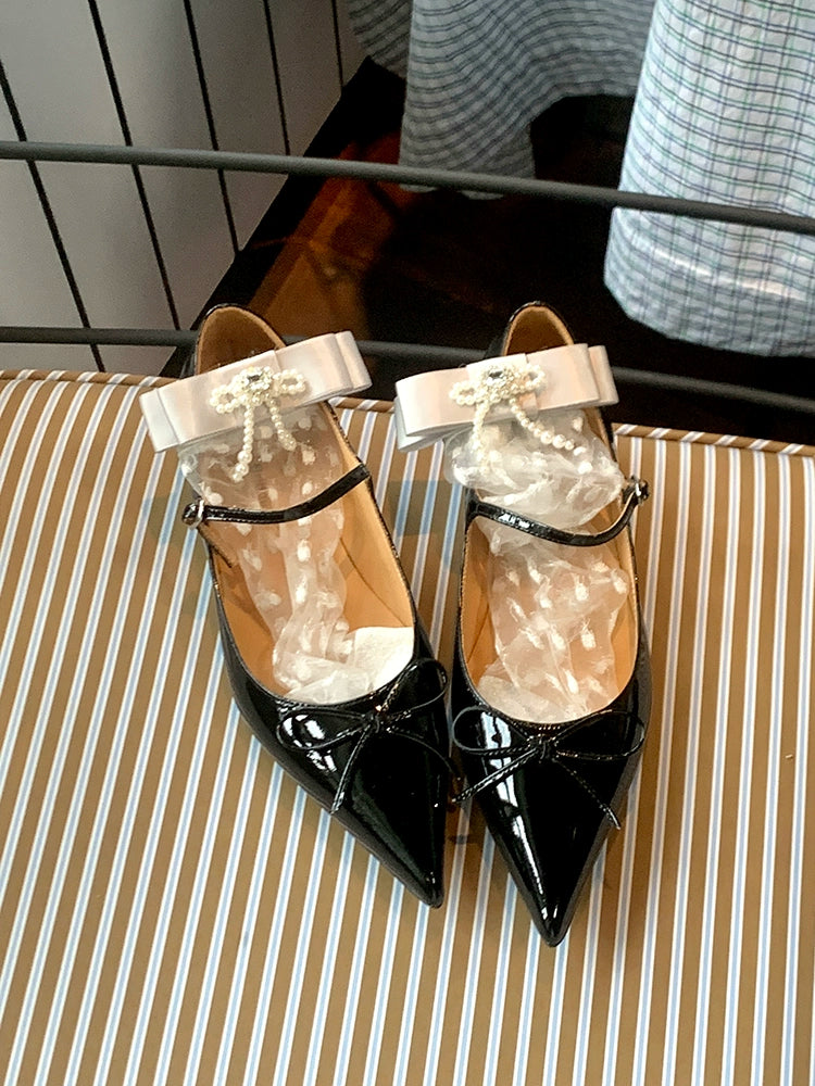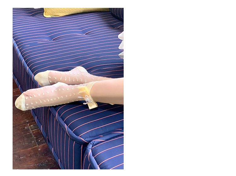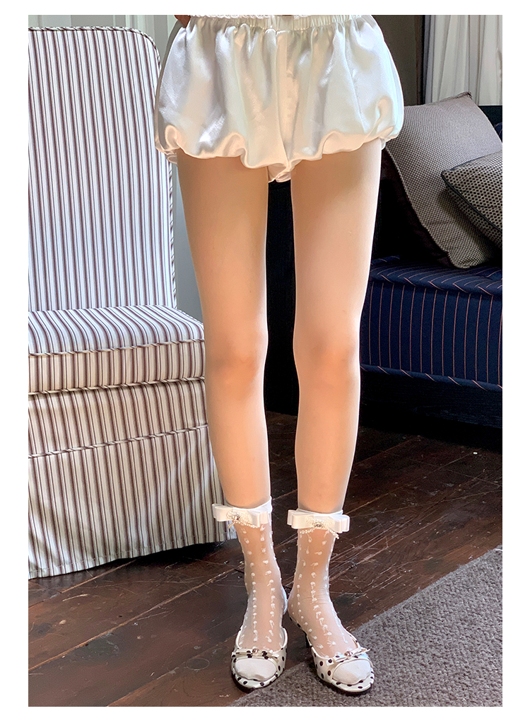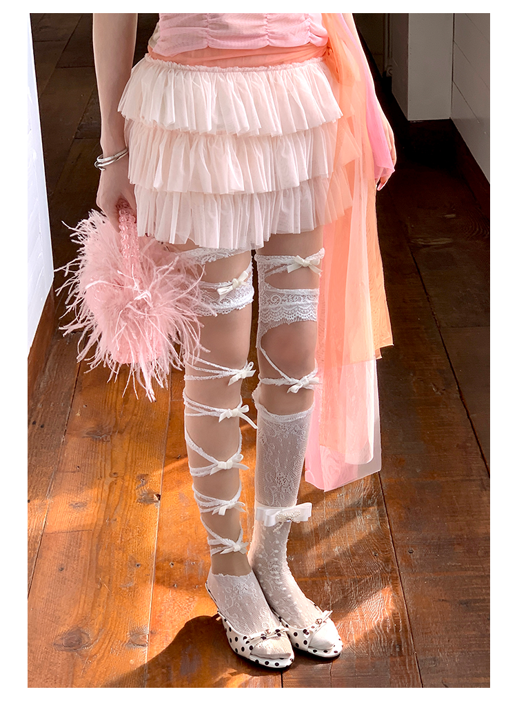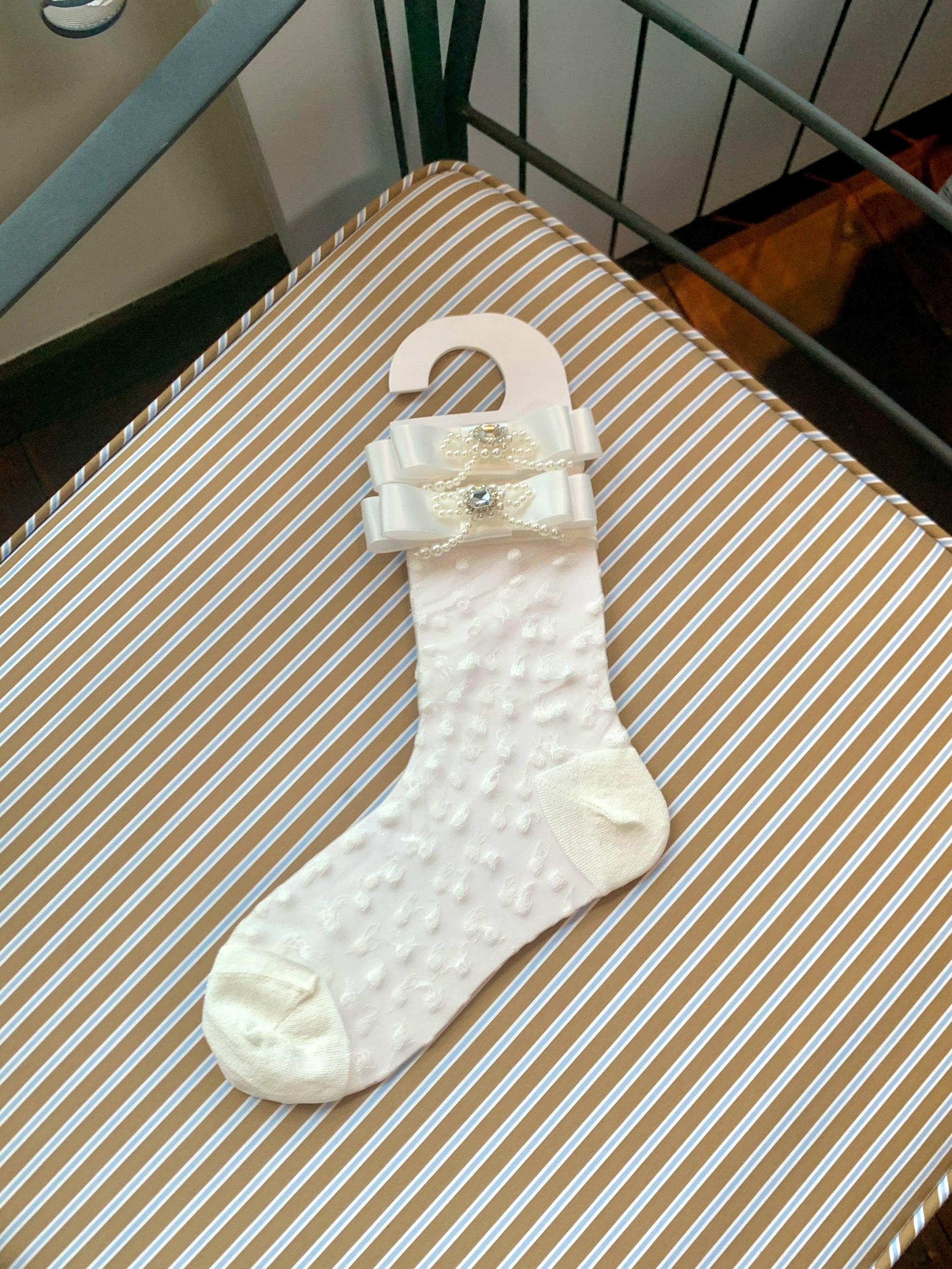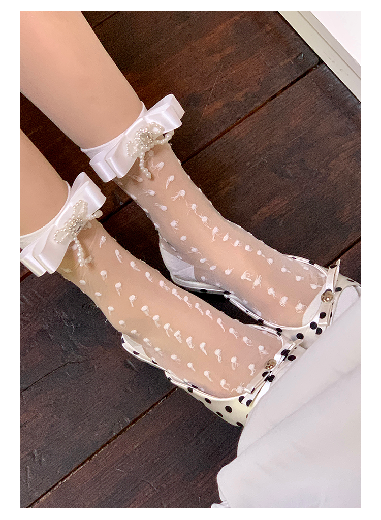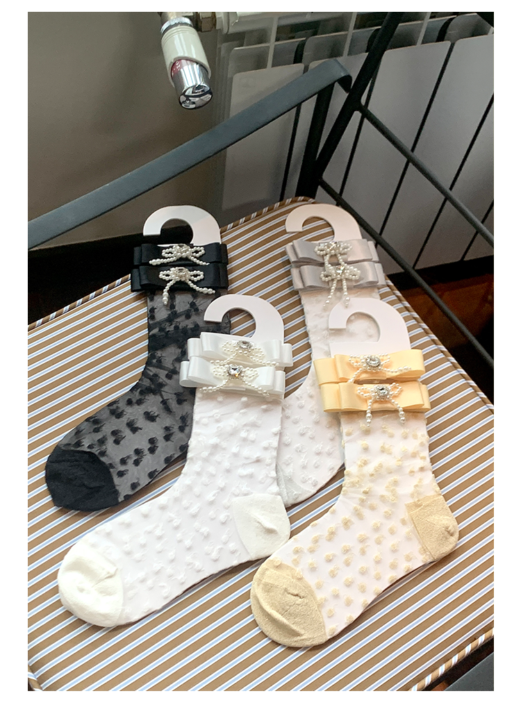 Fashion niche design pearl bow breathable jacquard socks versatile medium tube sweet beautiful women socks stacking socks