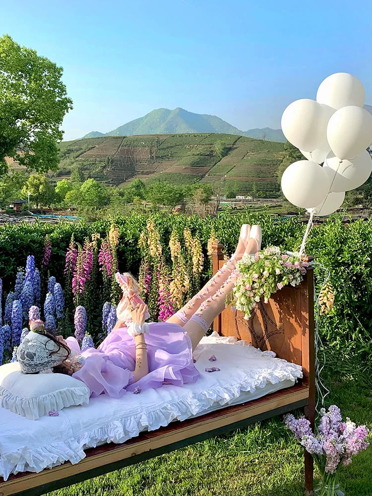 Fashion niche early spring purple handmade flowers niche lace Lolita high tube socks ballet girl socks