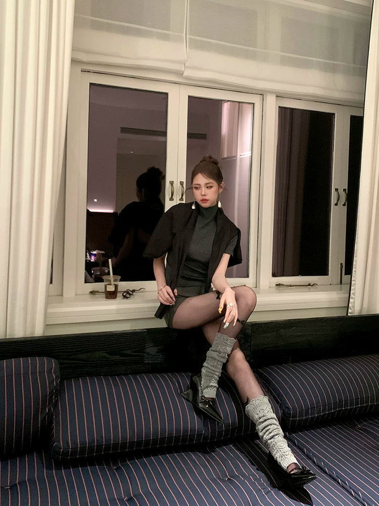 Fashion niche hollow wool stacked calf socks knitted stacked wear stepping socks cover thin versatile leg cover