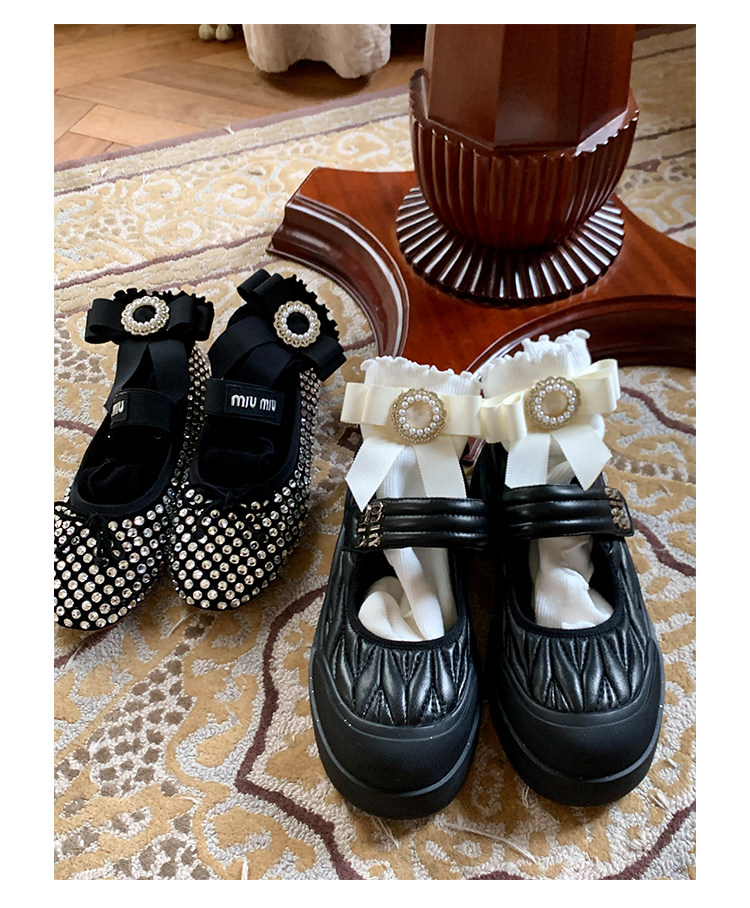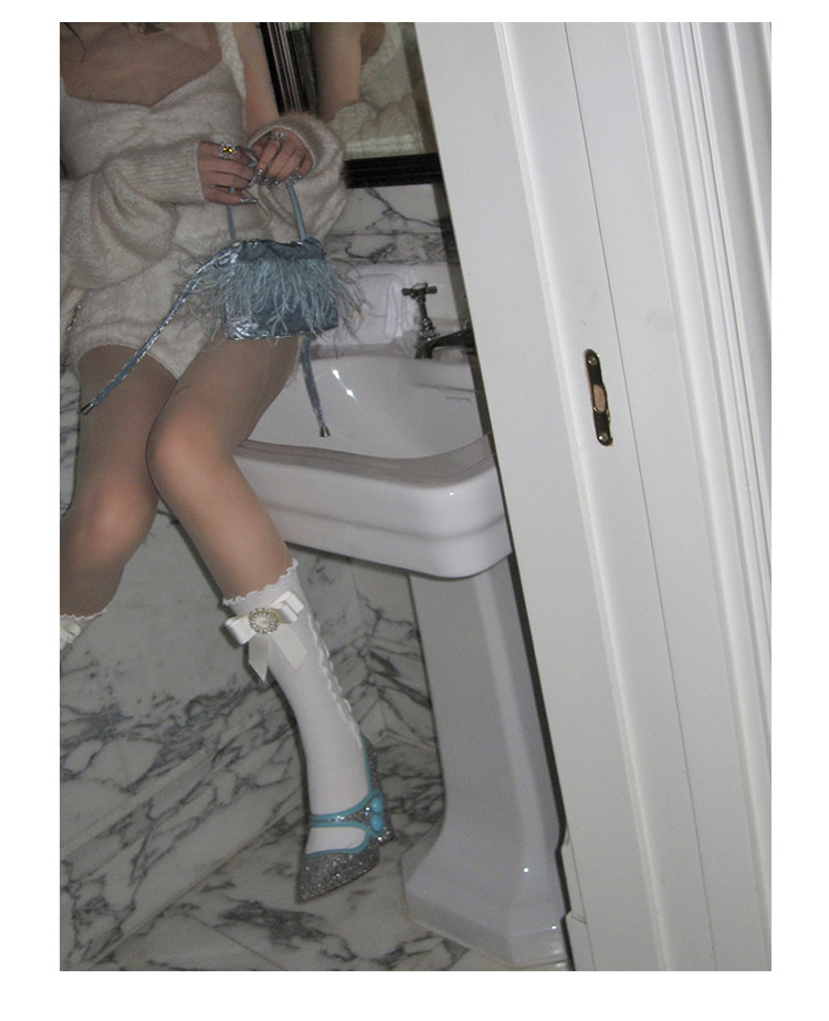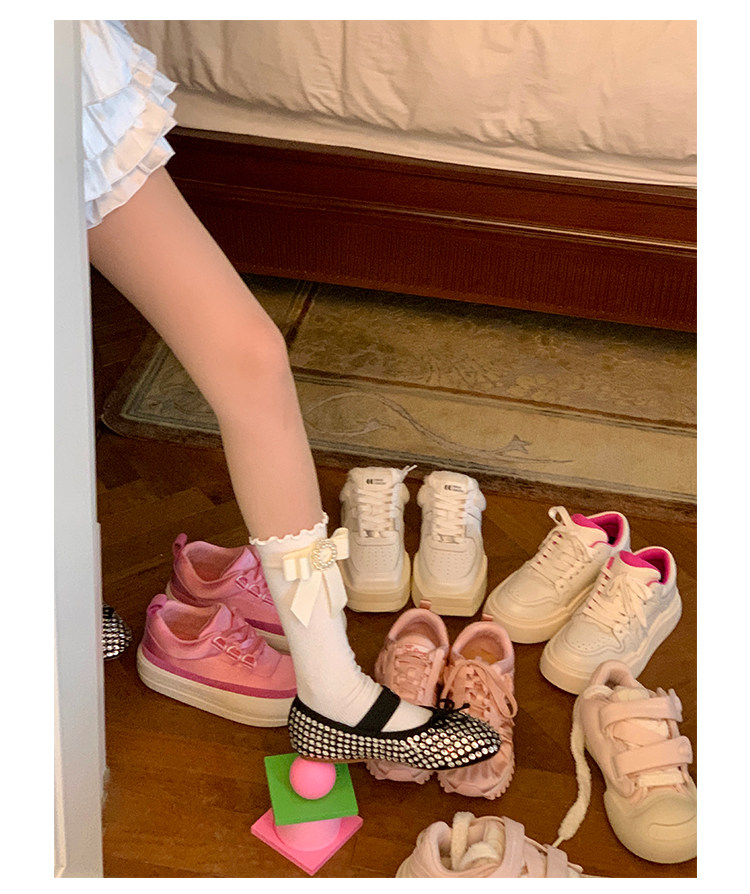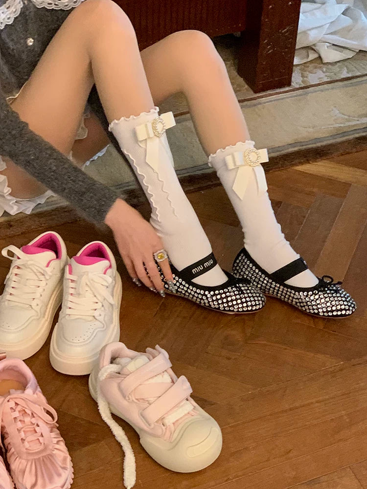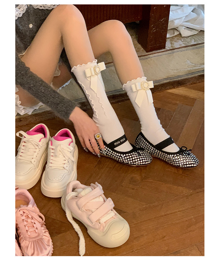 Fashion niche Japanese square diamond gem bow lace socks white black cute Lolita