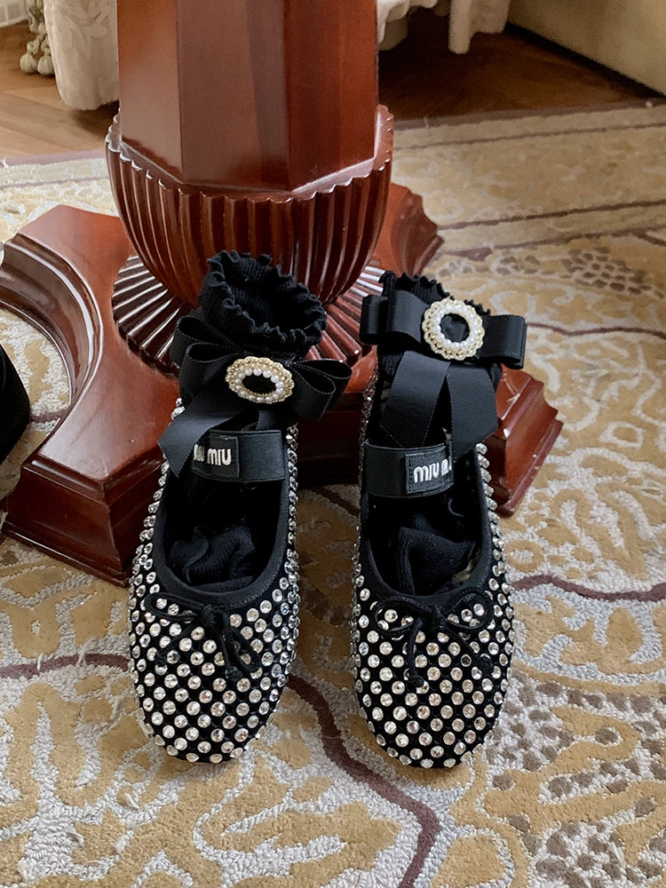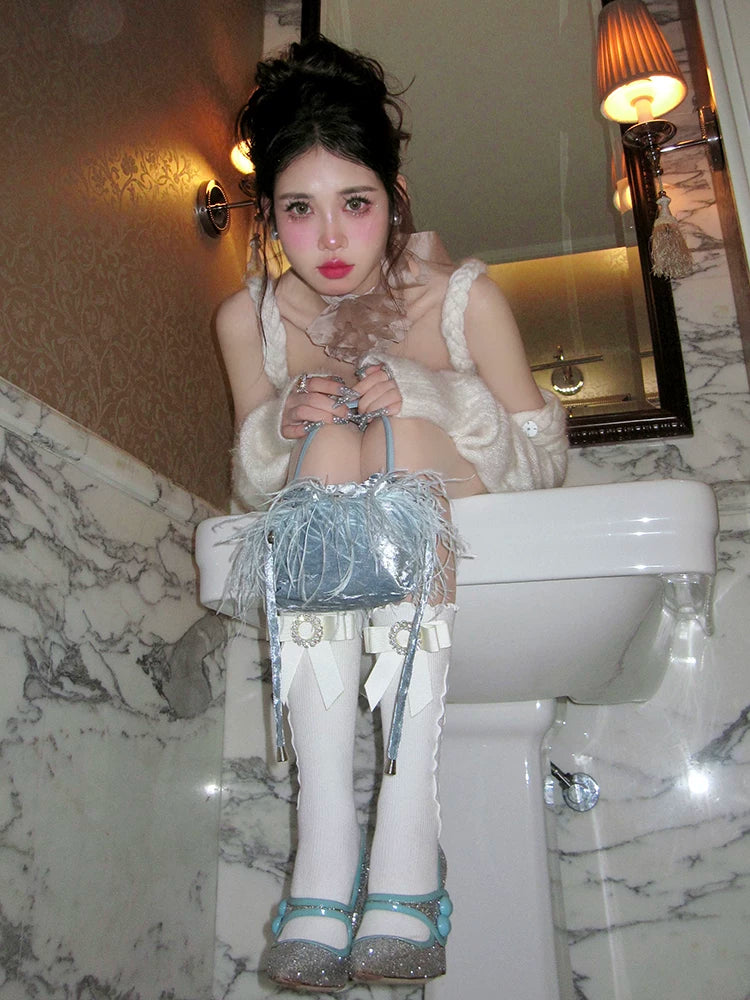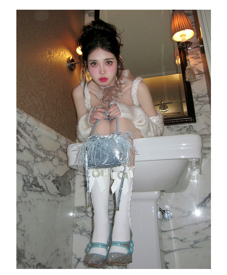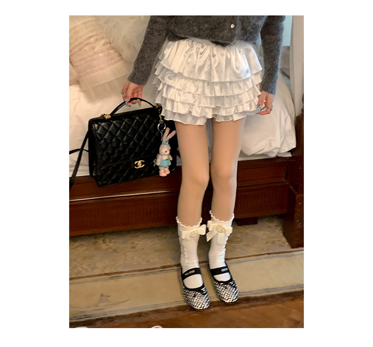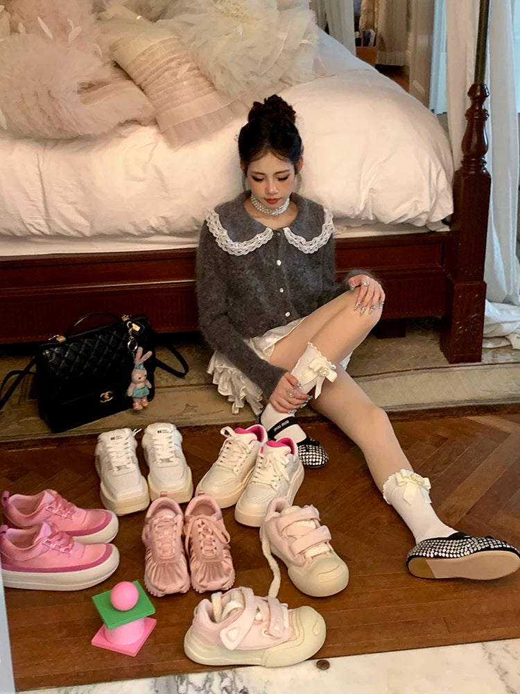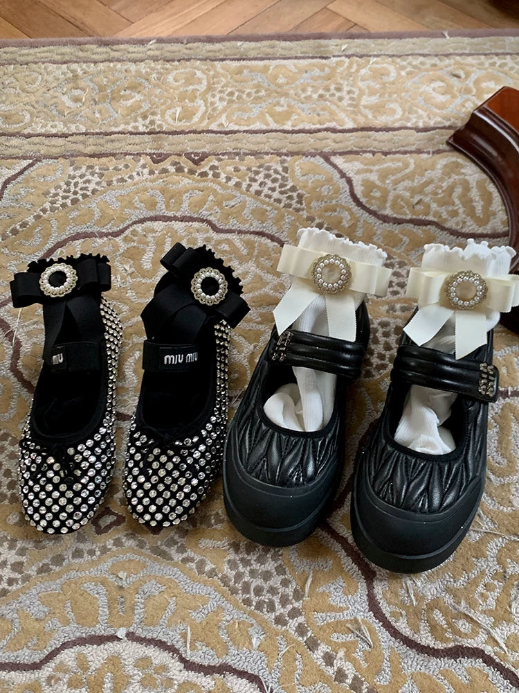Fashion niche Japanese square diamond gem bow lace socks white black cute Lolita