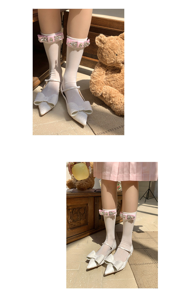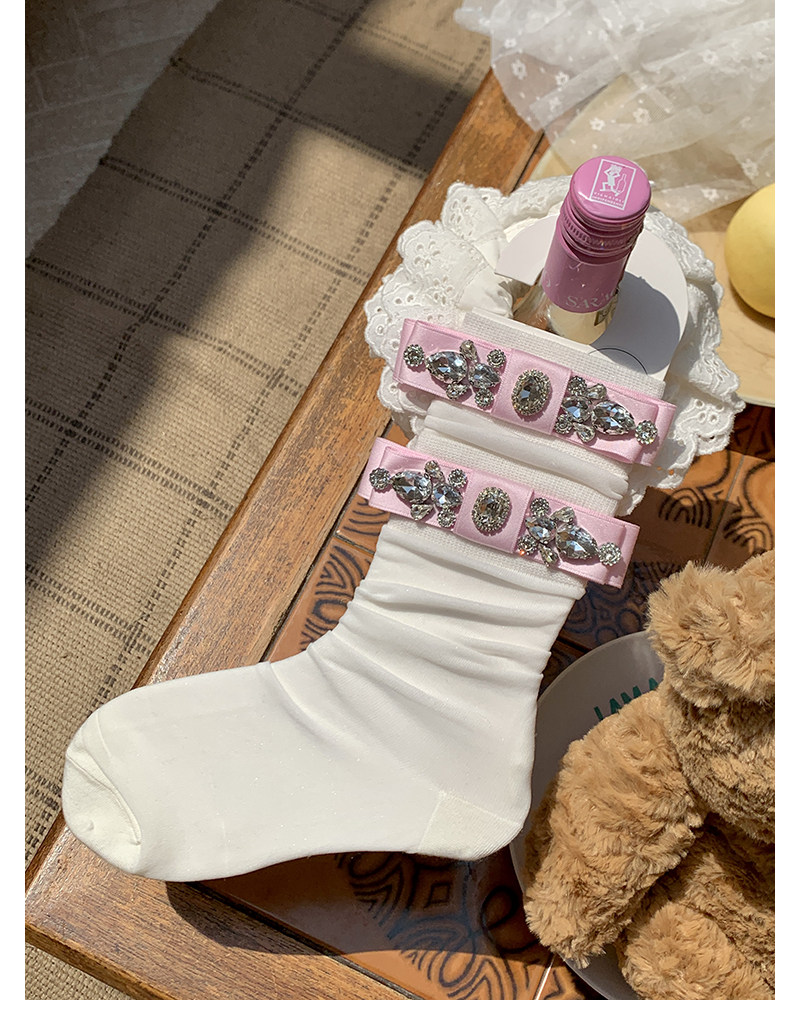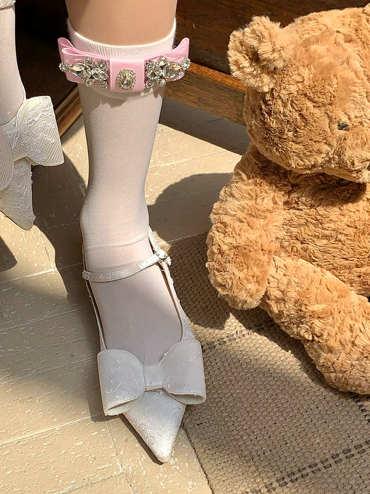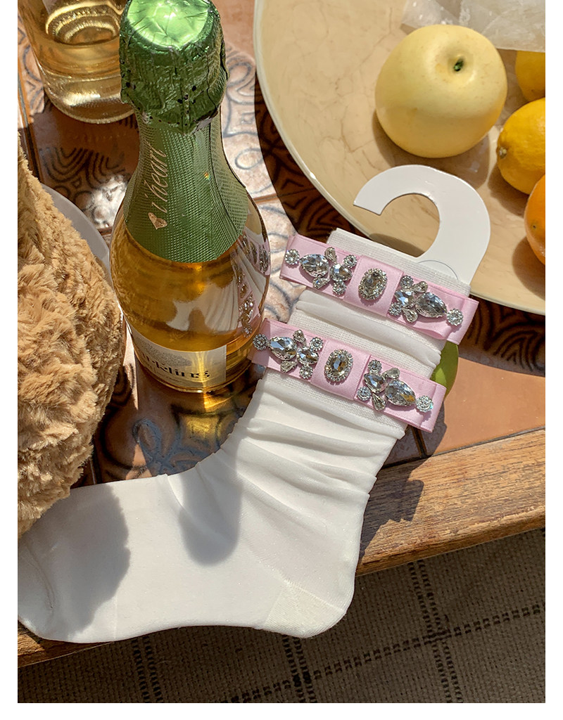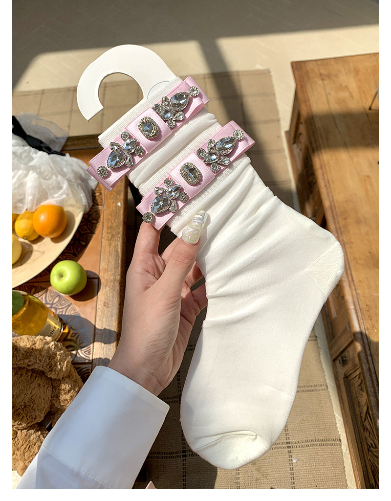 Fashion niche socks full diamond bow socks pearlescent glass socks thin pure desire wind white socks