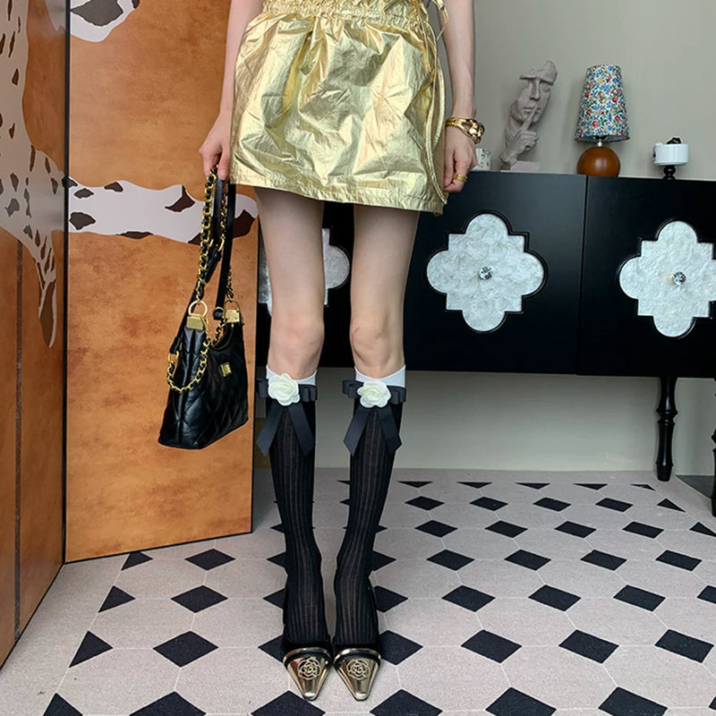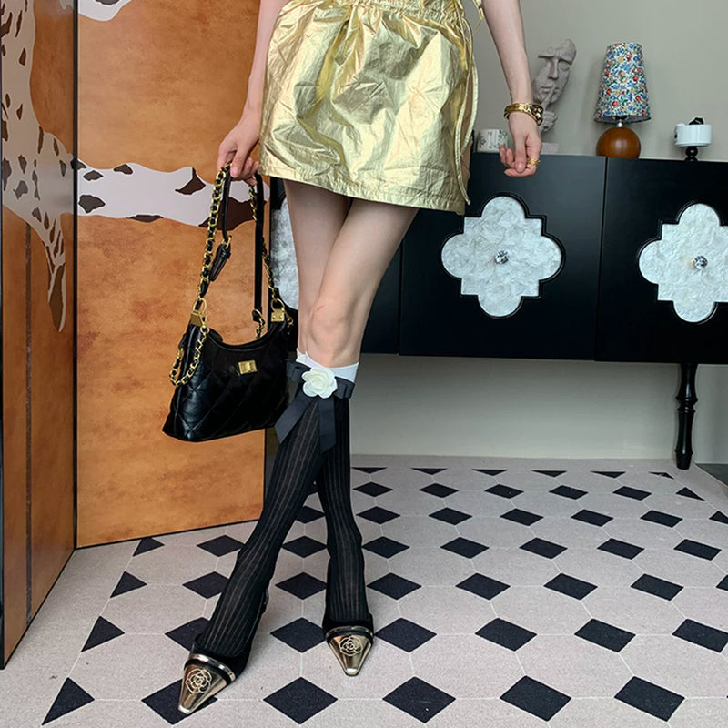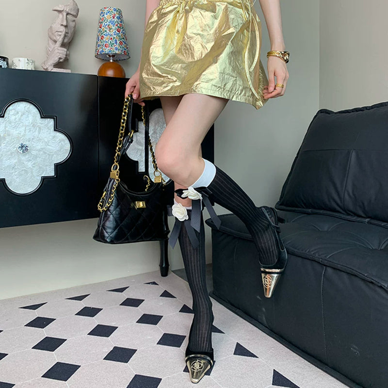 "Indulge in the moment ~" 2025 summer new French retro elegant charm female black rose bow calf